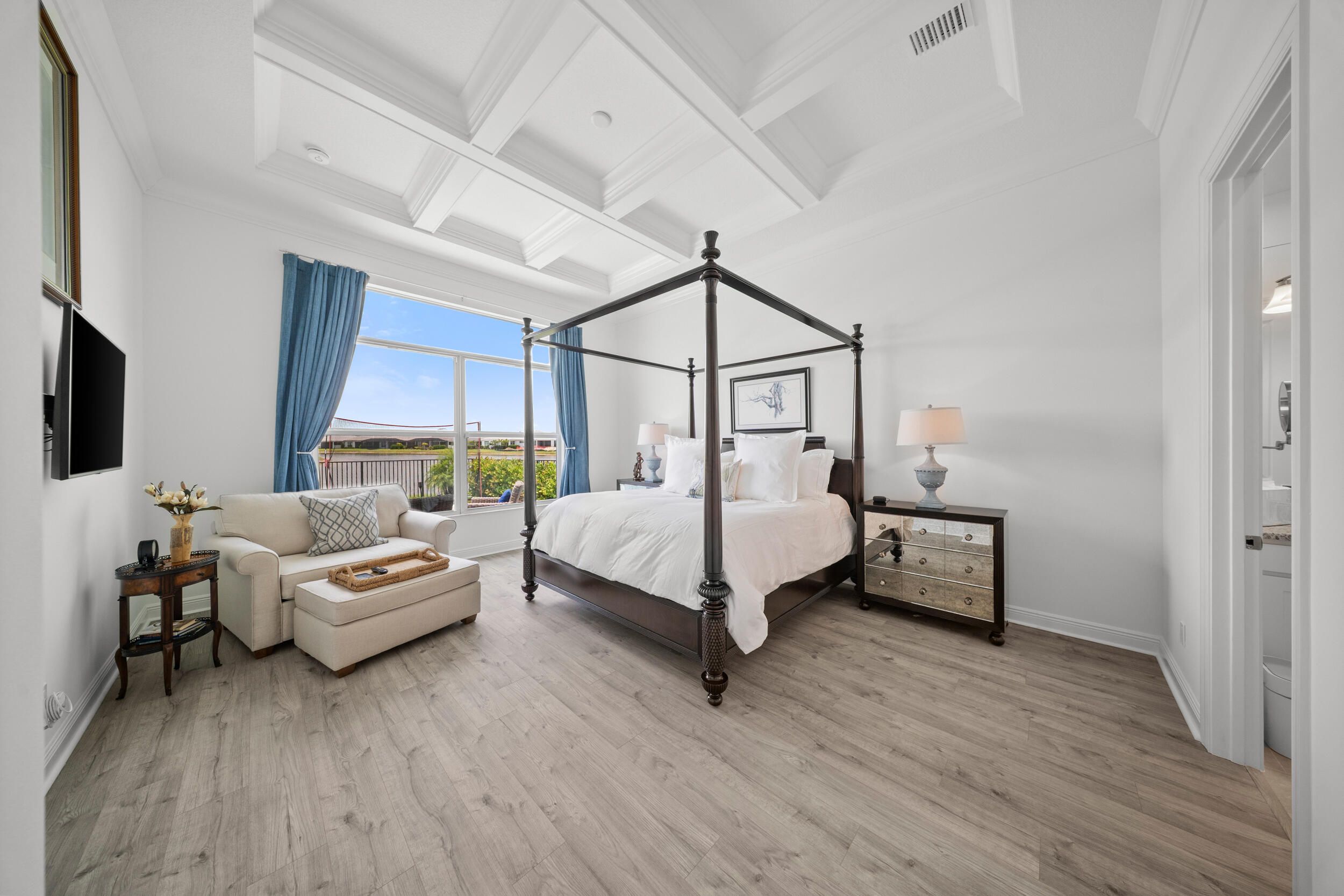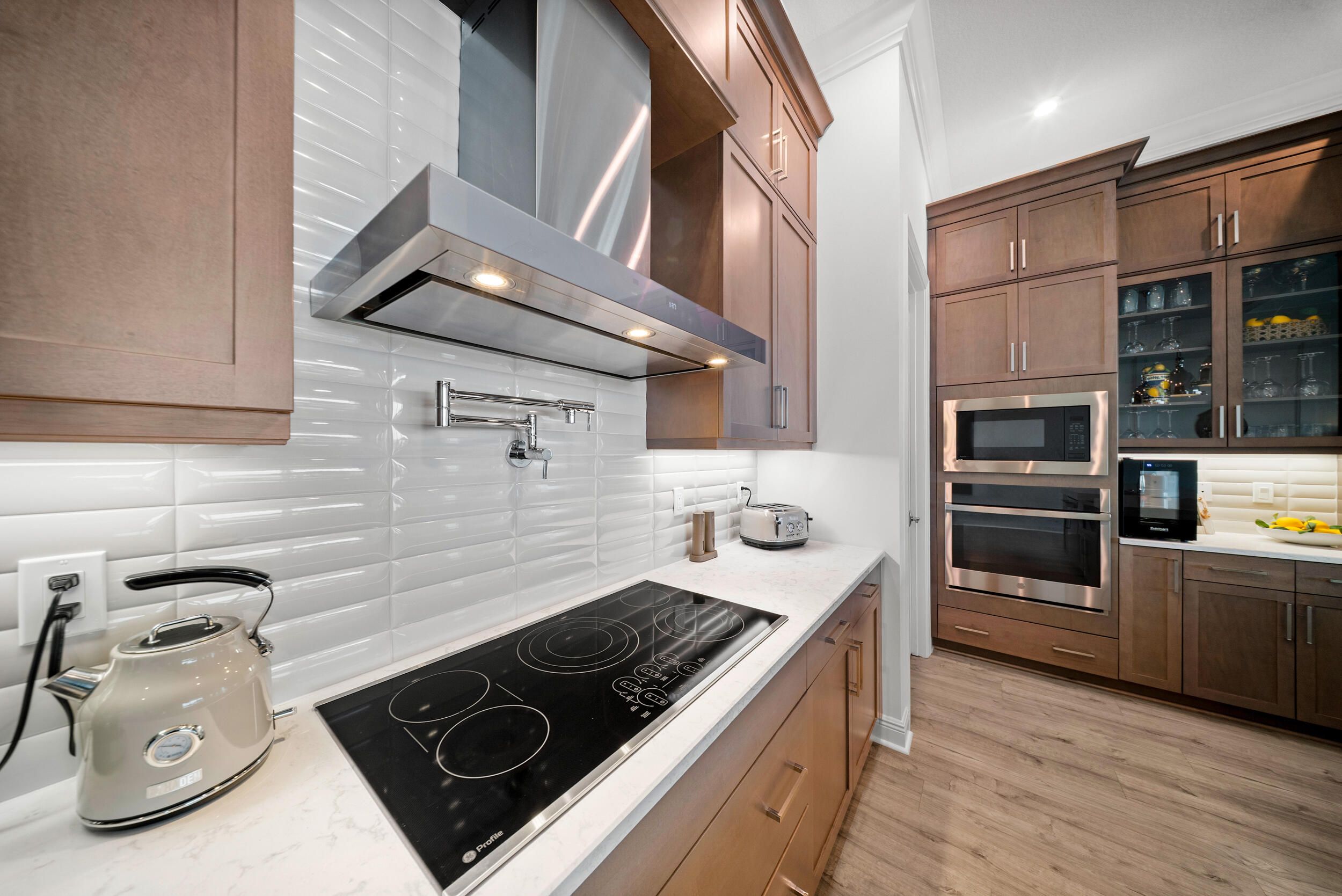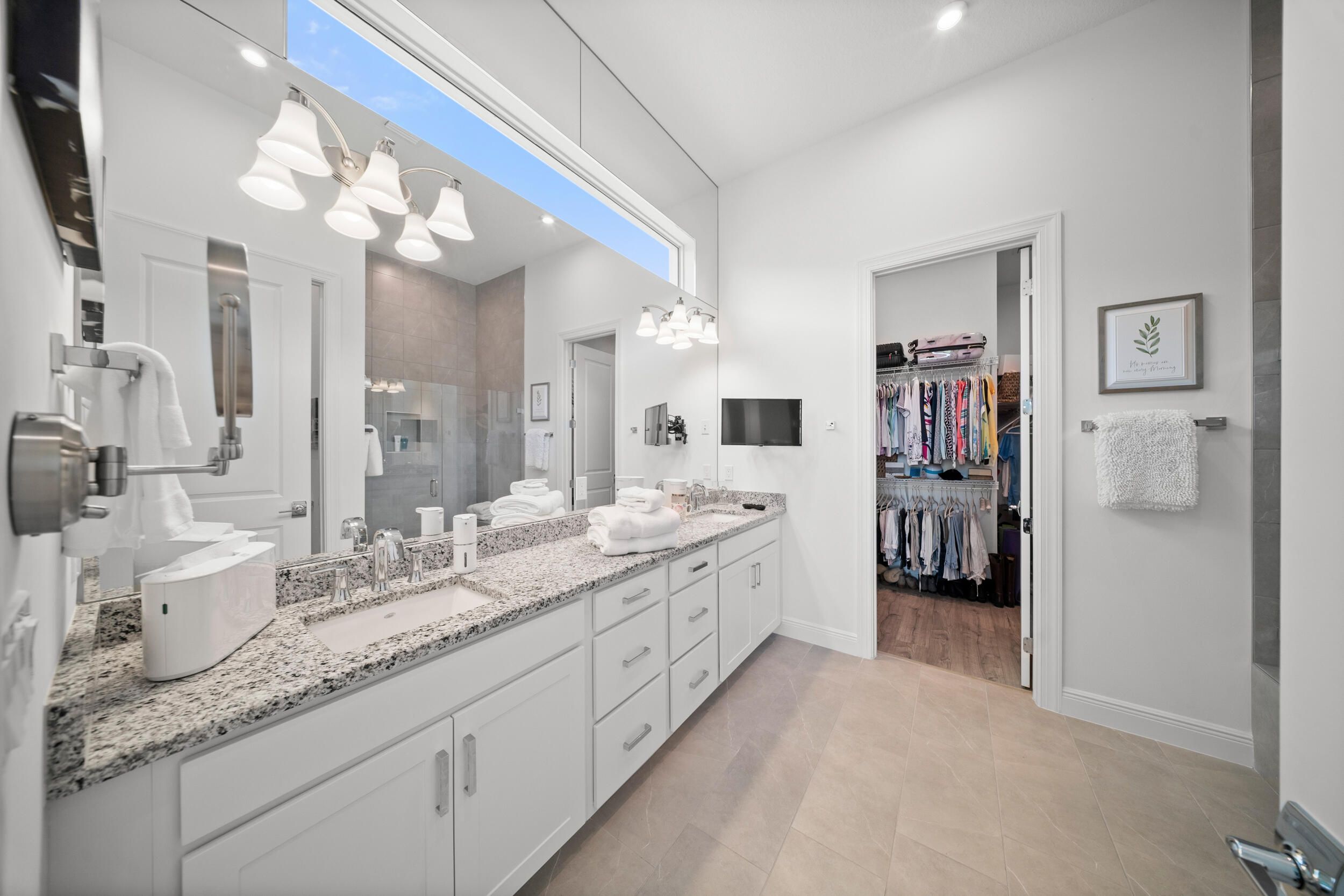 Designed for comfort and relaxation, this young home keeps stress at bay. With over $100K in upgrades, lakeview sunsets, sunshelf pool w/waterfalls and dual master suites, calm is the mood of every day. A neutral color pallette topped off with soaring coffered ceilings, and complemented by 10'sliders leading to the pool. The kitchen is the gathering place with a 10ft, 3''thick quartz island, luxe cabinetry, and a gourmet appliance package. A grand owners suite/spa like bath with TV and expanded walk in closet. A second private suite and guest room give everyone space to enjoy. Golf cart access to PGA Golf Club(memberships avail).Club Talavera, 27 pickleball courts, indoor lap pool and more will keep you fit and social. Located near restaurants, shops. 45 min to West Palm, 2hr to Orlando.
