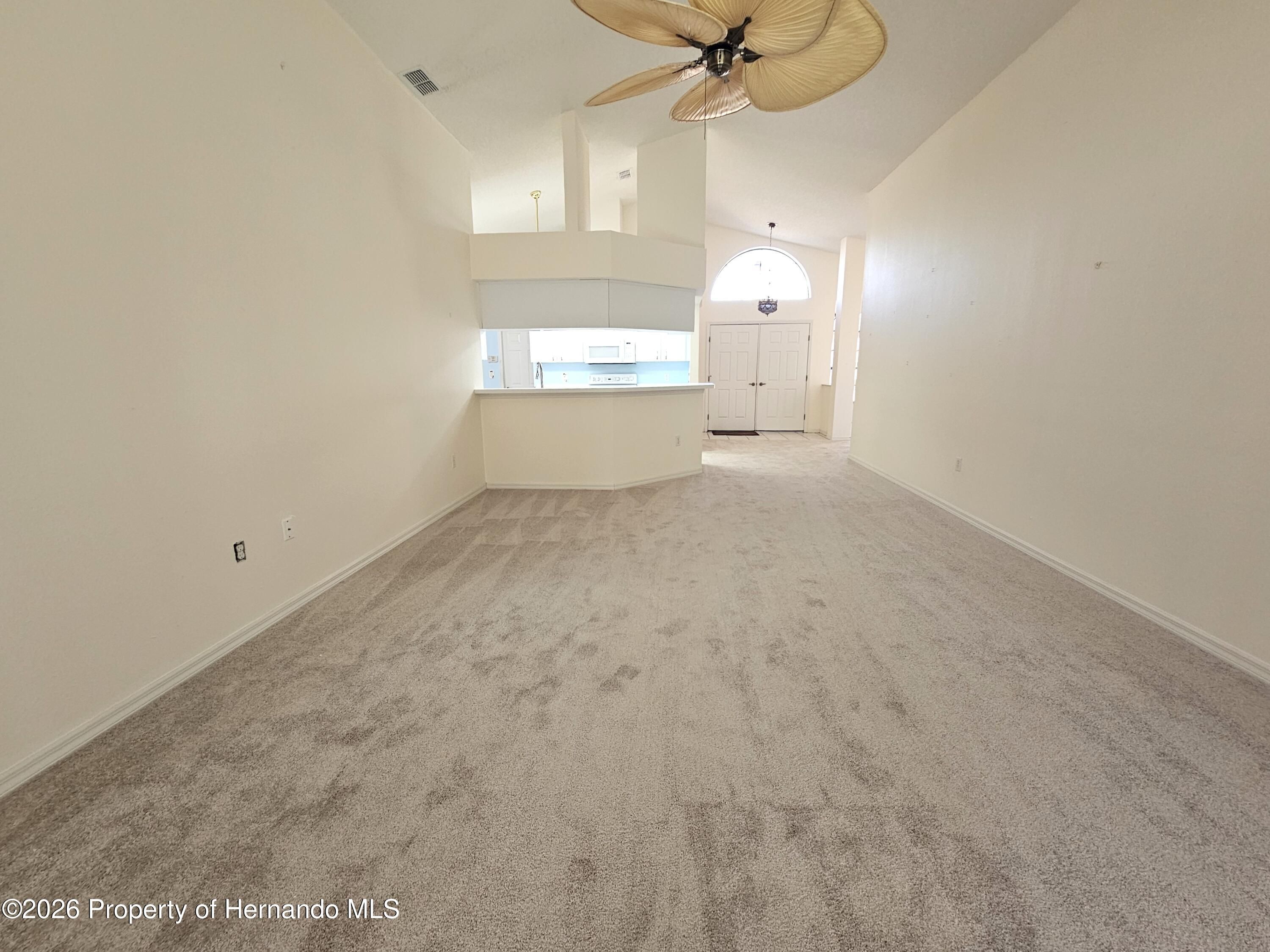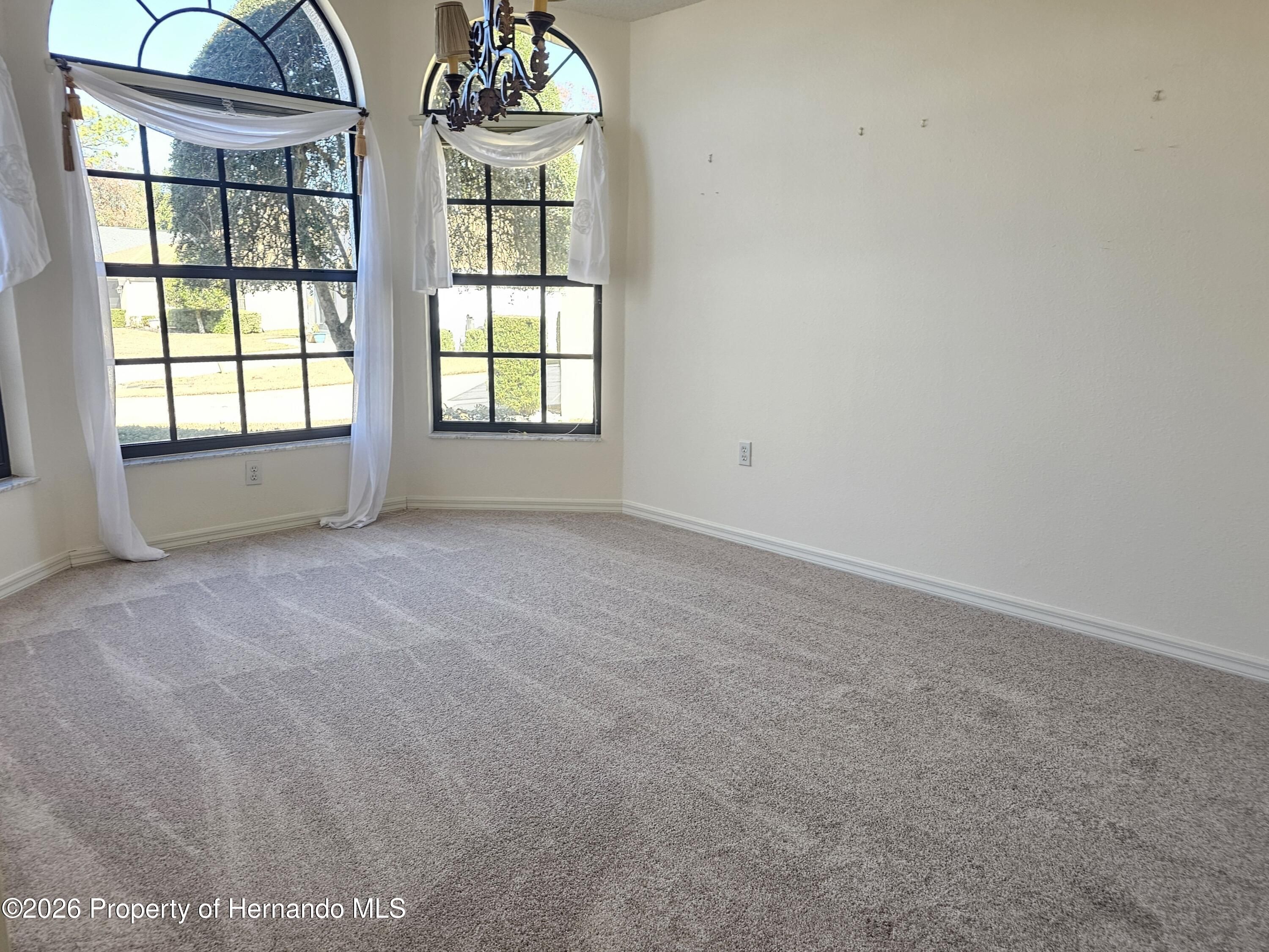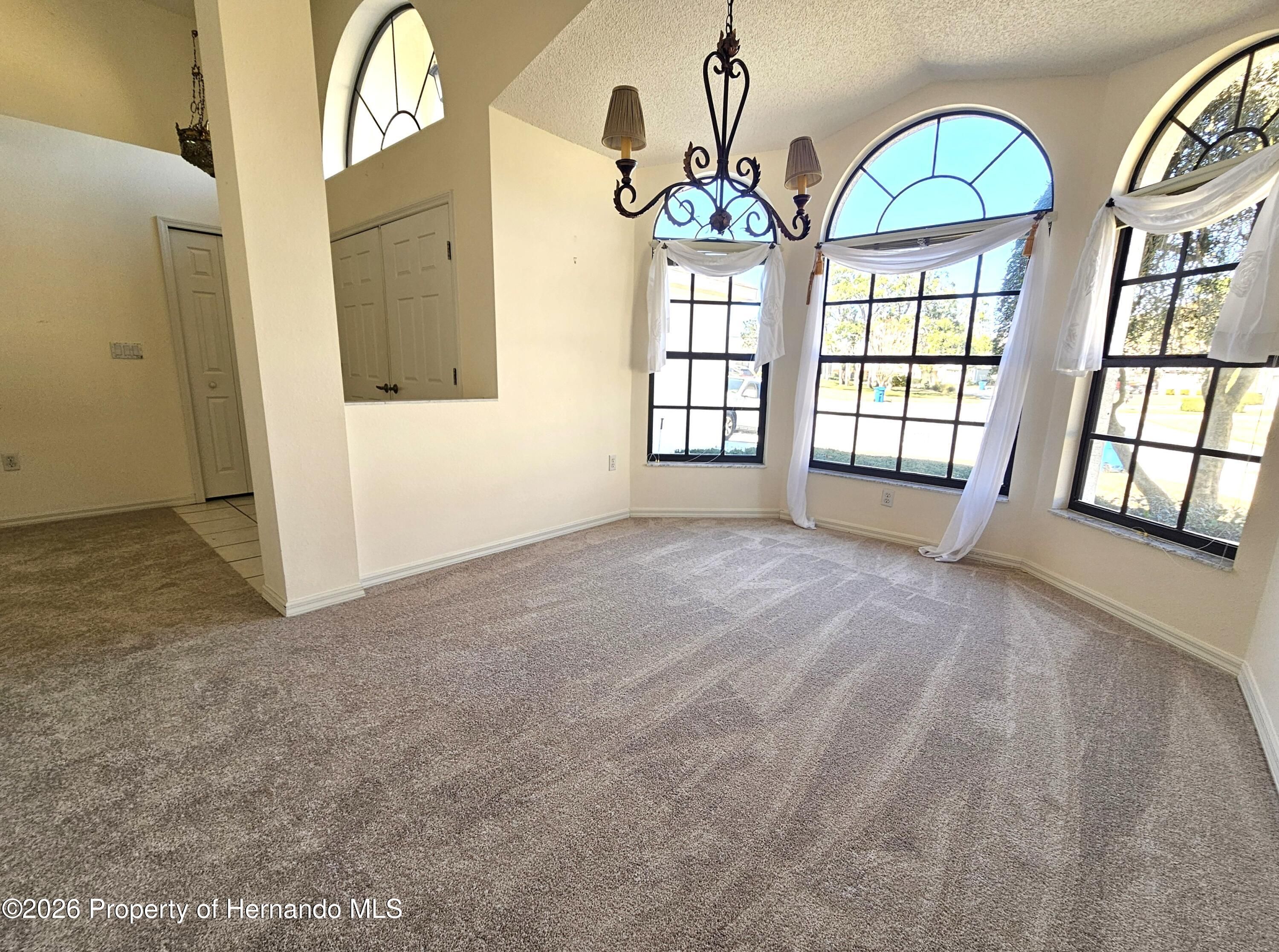 MOTIVATED SELLER! Welcome to Wellington at Seven Hills, a premier 55+ gated community offering resort-style living. This well-maintained 3-bedroom, 2-bath, 2-car garage pool home combines elegance, comfort, and Florida charm, and features brand-new carpet and a new water heater. Inside, soaring vaulted ceiling and large windows create a bright, open feel. The formal dining room features a dramatic arched window, while the spacious living room flows seamlessly to the covered screened lanai and pool area--perfect for entertaining and relaxing. The kitchen offers plenty of cabinet and counter space, a breakfast bar, and a breakfast nook. All appliances are included with this home. The split-bedroom plan provides privacy. The generous master suite boasts direct pool access, his & hers closets, and a bathroom with dual sinks and a large walk-in shower. The front room works perfectly as a den, office, or 3rd bedroom, with a guest bedroom and full bath completing the plan. Practical features include an interior laundry room with cabinets, a utility sink, and a washer and dryer. Enjoy the large covered lanai and pool area, perfect for relaxing and entertaining guests. Wellington at Seven Hills offers a clubhouse, fitness center, tennis, social activities, and 24-hour gated security. Conveniently located near shopping, dining, medical services, and the Suncoast Parkway for easy access to Tampa and the Gulf Coast. Schedule your private showing today!