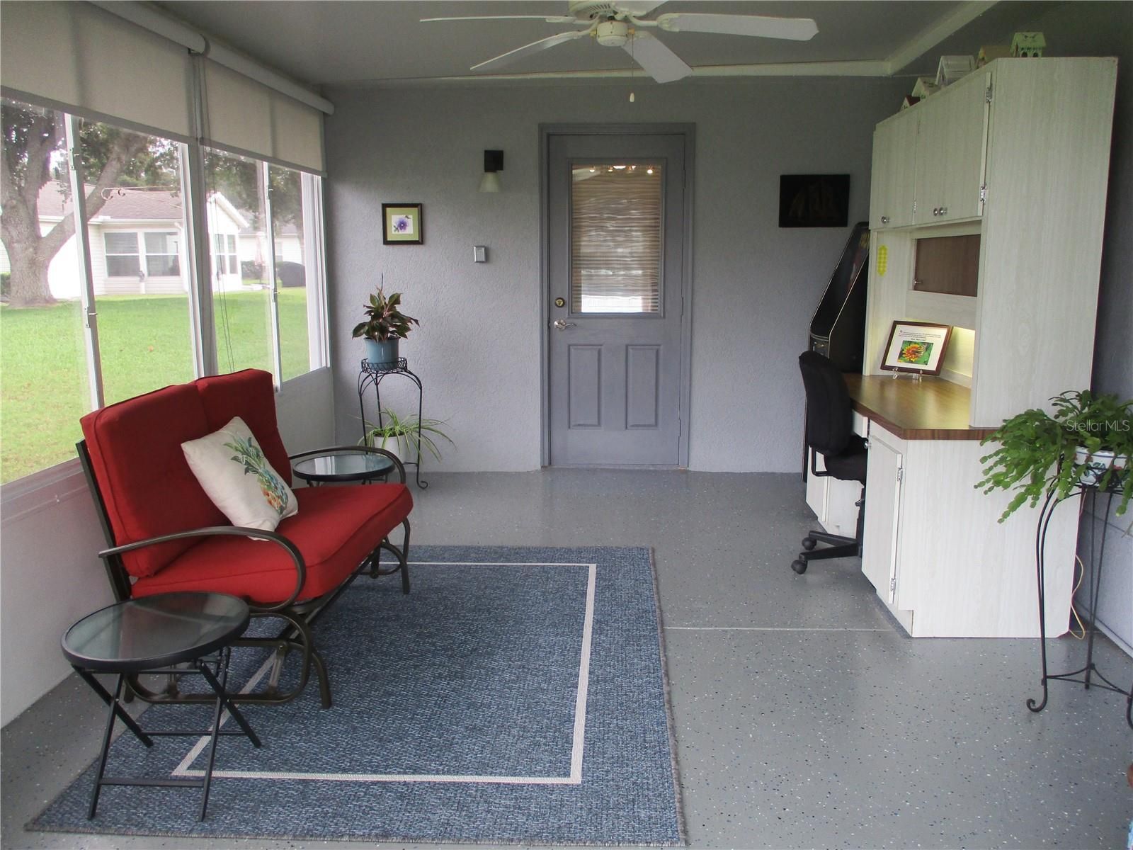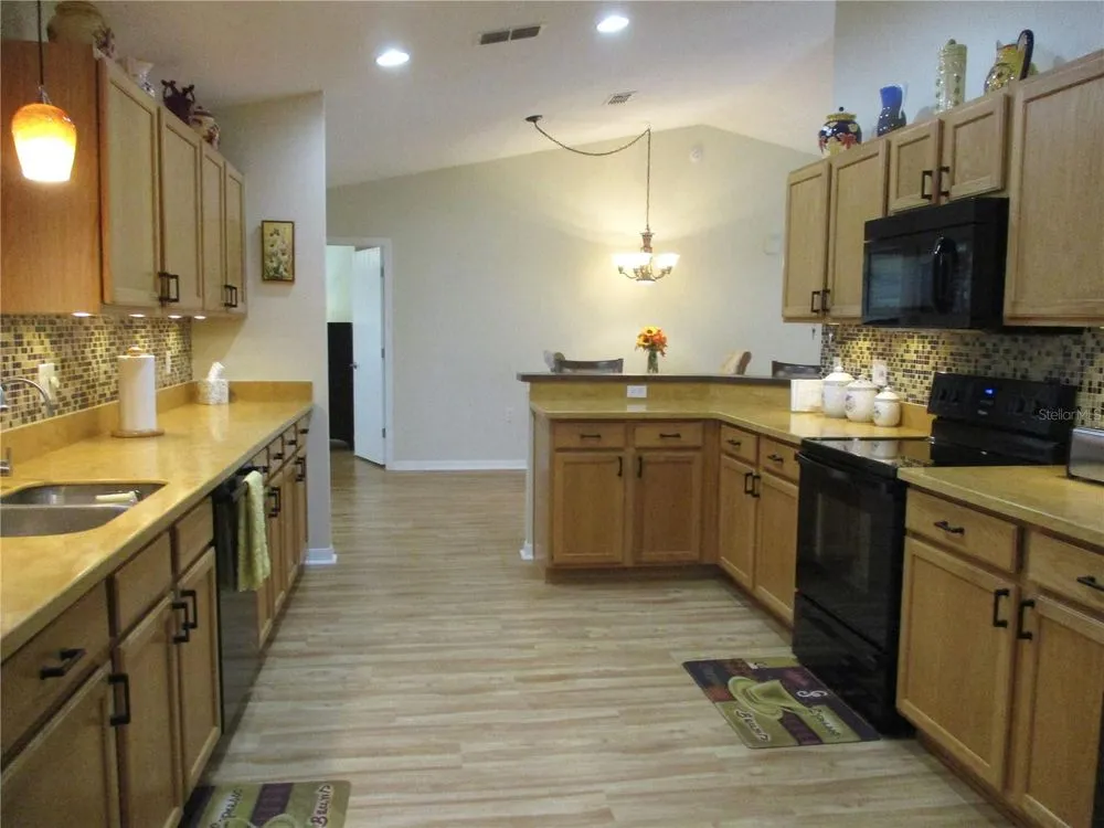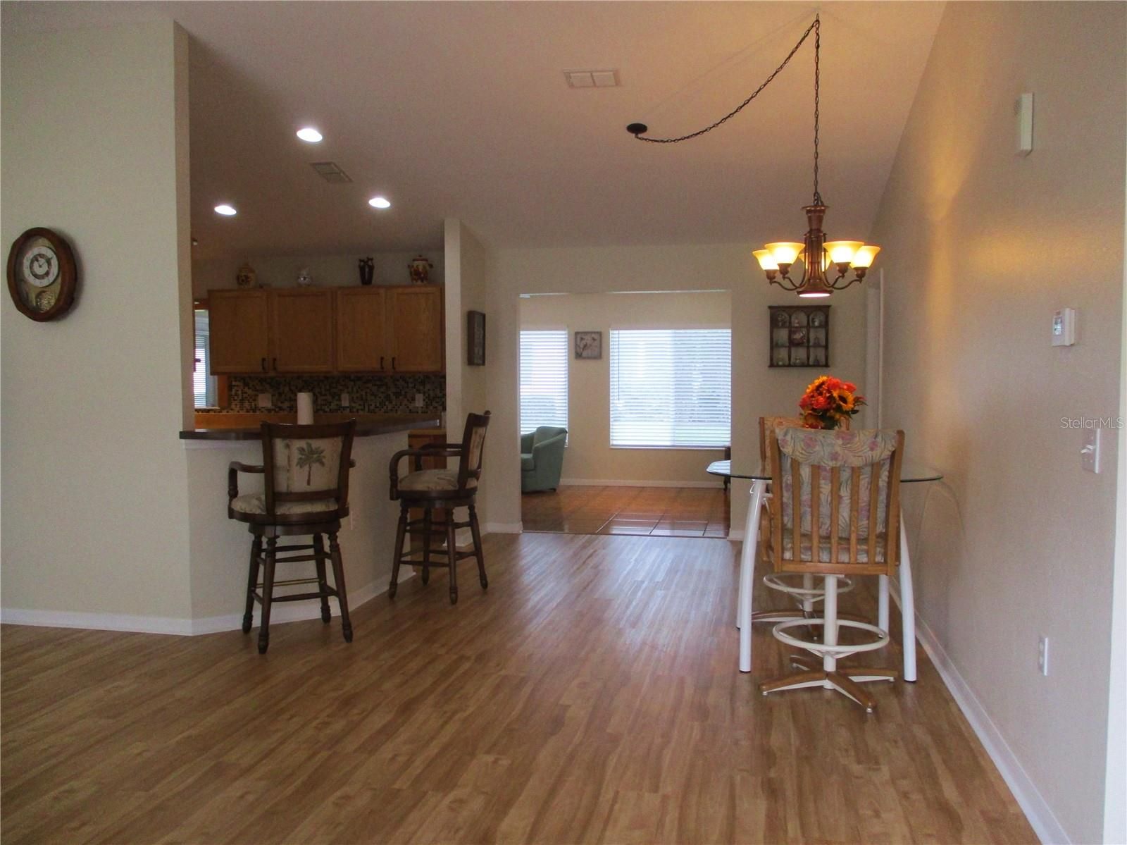 IMMACCULATE INSIDE AND OUT !! You will be impressed with the curb appeal on this lovely STUCCO 2/2/2 with Florida room, enclosed lanai, covered grilling patio, extended front porch and colorful landscape plantings within the concrete curbing. Even more inviting is the warm and welcome feeling you'll experience when you walk in the door! This SPACIOUS Palm model home has New Luxury Vinyl Plank running thru with no thresholds. Fresh interior (and exterior) paint. The kitchen is semi open, with plenty of soft close oak cabinetry, light and bright with under cabinet LED lighting as well as recessed lighting and solar tube. Loads of work space with Corian countertops, tasteful tile backsplash and black appliances. The primary bedroom has double closets and double vanities in the bathroom as well as new tile floors and water saver toilets in both bathrooms. New blinds and solar shades. Garage is 20x26., ROOF 2017, HVAC 2022, WATER HEATER 2019, TERMITE BOND, WATER SOFTENER, KITCHEN REVERSE OSMOSIS. In the fun friendly active 55+ gated golf community with pool, spa, pickleball, tennis, shuffleboard, corn hole bocce ball, fitness center, billiards, water aerobics, yoga, exercise classes, library, crafts, bingo, bunco, cards, game night, pot luck dinners, dances, social and travel groups. Minutes from golf, groceries, medical, restaurants, shopping gas, banking, hiking and biking nature trails.