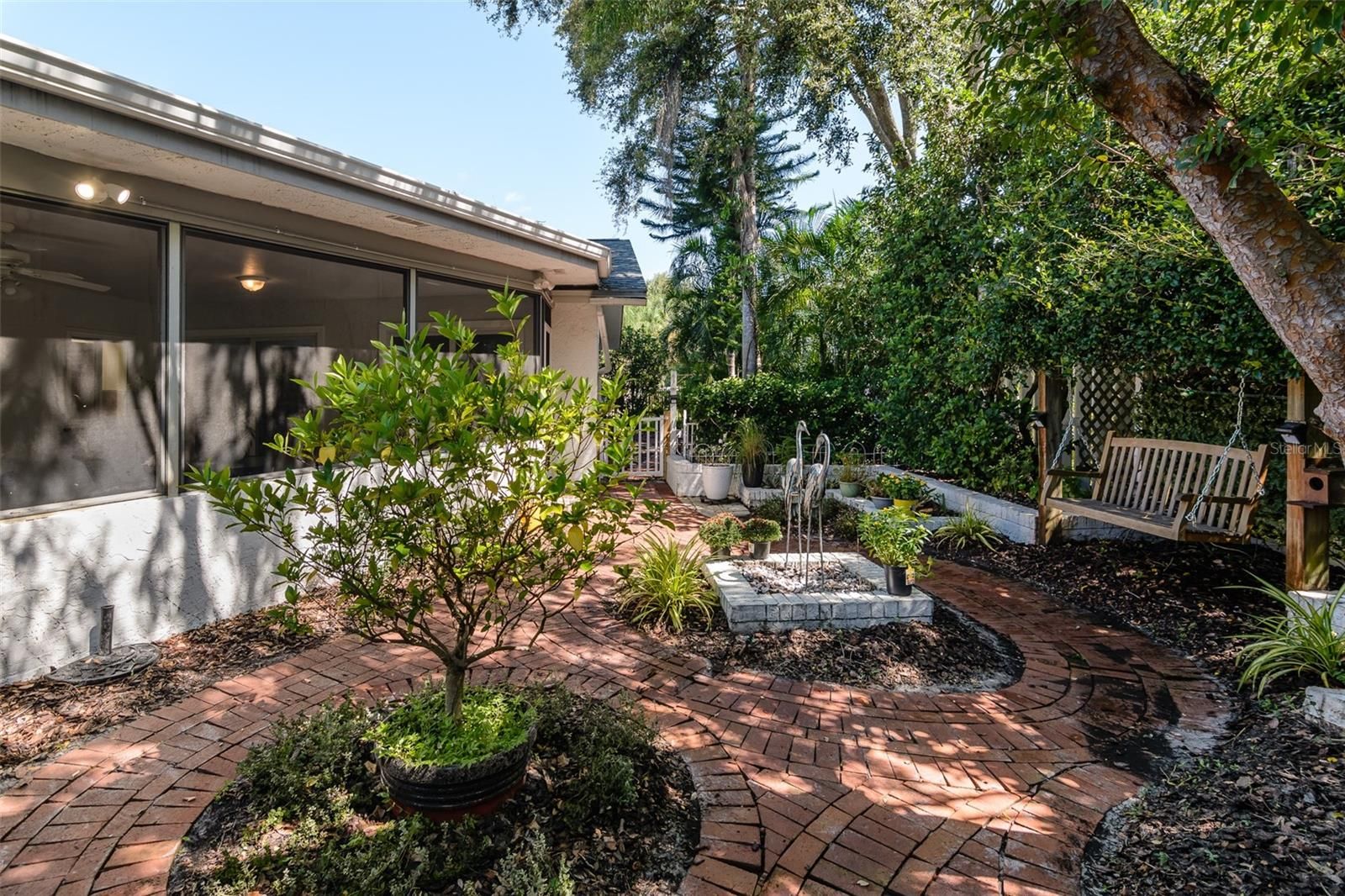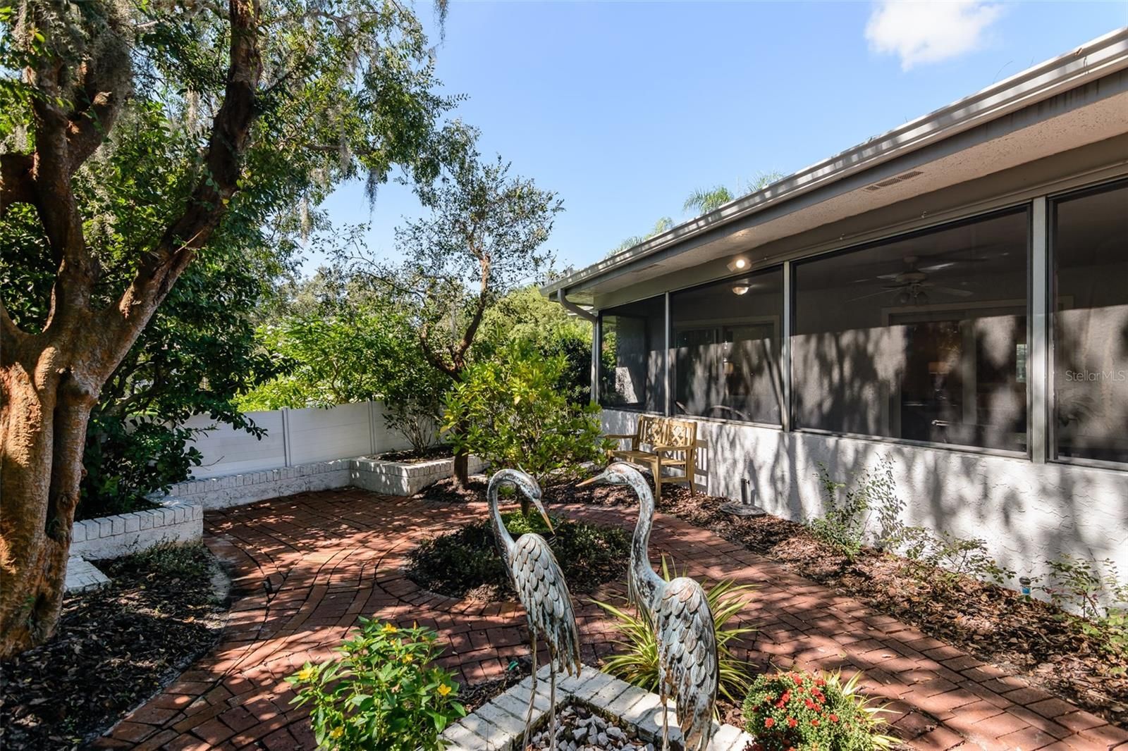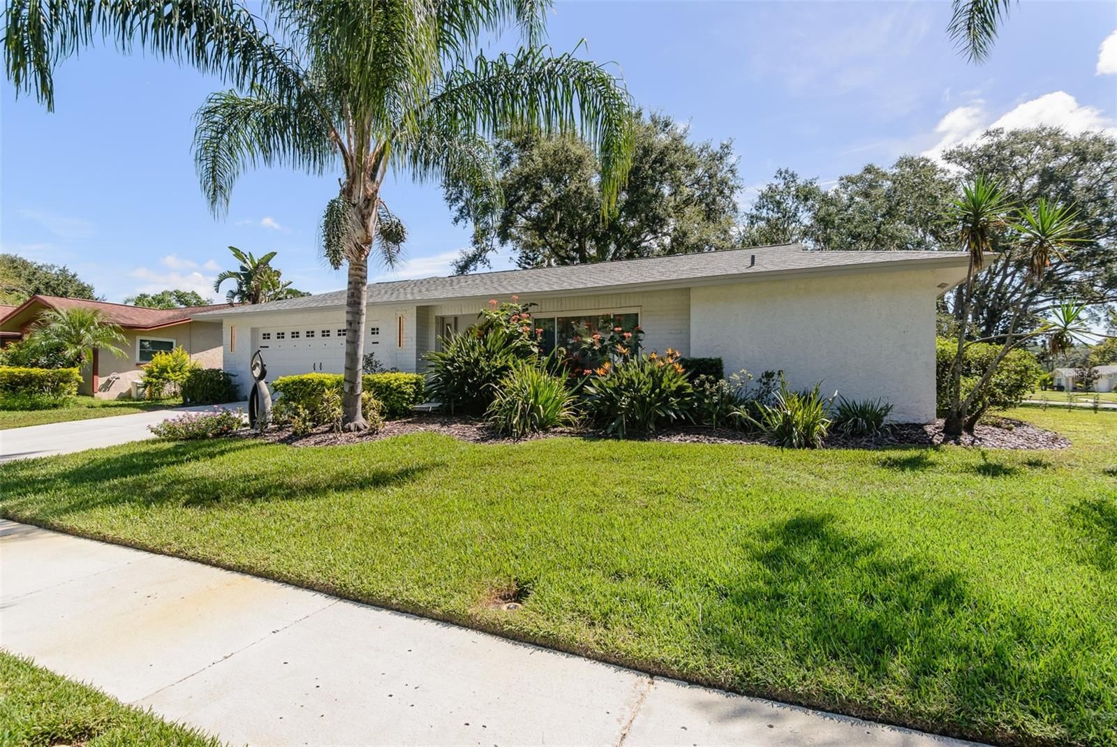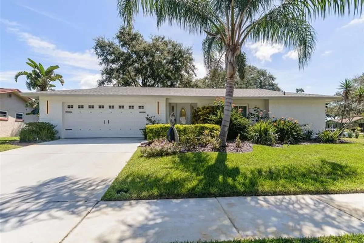 Looking for a move-in ready, completely updated 2Br/2Ba/2Gar home on a corner lot in a 55+ community? Look no further! Beautifully and fully updated baths and kitchen with new stainless refrigerator and range. Eight panels of Andersen Renewal impact rated sliding glass doors ($32,000) installed in August 2025 with views of the grand screened lanai and a charming brick-paved courtyard garden with fenced backyard. Impact rated windows installed in 2023. Shingle and flat roofs replaced in October 2023. Luxury vinyl plank flooring throughout. Crown molding in shared living spaces and 4 inch baseboards. Kitchen with granite countertops, marble mosaic backsplash, undermount sink, and under cabinet lighting opens to both living room and dining room. Electric fireplace in living room for chilly winter evenings. Split bedroom plan. The primary bedroom has a large walk-in closet and beautiful ensuite bath with stone countertop and walk-in shower. The guest bedroom with wall of closets abuts the guest bath with stone countertop, undermount sink, newer cabinet, tiled walls and tub rain-shower. Linen closet. New electric hot water heater 2025. Water softener. Newer washer and dryer in garage. Open all the sliding glass doors to bring the outdoors in during mild weather. Community pool and clubhouse with full kitchen, library, and billiard room. Low $500 annual HOA fee. Must own 2 years prior to leasing and a twelve month lease restriction with required HOA approval. Walkable to Lansbrook Golf Course and Suncoast YMCA with gym, pool, tennis courts, basketball, yoga classes, and exercise classes. Bike ride to John Chestnut Park with dog park, boat ramp and a boardwalk and tower for viewing Lake Tarpon. Also easy access to Pinellas Trail for walking and biking. Twenty minutes to Honeymoon Island State Park Beach.