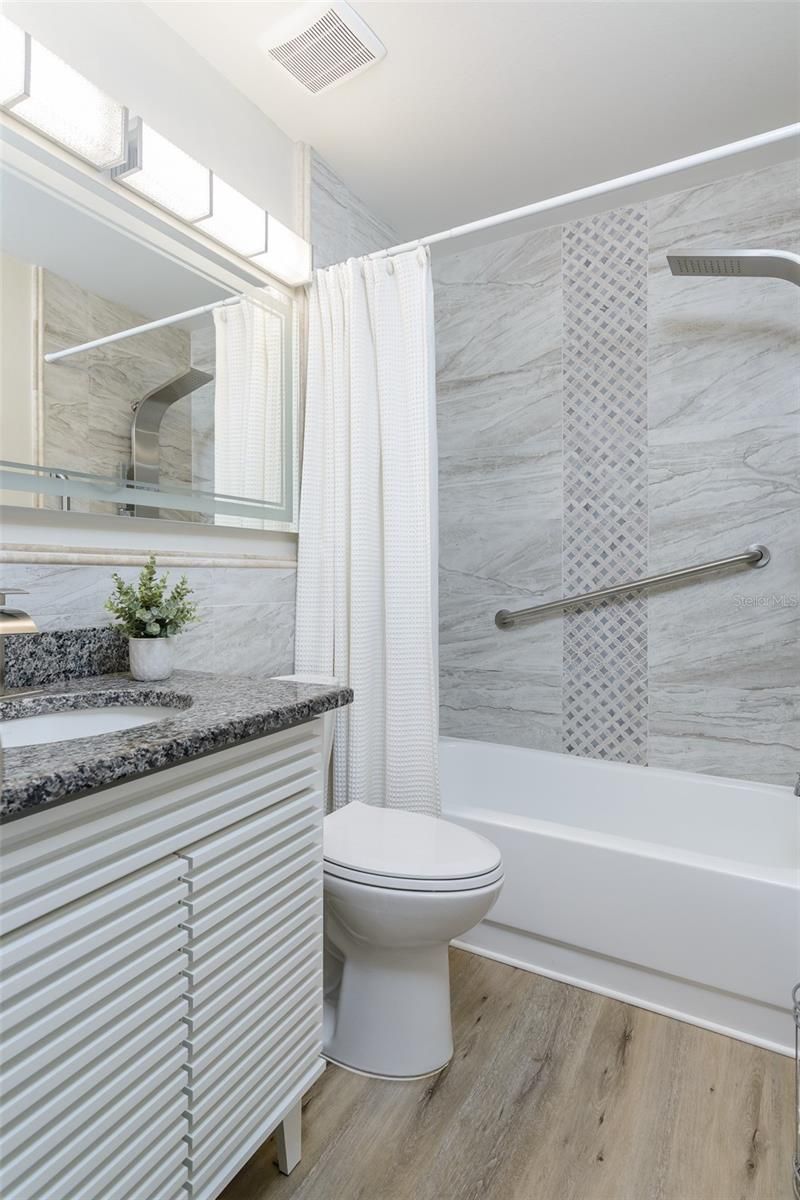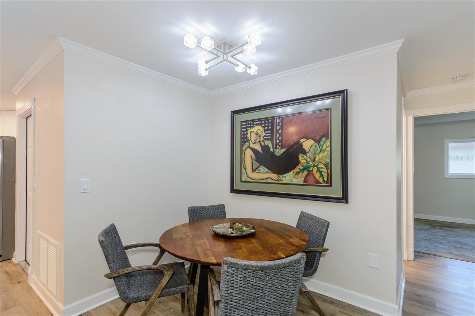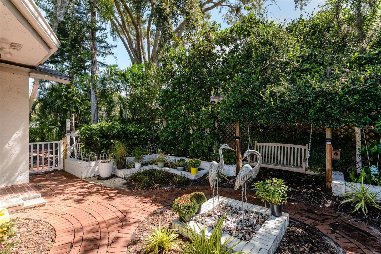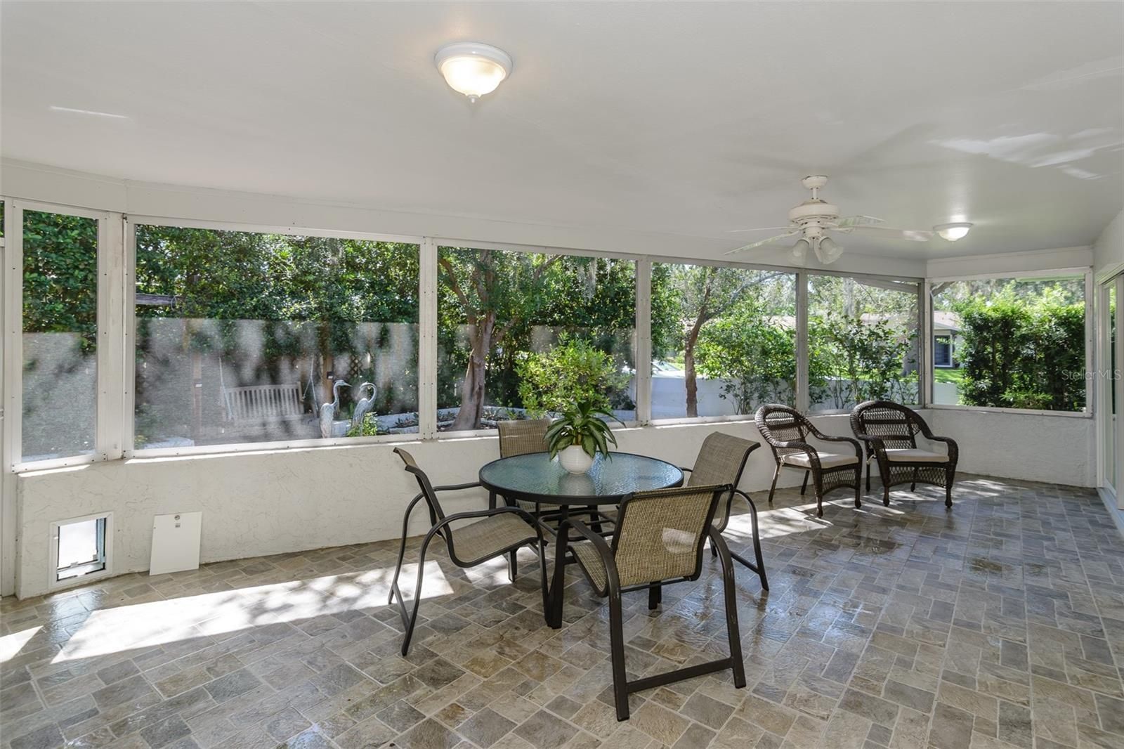 Looking for a move-in ready, completely updated 2Br/2Ba/2Gar home on a corner lot in a 55+ community? Look no further! Beautifully and fully updated baths and kitchen with new stainless refrigerator and range. Eight panels of Andersen Renewal impact rated sliding glass doors ($32,000) installed in August 2025 with views of the grand screened lanai and a charming brick-paved courtyard garden with fenced backyard. Impact rated windows installed in 2023. Shingle and flat roofs replaced in October 2023. Luxury vinyl plank flooring throughout. Crown molding in shared living spaces and 4 inch baseboards. Kitchen with granite countertops, marble mosaic backsplash, undermount sink, and under cabinet lighting opens to both living room and dining room. Electric fireplace in living room for chilly winter evenings. Split bedroom plan. The primary bedroom has a large walk-in closet and beautiful ensuite bath with stone countertop and walk-in shower. The guest bedroom with wall of closets abuts the guest bath with stone countertop, undermount sink, newer cabinet, tiled walls and tub rain-shower. Linen closet. New electric hot water heater 2025. Water softener. Newer washer and dryer in garage. Open all the sliding glass doors to bring the outdoors in during mild weather. Community pool and clubhouse with full kitchen, library, and billiard room. Low $500 annual HOA fee. Must own 2 years prior to leasing and a twelve month lease restriction with required HOA approval. Walkable to Lansbrook Golf Course and Suncoast YMCA with gym, pool, tennis courts, basketball, yoga classes, and exercise classes. Bike ride to John Chestnut Park with dog park, boat ramp and a boardwalk and tower for viewing Lake Tarpon. Also easy access to Pinellas Trail for walking and biking. Twenty minutes to Honeymoon Island State Park Beach.
