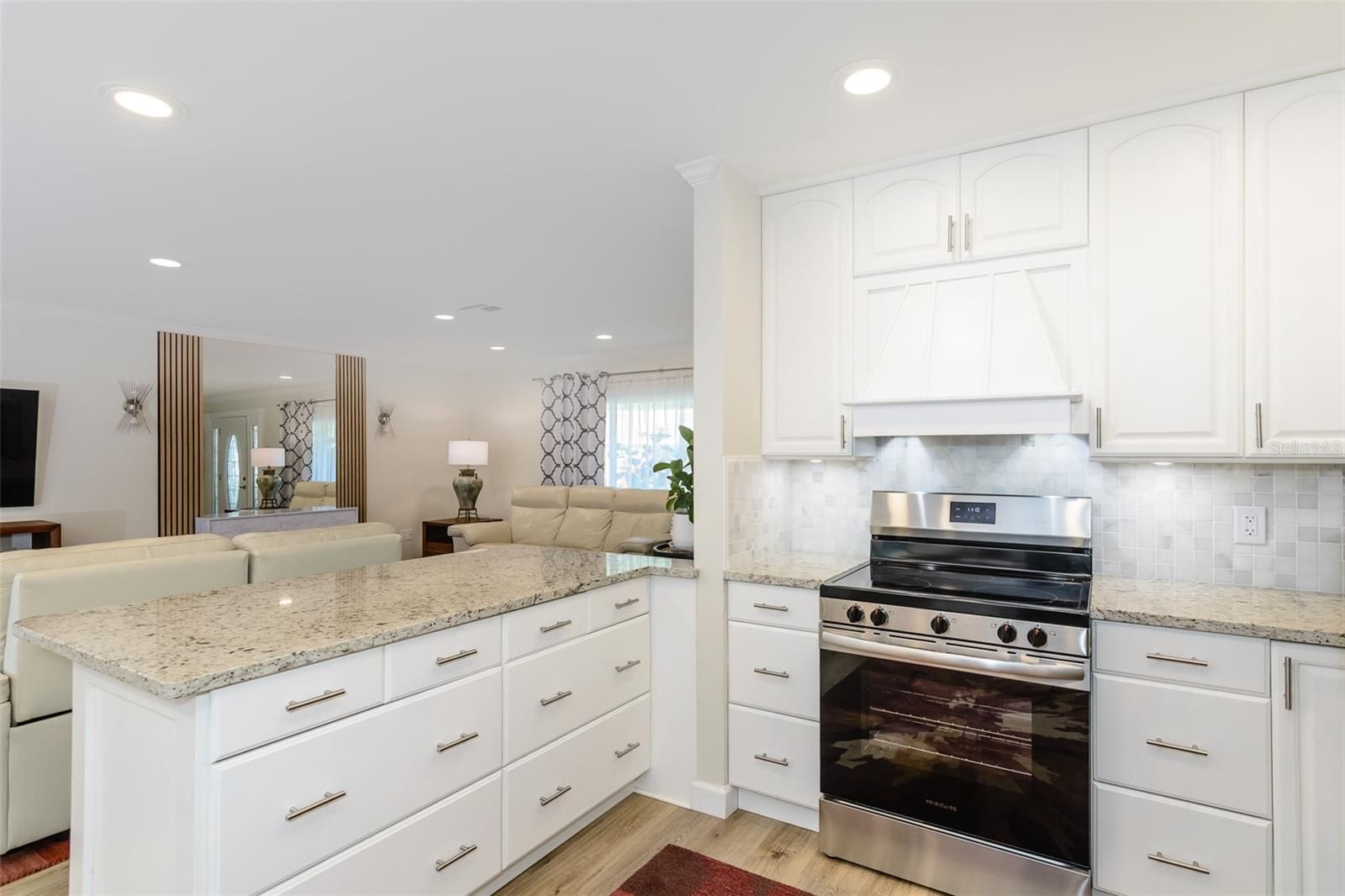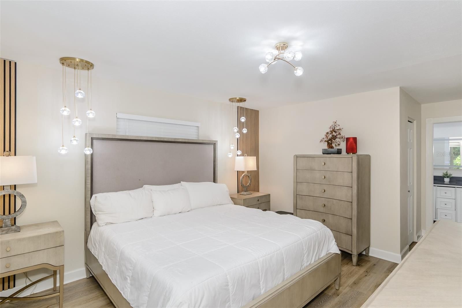 - Crown Molding, Open Floorplan, Main Level Primary, Solid Surface Counters, Solid-Wood Cabinets, Split Bedrooms, Stone Counters, Walk-In Closet(s), Window Treatments