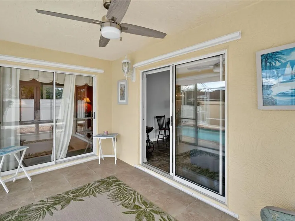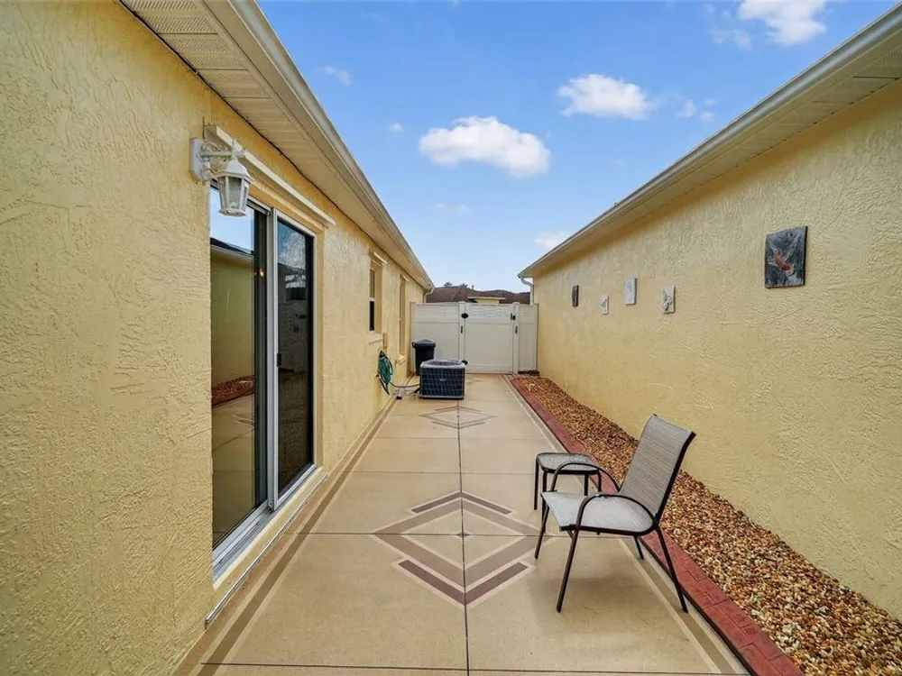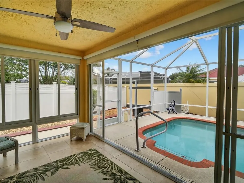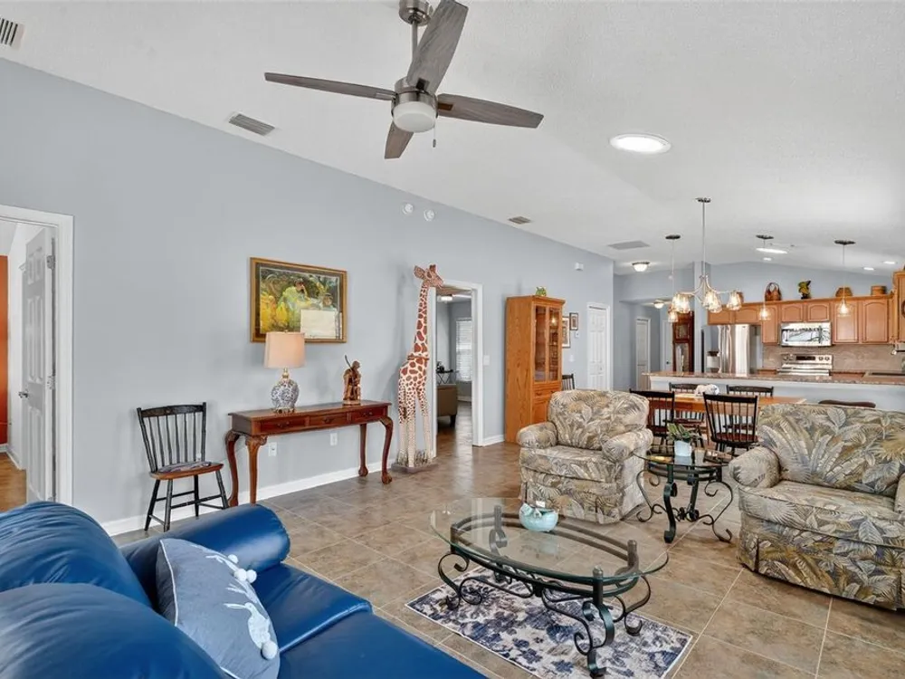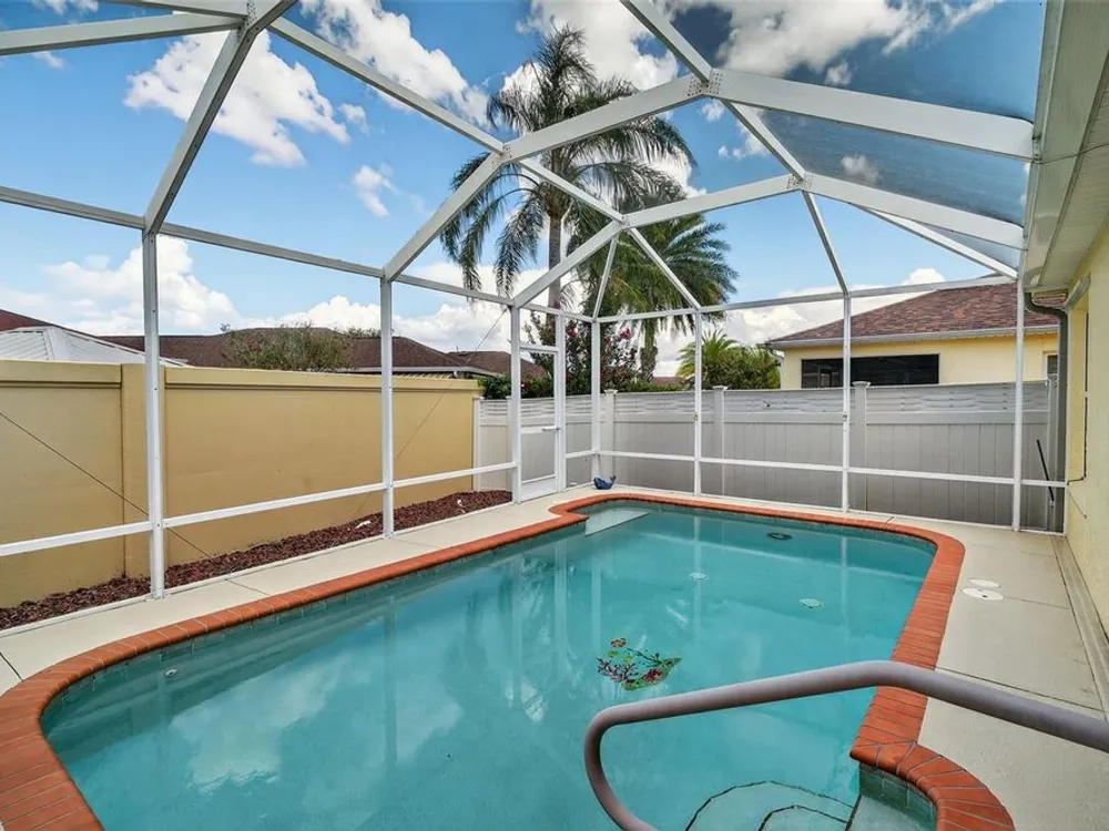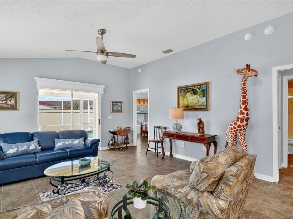 Outstanding 3/2 Foxglove Model with a Pool No BOND Located in the Prime location of the Hampton Villas Between 466 & 466A, AC & Roof 5 Yrs old Tile Flooring in all main Areas, Third Bedroom/Den Luxury Vinyl. Kitchen has Custom Laminate Counter Tops Newer SS LG Appliances Open to Dining and Living Room. Primary Bedroom has Tile flooring and In-suite Bath Enclosed Lanai Sliders to Large in-Ground Pool Bird Caged New Pool & Filter, Garage Flooring Just Painted and Parking For Car & Golf Cart. Home Walking Distance to Two Community Pool and Mail Station also between Mallory, Cane Garden CC & Lake Mona Center this home has it all some Furniture Available. Call to view this great Pool Home