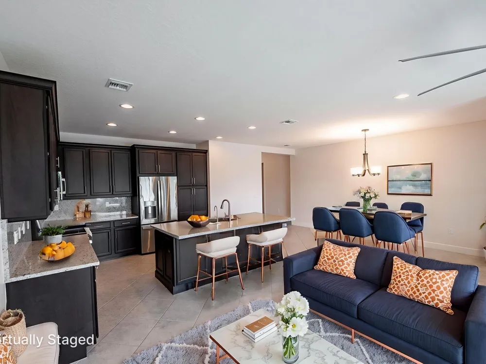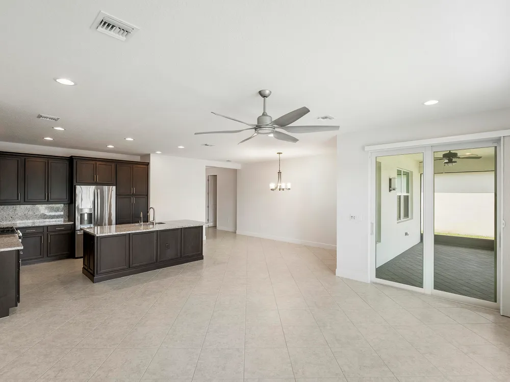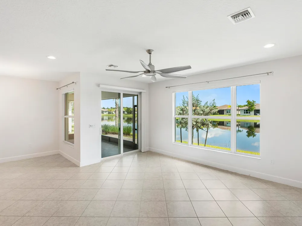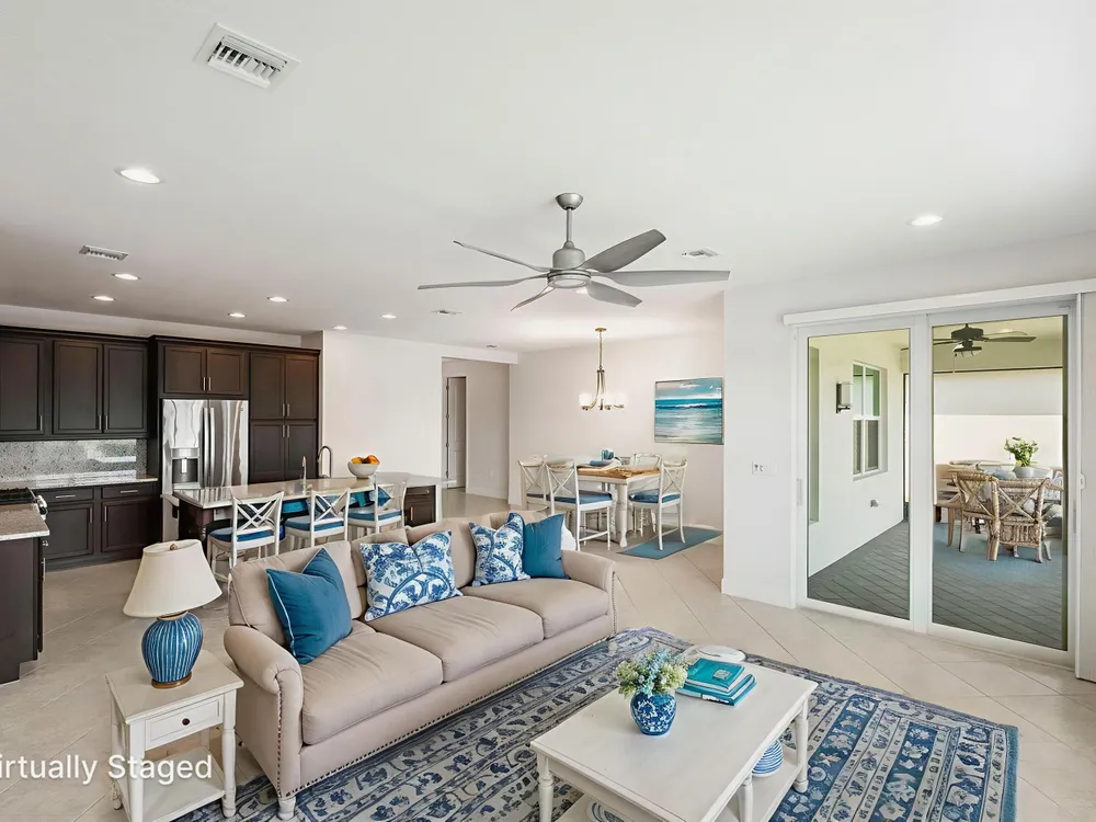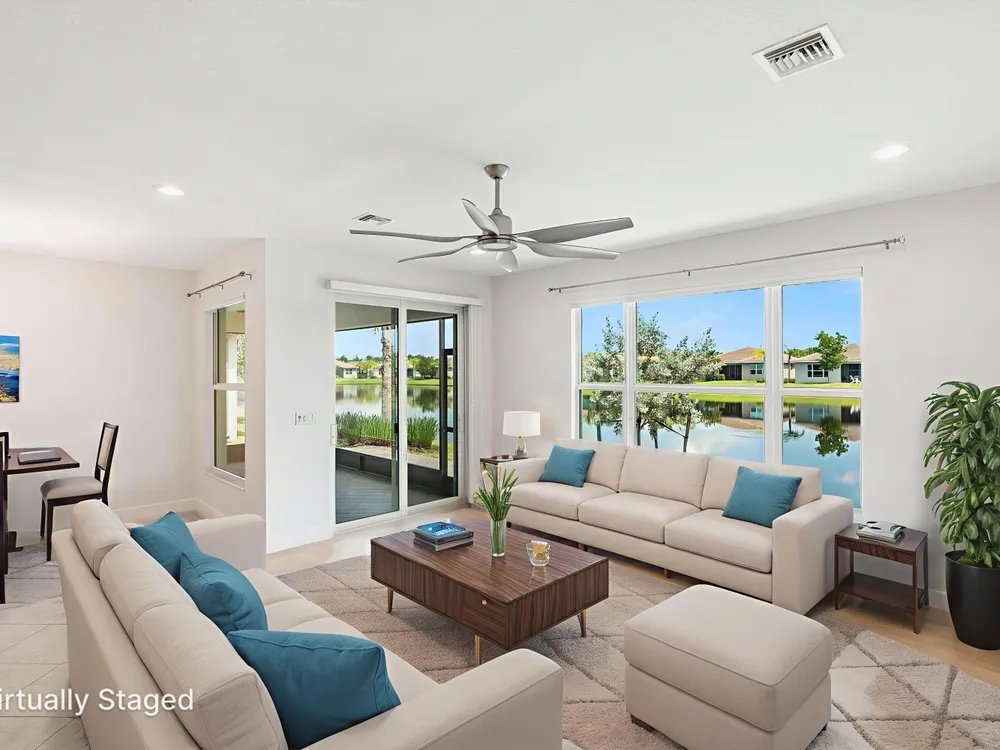 Heron Model home in Riverland, with loads of upgrades, and all tile throughout. Start Living the Valencia Lifestyle Today! Skip the 6-12 month wait for new construction and start enjoying the award-winning 55+ lifestyle at Valencia Cay in Riverland--Port St. Lucie's premier active adult community.This like-new 2021 Heron model offers 2 bedrooms, 2 baths, a den, and a private, tranquil lot with serene lake and garden views from the great room and primary suite. The open-concept design is filled with natural light and features such as complete impact glass windows, and doors for peace of mind. Interior Features include Spacious open floor plan with ceramic tile throughout the whole house. Gourmet kitchen with granite countertops, gas range, expanded pantry, stainless