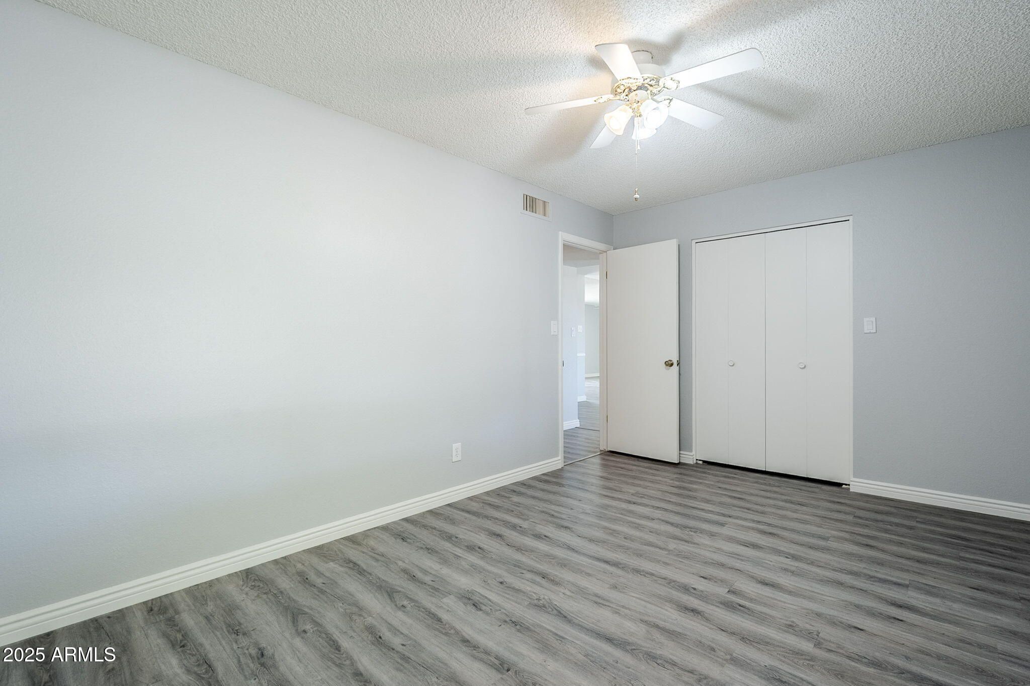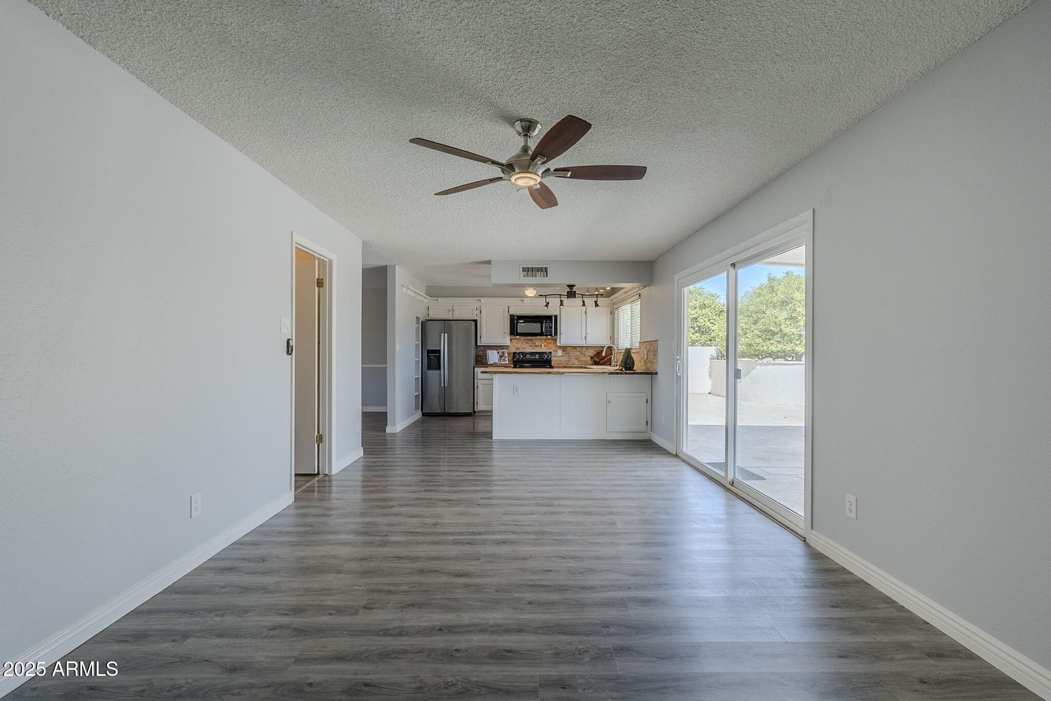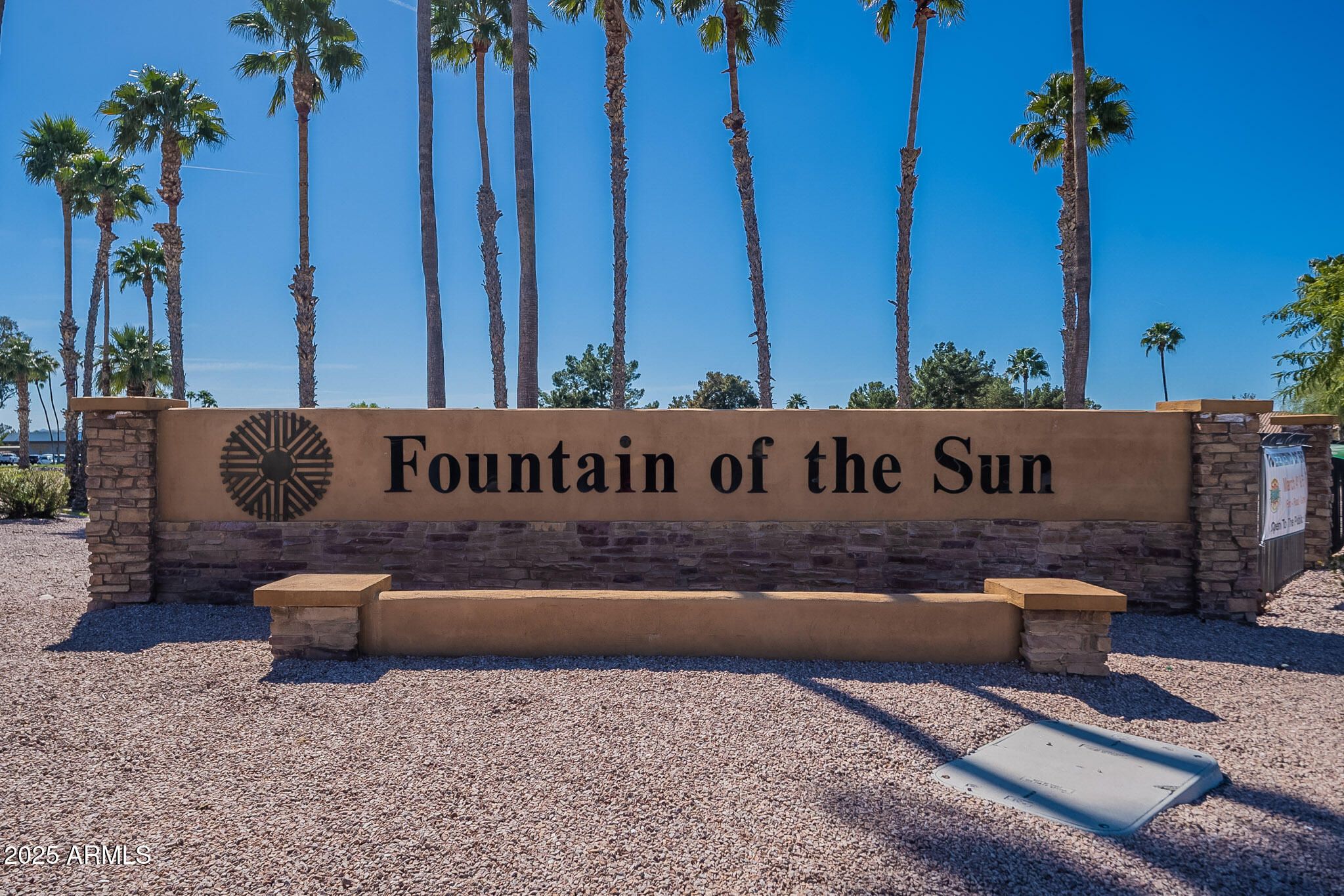 Freshly updated home on a spacious 11,138 SF cul-de-sac lot in Fountain of the Sun. Just completed in September 2025: interior paint, new kitchen countertops and sink. The versatile floor plan features laminate flooring throughout (2019), a primary suite with walk-in closet, and two distinct living areas - one at the front of the home and a comfortable family room off the kitchen. Enjoy the oversized covered patio overlooking an expansive tiled patio area. Additional highlights include a newer roof (2019), updated window and sliding door (2016), and a 2-car garage with storage cabinets and workbench. Fridge, Washer, Dryer included. Low-maintenance front yard with synthetic grass. Exceptional community amenities! This well-maintained 1,284 square foot single-level home features 2 bedrooms and 2 bathrooms on an impressively large 11,138 SF cul-de-sac lot in the established Fountain of the Sun community. Built in 1980, the home has been thoughtfully updated over the years while maintaining its comfortable, functional layout. RECENT UPDATES - Interior painted September 2025 -New kitchen countertops and sink installed September 2025 - Laminate flooring throughout (2019) - Newer roof (May 2019) - Updated sliding door, front window, and kitchen window (2016) - INTERIOR FEATURESOpen concept layout with natural flow between living spaces - Spacious primary bedroom with walk-in closet and en-suite bathroom - Second bedroom with ample closet space -Second full bathroom conveniently located near guest bedroom - Front-loading washer and dryer + fridge included " Single-level living with no steps to navigate KITCHEN HIGHLIGHTS - Newly installed countertops (September 2025) - Brand new sink (September 2025) - Open to great room area for easy entertaining " Updated kitchen window (2016) OUTDOOR LIVING " Oversized covered patio perfect for outdoor dining and entertaining " Expansive tiled area in backyard " Mature orange and grapefruit trees " Low-maintenance front yard with synthetic grass " Large 11,138 SF cul-de-sac lot " Desert-adapted landscaping minimizes water usage GARAGE & STORAGE " 2-car garage with automatic opener " Built-in storage cabinets " Dedicated workbench area " Direct access to home COMMUNITY AMENITIES " Community swimming pool " Active adult community " Well-maintained common areas " Social clubs and activities LOCATION BENEFITS " Quiet cul-de-sac location minimizes traffic " Convenient access to major roadways " Multiple grocery options within 5-8 minutes (Safeway, Fry's, Walmart) " Banner Baywood Medical Center approximately 10 minutes away " Shopping at Mesa Pavilions North and Power Square Mall " Recreation at Red Mountain Park and Usery Mountain Regional Park