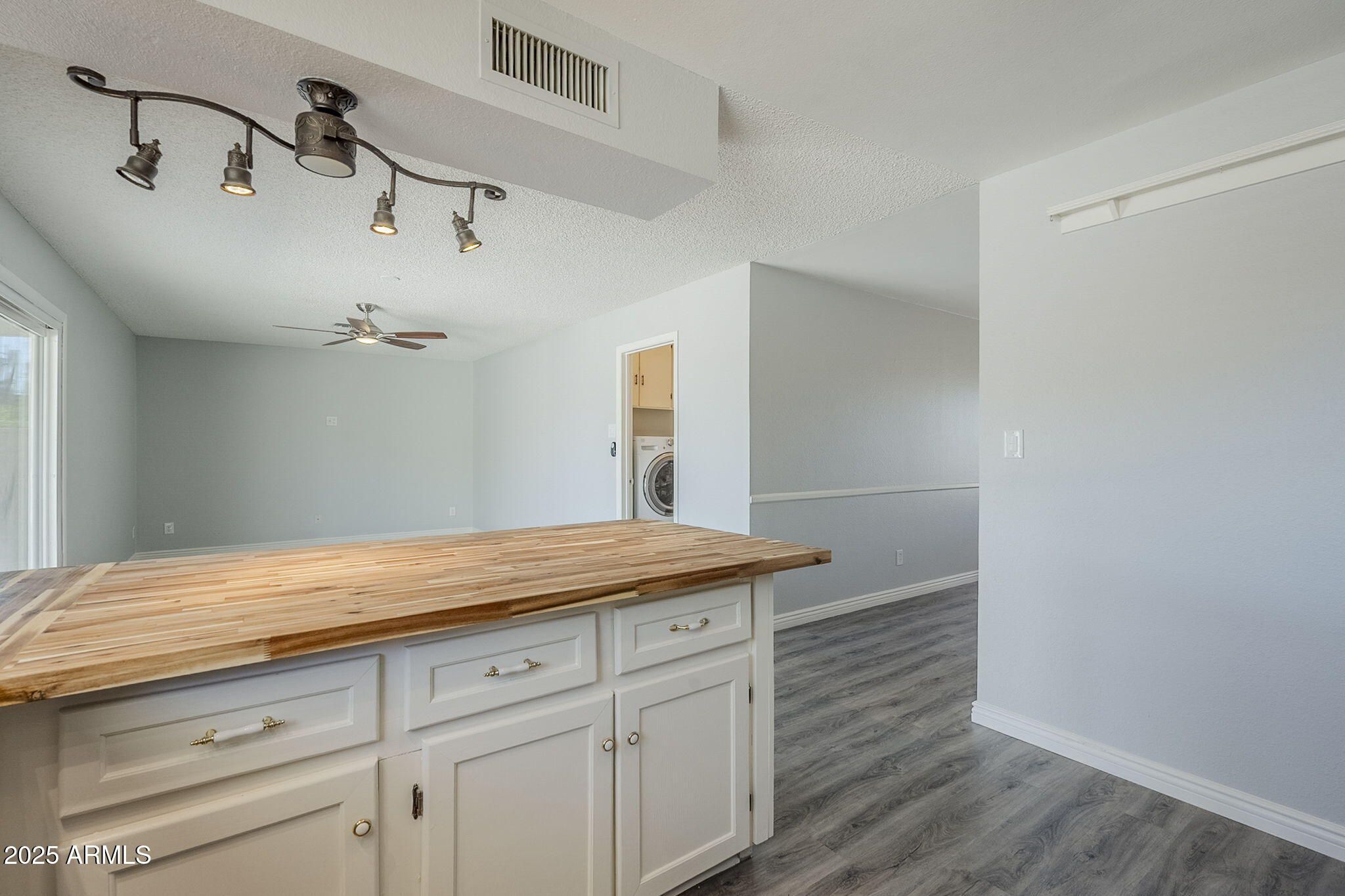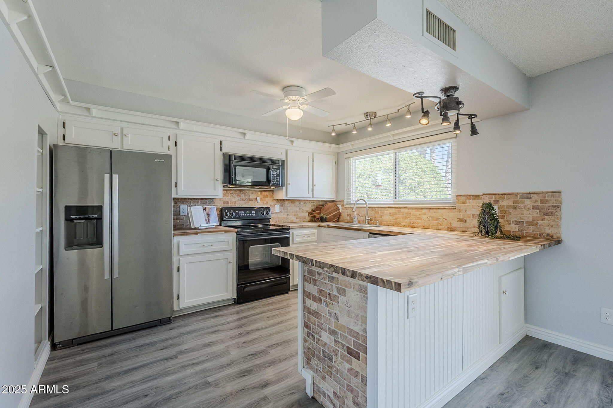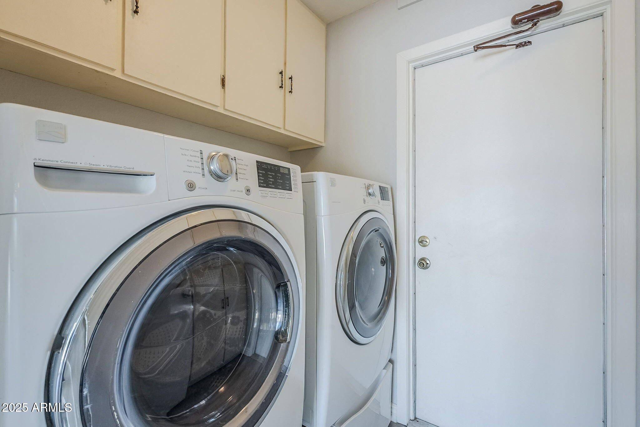 Freshly updated home on a spacious 11,138 SF cul-de-sac lot in Fountain of the Sun. Just completed in September 2025: interior paint, new kitchen countertops and sink. The versatile floor plan features laminate flooring throughout (2019), a primary suite with walk-in closet, and two distinct living areas - one at the front of the home and a comfortable family room off the kitchen. Enjoy the oversized covered patio overlooking an expansive tiled patio area. Additional highlights include a newer roof (2019), updated window and sliding door (2016), and a 2-car garage with storage cabinets and workbench. Fridge, Washer, Dryer included. Low-maintenance front yard with synthetic grass. Exceptional community amenities! This well-maintained 1,284 square foot single-level home features 2 bedrooms and 2 bathrooms on an impressively large 11,138 SF cul-de-sac lot in the established Fountain of the Sun community. Built in 1980, the home has been thoughtfully updated over the years while maintaining its comfortable, functional layout. RECENT UPDATES - Interior painted September 2025 -New kitchen countertops and sink installed September 2025 - Laminate flooring throughout (2019) - Newer roof (May 2019) - Updated sliding door, front window, and kitchen window (2016) - INTERIOR FEATURESOpen concept layout with natural flow between living spaces - Spacious primary bedroom with walk-in closet and en-suite bathroom - Second bedroom with ample closet space -Second full bathroom conveniently located near guest bedroom - Front-loading washer and dryer + fridge included " Single-level living with no steps to navigate KITCHEN HIGHLIGHTS - Newly installed countertops (September 2025) - Brand new sink (September 2025) - Open to great room area for easy entertaining " Updated kitchen window (2016) OUTDOOR LIVING " Oversized covered patio perfect for outdoor dining and entertaining " Expansive tiled area in backyard " Mature orange and grapefruit trees " Low-maintenance front yard with synthetic grass " Large 11,138 SF cul-de-sac lot " Desert-adapted landscaping minimizes water usage GARAGE & STORAGE " 2-car garage with automatic opener " Built-in storage cabinets " Dedicated workbench area " Direct access to home COMMUNITY AMENITIES " Community swimming pool " Active adult community " Well-maintained common areas " Social clubs and activities LOCATION BENEFITS " Quiet cul-de-sac location minimizes traffic " Convenient access to major roadways " Multiple grocery options within 5-8 minutes (Safeway, Fry's, Walmart) " Banner Baywood Medical Center approximately 10 minutes away " Shopping at Mesa Pavilions North and Power Square Mall " Recreation at Red Mountain Park and Usery Mountain Regional Park