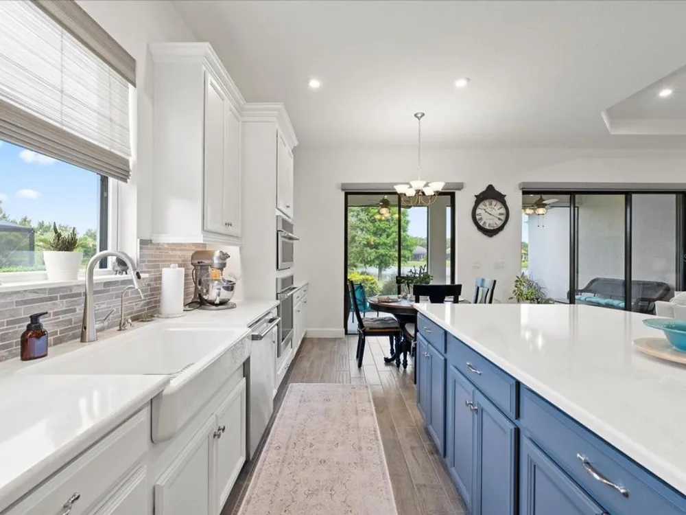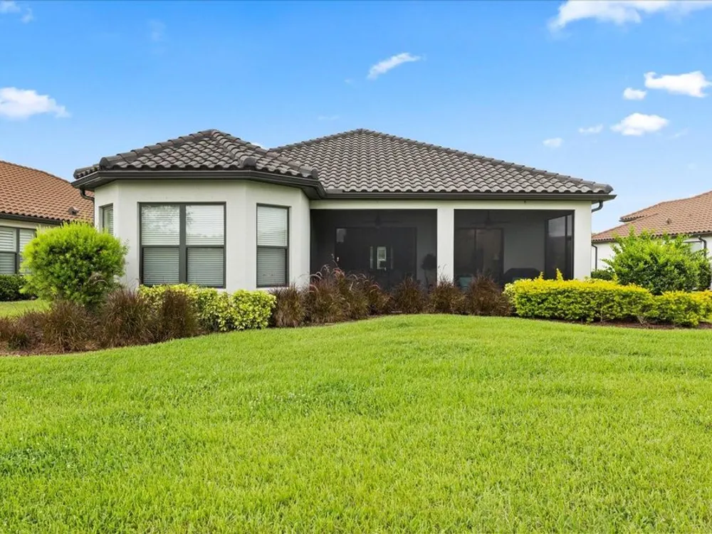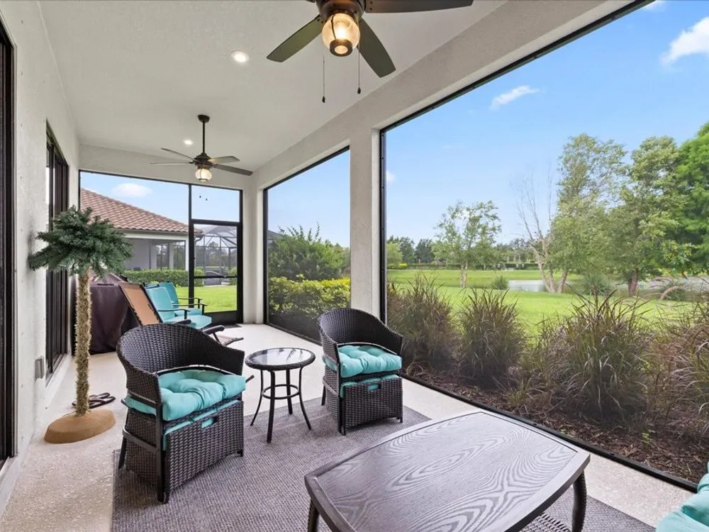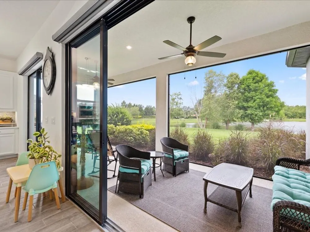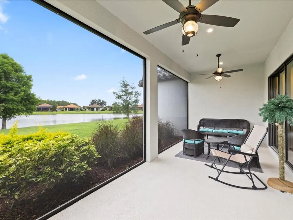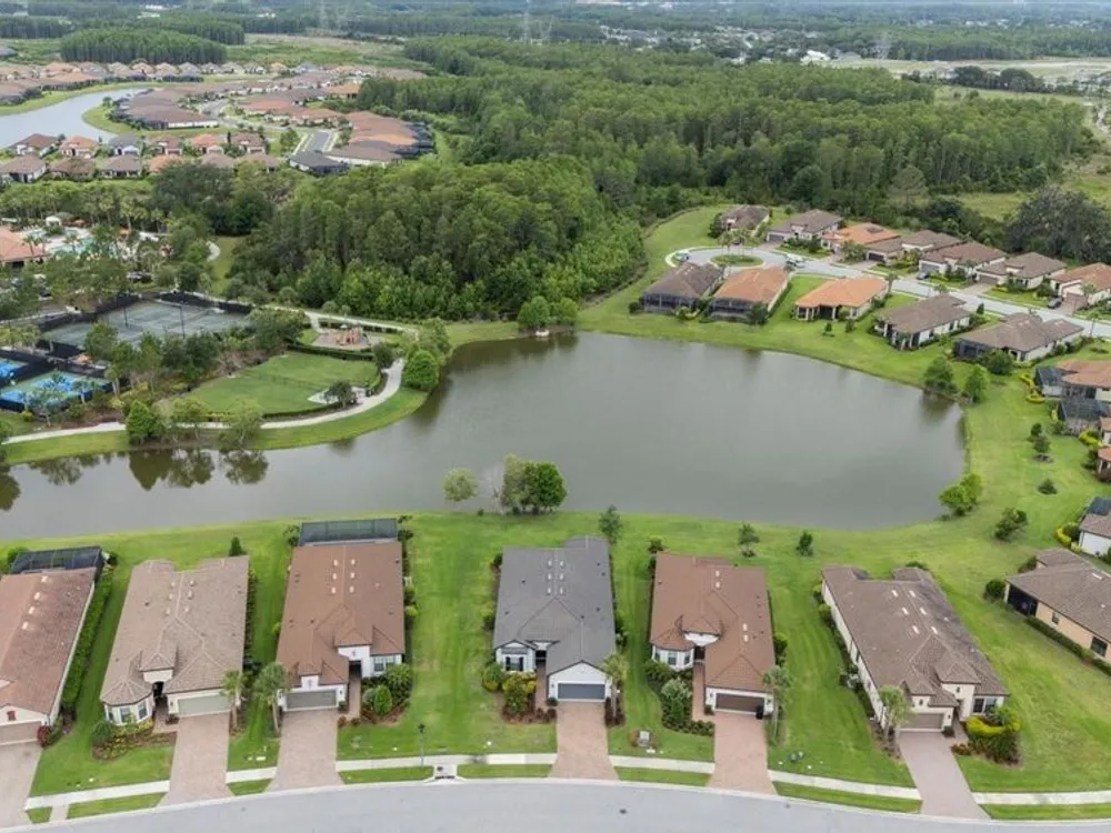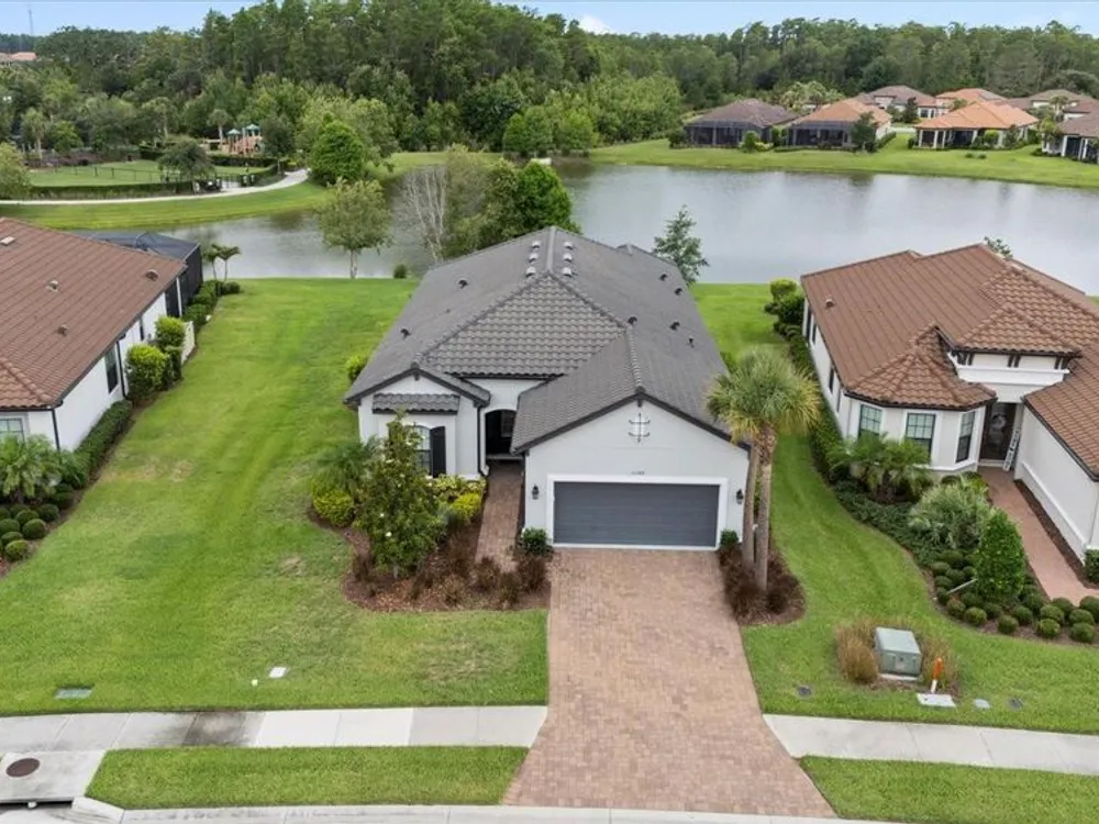 Welcome to this stunning custom-built 3BR/3BA + office home in the highly sought-after Esplanade at Starkey Ranch! Built in 2021, this immaculate residence offers a spacious open floor plan with 10’ ceilings, 8’ solid wood doors, upgraded tile flooring, and designer lighting throughout. The gourmet kitchen boasts quartz countertops, a Monogram appliance package ($10,000 upgrade), microwave/convection oven combo, farmhouse sink, large island with prep sink and knee wall cabinetry—ideal for entertaining. Enjoy flexibility with a dedicated office/craft room that can easily function as a 4th bedroom, and unwind in the luxurious primary suite featuring a sitting area with water views of the pond, custom closet shelving, and spa-style bath with dual rain shower heads. Smart-home ready with pre-wired internet, cable, central floor outlets, and pendant lighting options. Step outside to your screened lanai overlooking a premium water view lot—already pre-plumbed and pre-wired for a future pool. Additional upgrades include motorized with remote control shades on sliding doors out to lanai, hurricane shutters, a hurricane-rated front door and window, aluminum gutters, tandem garage, and a pre-wired smart-home package. Located in a vibrant, amenity-rich gated community close to parks, trails, and top-rated schools—this home truly has it all! Monthly HOA fee covers: Plant and tree replacement, landscaping, lawn care, sprinkler system, trash pickup, PLUS common areas, pool and amenity center.