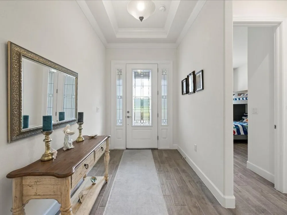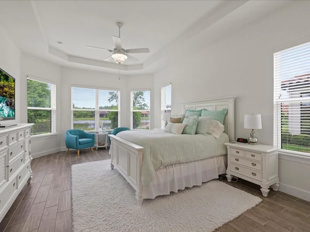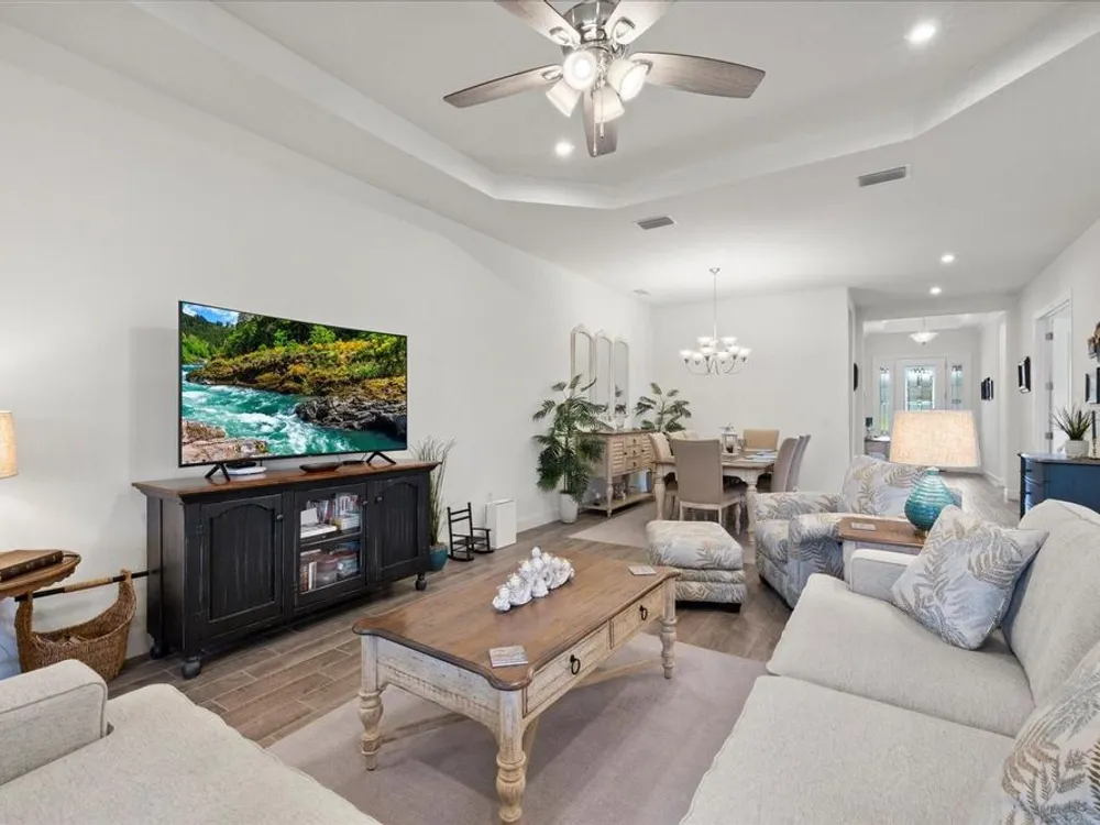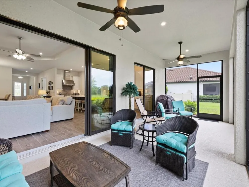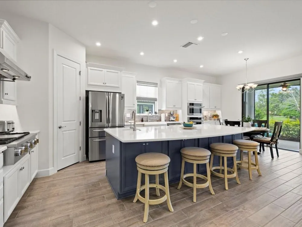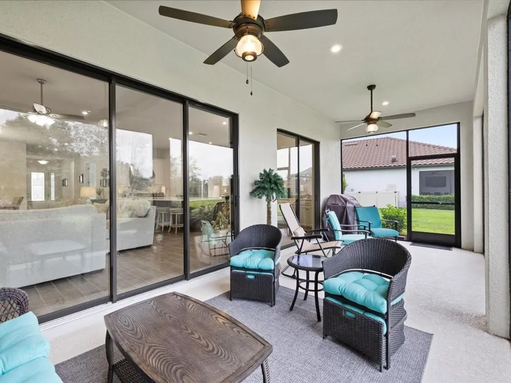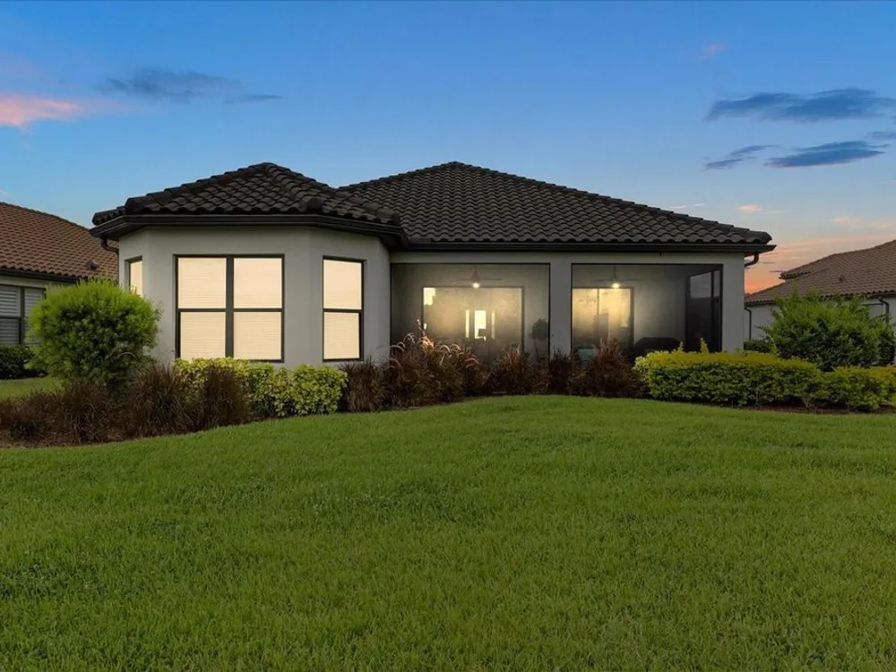 Welcome to this stunning custom-built 3BR/3BA + office home in the highly sought-after Esplanade at Starkey Ranch! Built in 2021, this immaculate residence offers a spacious open floor plan with 10’ ceilings, 8’ solid wood doors, upgraded tile flooring, and designer lighting throughout. The gourmet kitchen boasts quartz countertops, a Monogram appliance package ($10,000 upgrade), microwave/convection oven combo, farmhouse sink, large island with prep sink and knee wall cabinetry—ideal for entertaining. Enjoy flexibility with a dedicated office/craft room that can easily function as a 4th bedroom, and unwind in the luxurious primary suite featuring a sitting area with water views of the pond, custom closet shelving, and spa-style bath with dual rain shower heads. Smart-home ready with pre-wired internet, cable, central floor outlets, and pendant lighting options. Step outside to your screened lanai overlooking a premium water view lot—already pre-plumbed and pre-wired for a future pool. Additional upgrades include motorized with remote control shades on sliding doors out to lanai, hurricane shutters, a hurricane-rated front door and window, aluminum gutters, tandem garage, and a pre-wired smart-home package. Located in a vibrant, amenity-rich gated community close to parks, trails, and top-rated schools—this home truly has it all! Monthly HOA fee covers: Plant and tree replacement, landscaping, lawn care, sprinkler system, trash pickup, PLUS common areas, pool and amenity center.