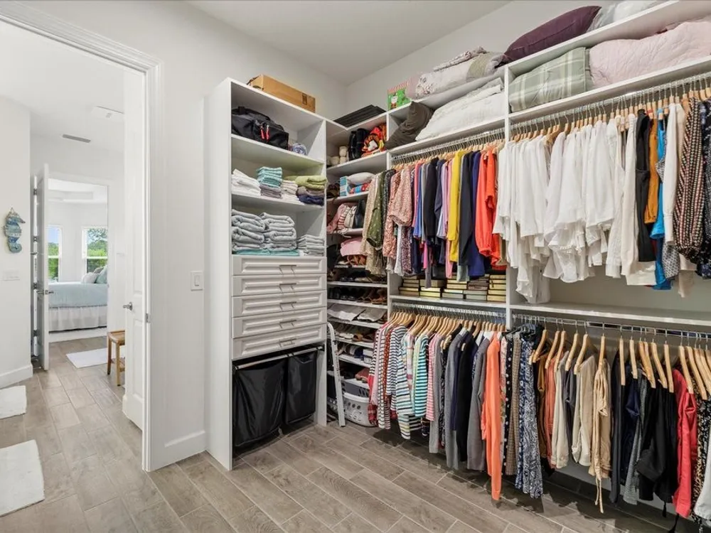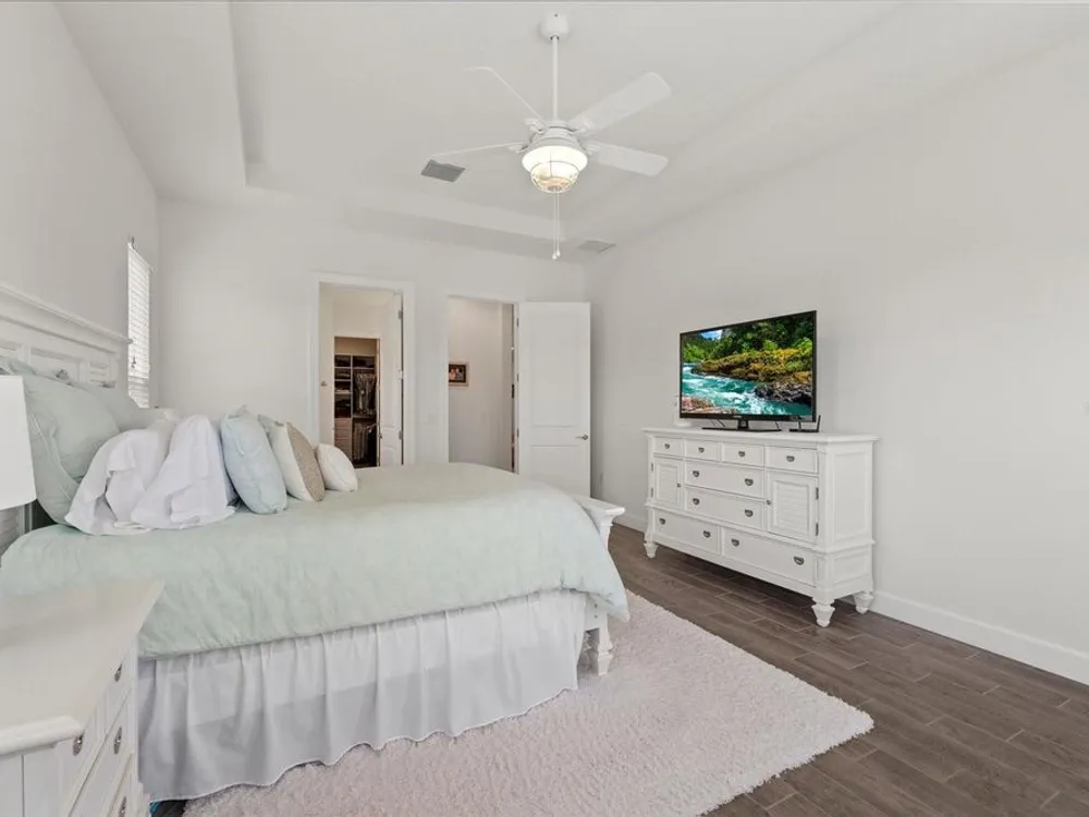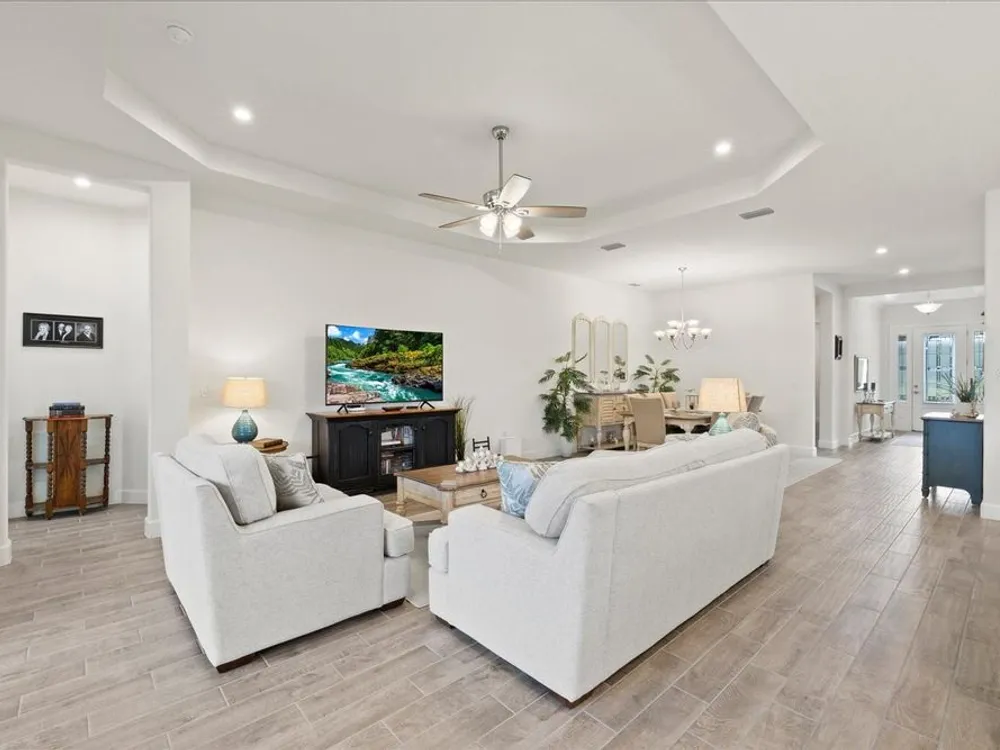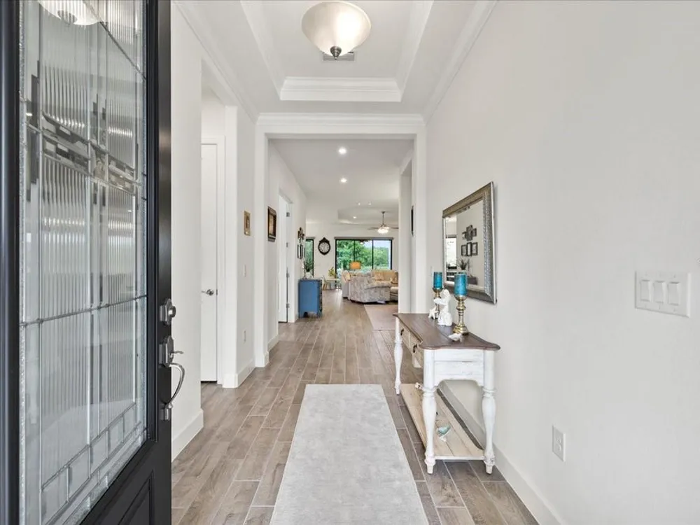 - Ceiling Fan(s), Crown Molding, Eat-in Kitchen, High Ceilings, Living/Dining Room, Open Floorplan, Solid Surface Counters, Solid-Wood Cabinets, Tray Ceiling(s), Walk-In Closet(s)