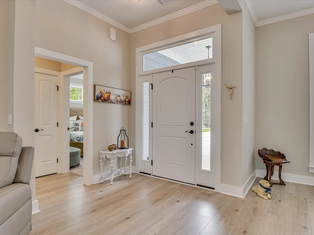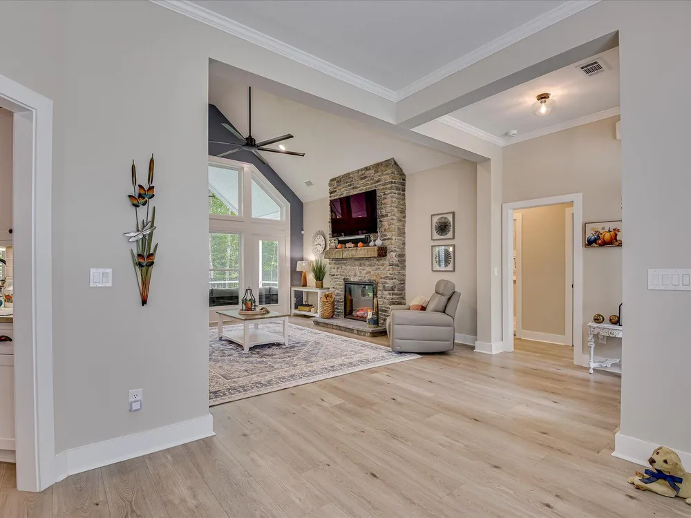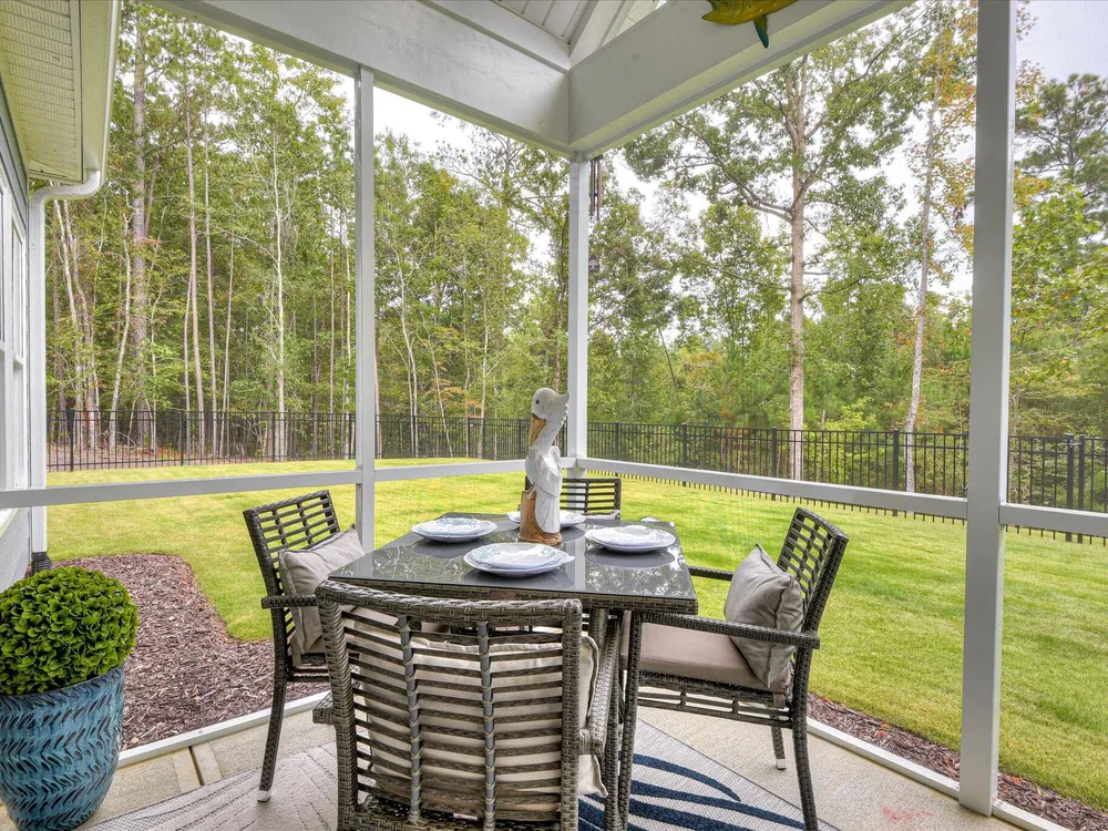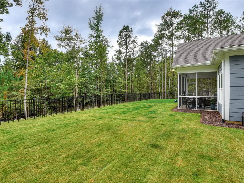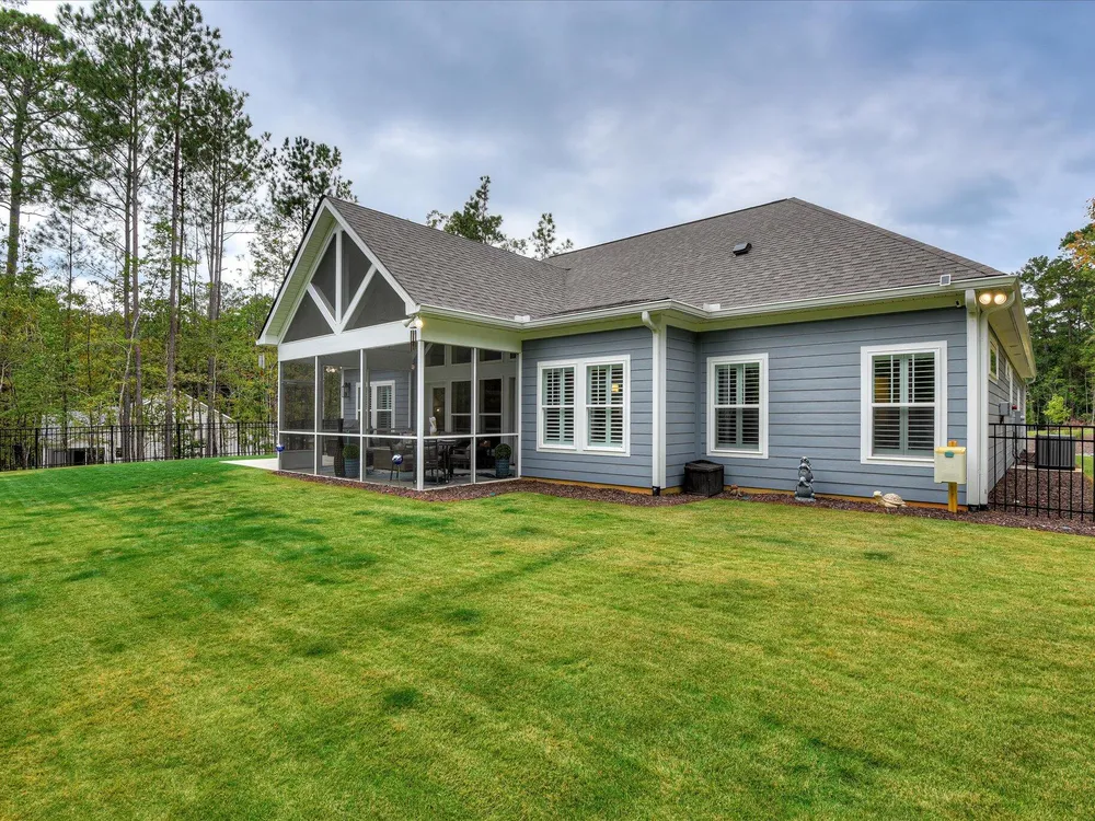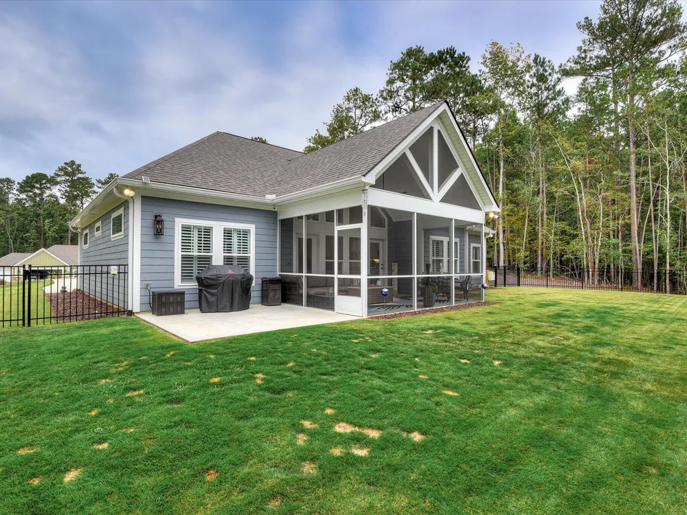Move in ready!! Exquisite Sanctuary Backing to Nature: 114 Cumberland Drive Experience unparalleled tranquility in this virtually new, custom residence, perfectly nestled in the heart of Savannah Lakes Village. Completed in 2025, this stunning Hamilton floor plan by Lee Builders, the village's longest-standing builder, offers a rare combination of sophisticated design and supreme privacy. This property is a sanctuary, backing onto over 50 acres of undisturbed, wooded property, ensuring enduring seclusion and a magnificent natural vista from nearly every window. Designer Finishes & Thoughtful Upgrades The interior of this three-bedroom, two-bath home is bright, cheerful, and meticulously upgraded: Elevated Living: The great room is a masterpiece of light and space, featuring a dramatic large window wall and an impressive electric fireplace with stone extending to the vaulted ceiling. Luxurious Appointments: Enjoy refined details including quartz countertops throughout, upgraded cabinetry with soft-close doors and drawers, and a chic kitchen backsplash. Subtle under-cabinet lighting adds to the sophisticated ambiance. High-End Flooring: The main living areas showcase durable, scratch-proof Cortec Luxury Vinyl Plank (LVP) flooring, while the laundry room and both bathrooms feature upgraded tile. The home boasts elegant plantation shutters throughout that will remain with the home. Climate & Comfort: Two striking 70-inch TroposAir ceiling fans are installed in the great room and the patio, ensuring comfort and air circulation year-round. An upgraded washer and dryer set are also included. Privacy and Outdoor Elegance Situated on a generous .40-acre lot, the exterior is designed for seamless indoor-outdoor living and functionality: Screened Oasis: The vaulted, extended screen patio is the perfect spot for relaxation, offering private views of the wooded acreage. Convenience & Security: The extended garage provides ample space, complemented by a full irrigation system and a fully fenced-in yard. For enhanced security and curb appeal, the home features spotlights on all four corners. This residence at 114 Cumberland Drive is the ultimate choice for the discerning buyer seeking a nearly maintenance-free, stylish home where privacy is paramount and every detail speaks to quality. We invite you to experience the elegant tranquility of this exclusive property.