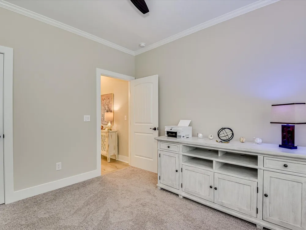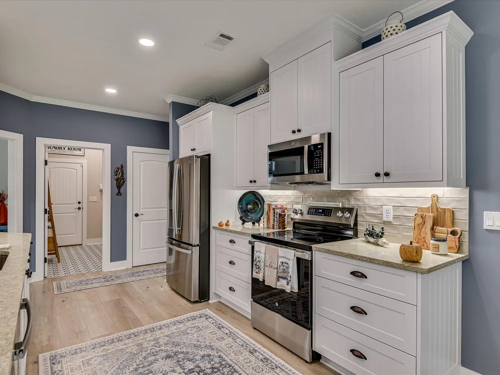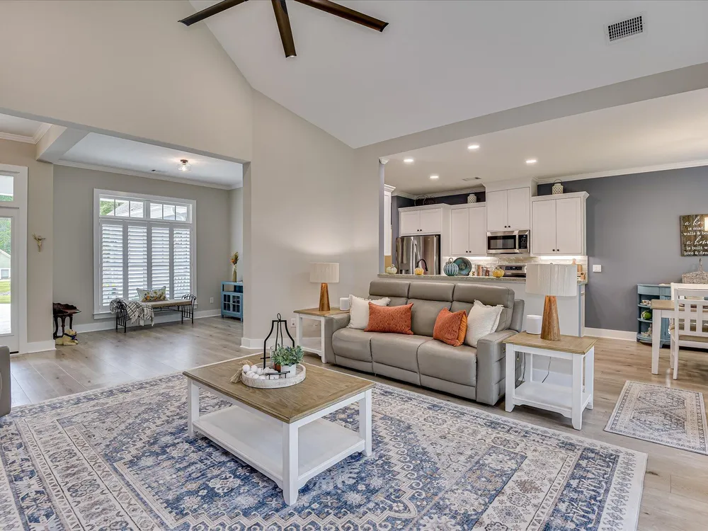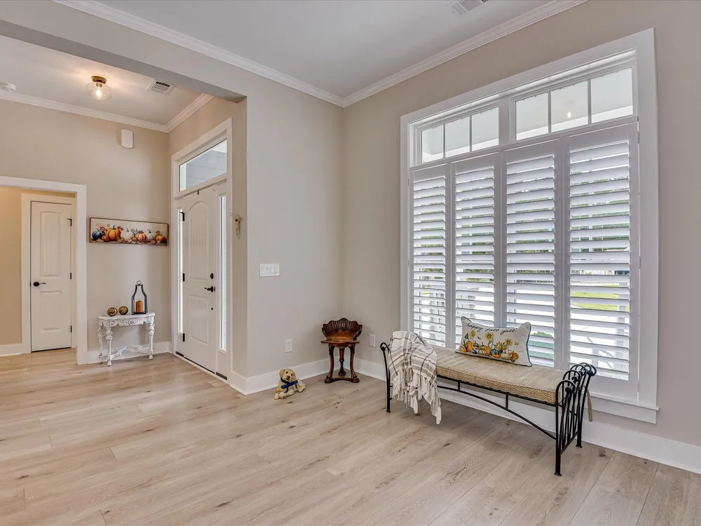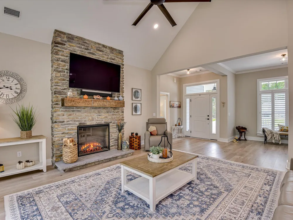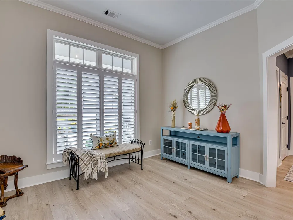 Move in ready!! Exquisite Sanctuary Backing to Nature: 114 Cumberland Drive Experience unparalleled tranquility in this virtually new, custom residence, perfectly nestled in the heart of Savannah Lakes Village. Completed in 2025, this stunning Hamilton floor plan by Lee Builders, the village's longest-standing builder, offers a rare combination of sophisticated design and supreme privacy. This property is a sanctuary, backing onto over 50 acres of undisturbed, wooded property, ensuring enduring seclusion and a magnificent natural vista from nearly every window. Designer Finishes & Thoughtful Upgrades The interior of this three-bedroom, two-bath home is bright, cheerful, and meticulously upgraded: Elevated Living: The great room is a masterpiece of light and space, featuring a dramatic large window wall and an impressive electric fireplace with stone extending to the vaulted ceiling. Luxurious Appointments: Enjoy refined details including quartz countertops throughout, upgraded cabinetry with soft-close doors and drawers, and a chic kitchen backsplash. Subtle under-cabinet lighting adds to the sophisticated ambiance. High-End Flooring: The main living areas showcase durable, scratch-proof Cortec Luxury Vinyl Plank (LVP) flooring, while the laundry room and both bathrooms feature upgraded tile. The home boasts elegant plantation shutters throughout that will remain with the home. Climate & Comfort: Two striking 70-inch TroposAir ceiling fans are installed in the great room and the patio, ensuring comfort and air circulation year-round. An upgraded washer and dryer set are also included. Privacy and Outdoor Elegance Situated on a generous .40-acre lot, the exterior is designed for seamless indoor-outdoor living and functionality: Screened Oasis: The vaulted, extended screen patio is the perfect spot for relaxation, offering private views of the wooded acreage. Convenience & Security: The extended garage provides ample space, complemented by a full irrigation system and a fully fenced-in yard. For enhanced security and curb appeal, the home features spotlights on all four corners. This residence at 114 Cumberland Drive is the ultimate choice for the discerning buyer seeking a nearly maintenance-free, stylish home where privacy is paramount and every detail speaks to quality. We invite you to experience the elegant tranquility of this exclusive property.