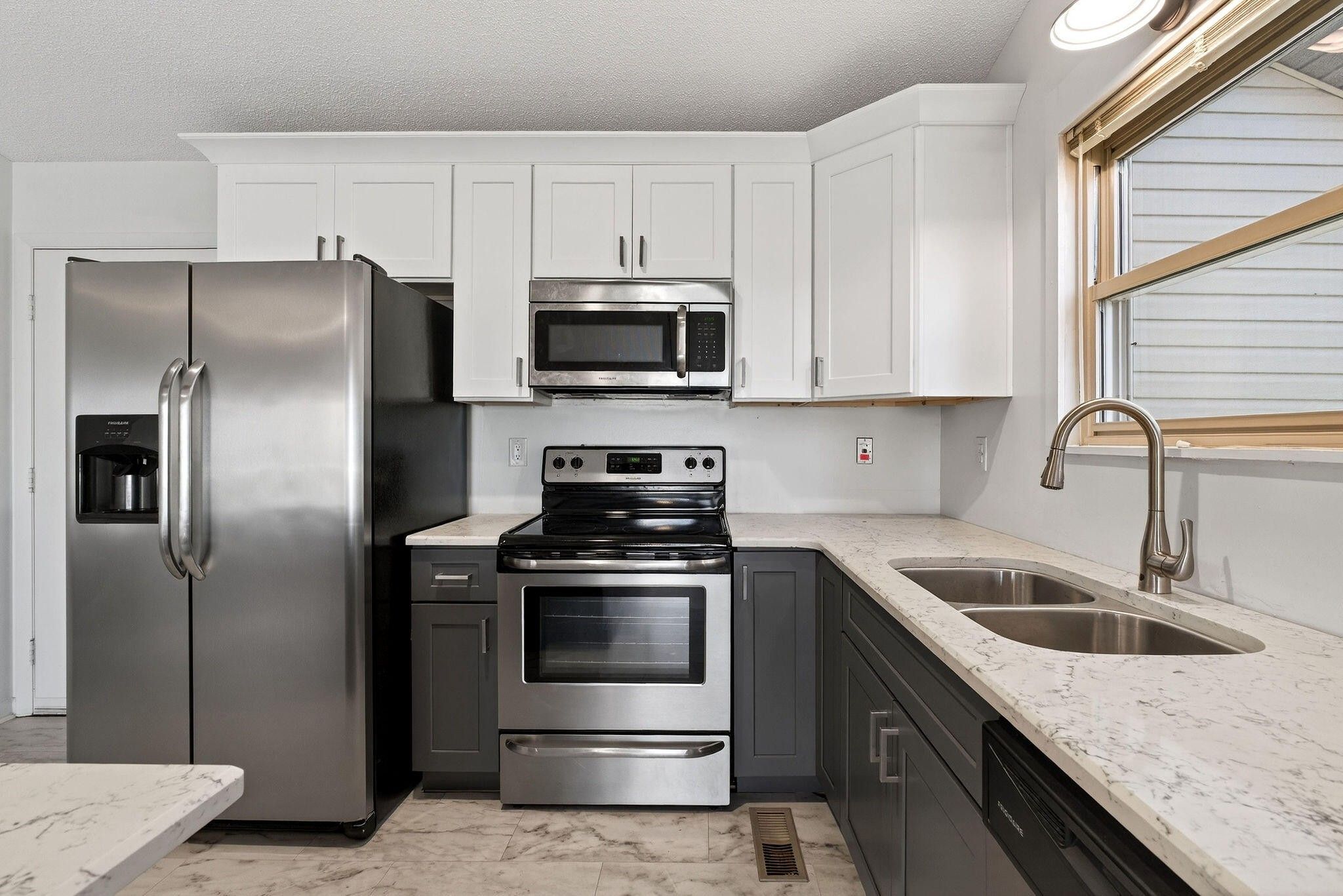 - Refrigerator, Microwave, Electric Range, Dishwasher