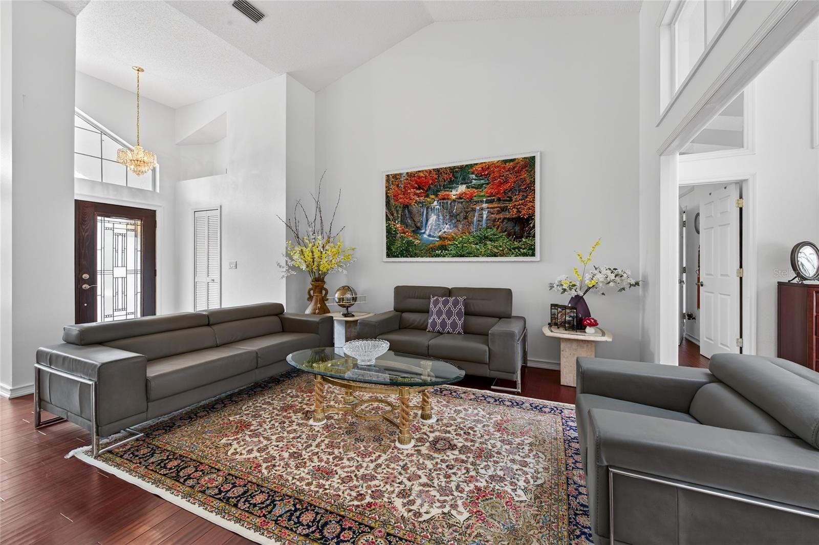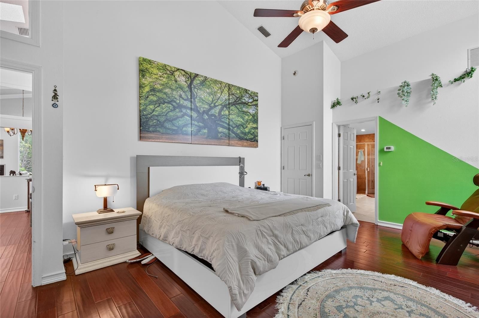 - Cathedral Ceiling(s), Ceiling Fan(s), Eat-in Kitchen, High Ceilings, Kitchen/Family Room Combo, Open Floorplan, Main Level Primary, Stone Counters, Vaulted Ceiling(s), Walk-In Closet(s)