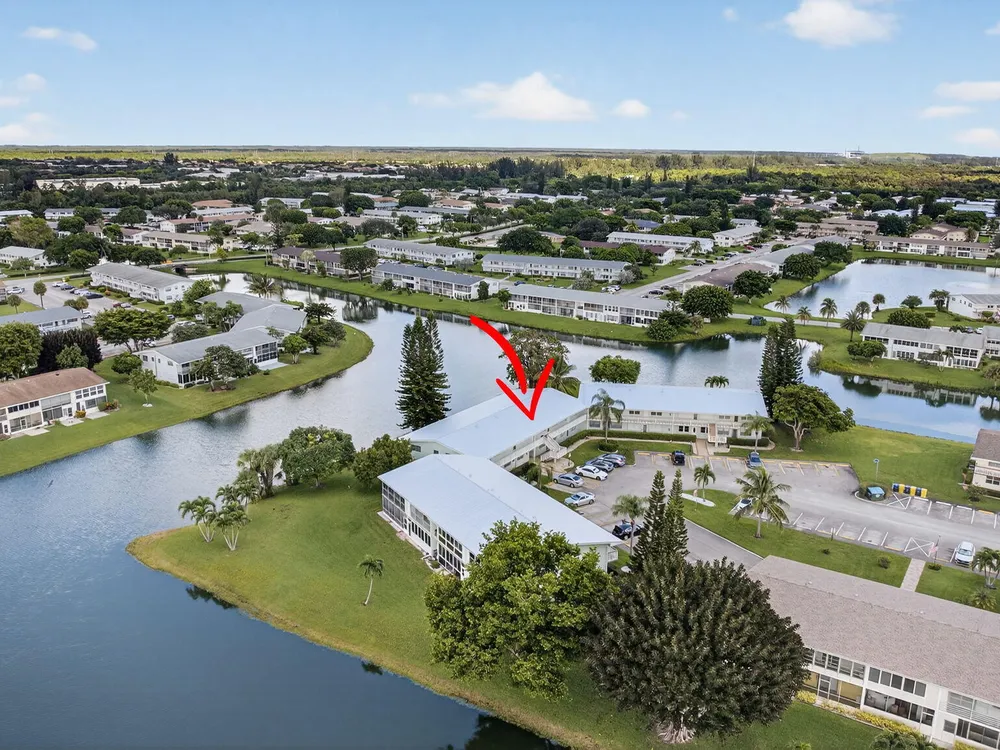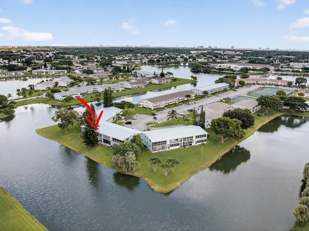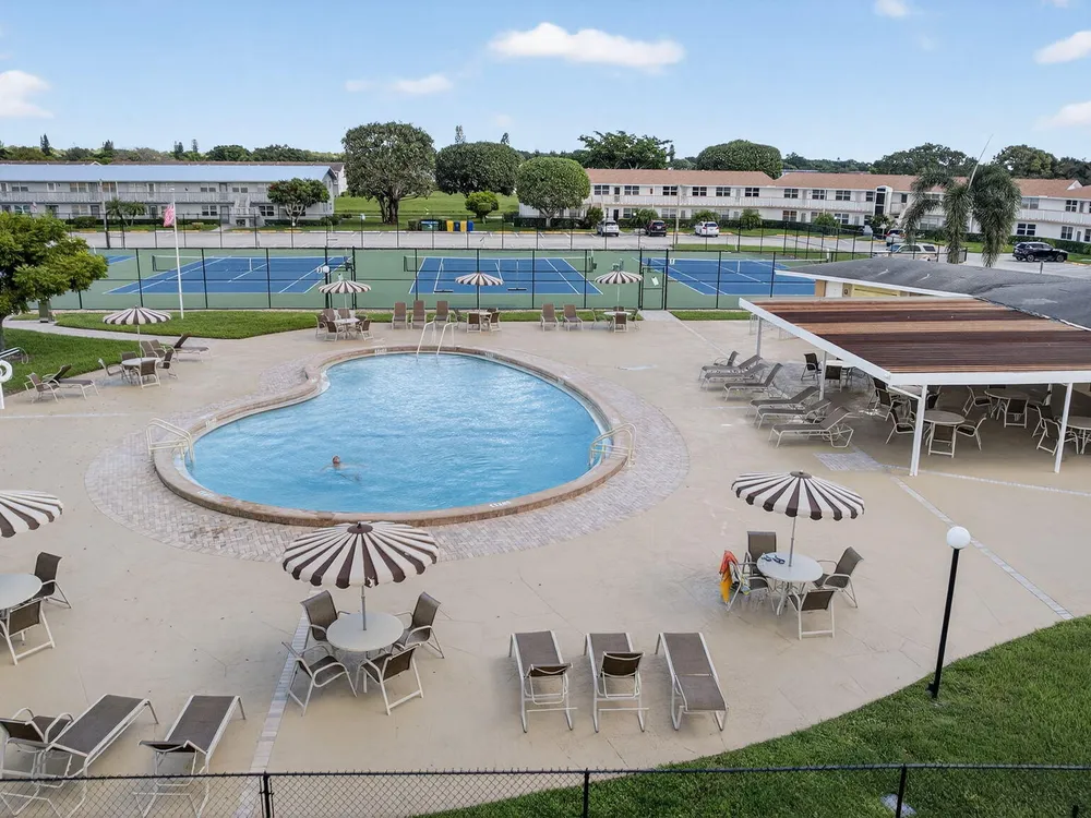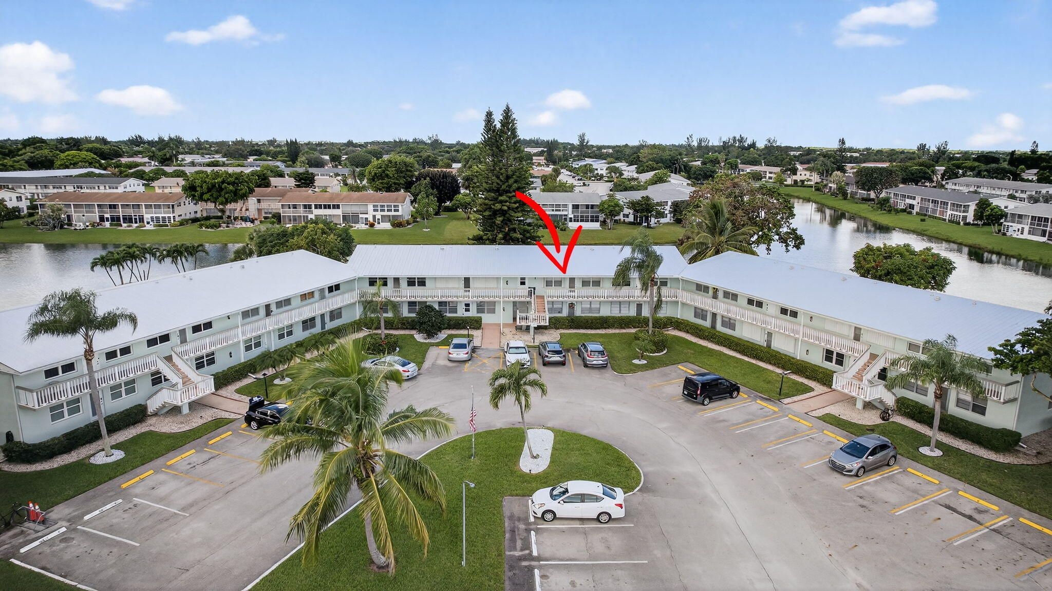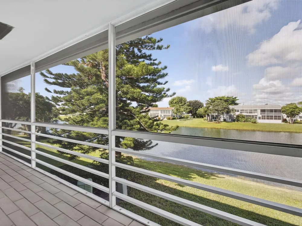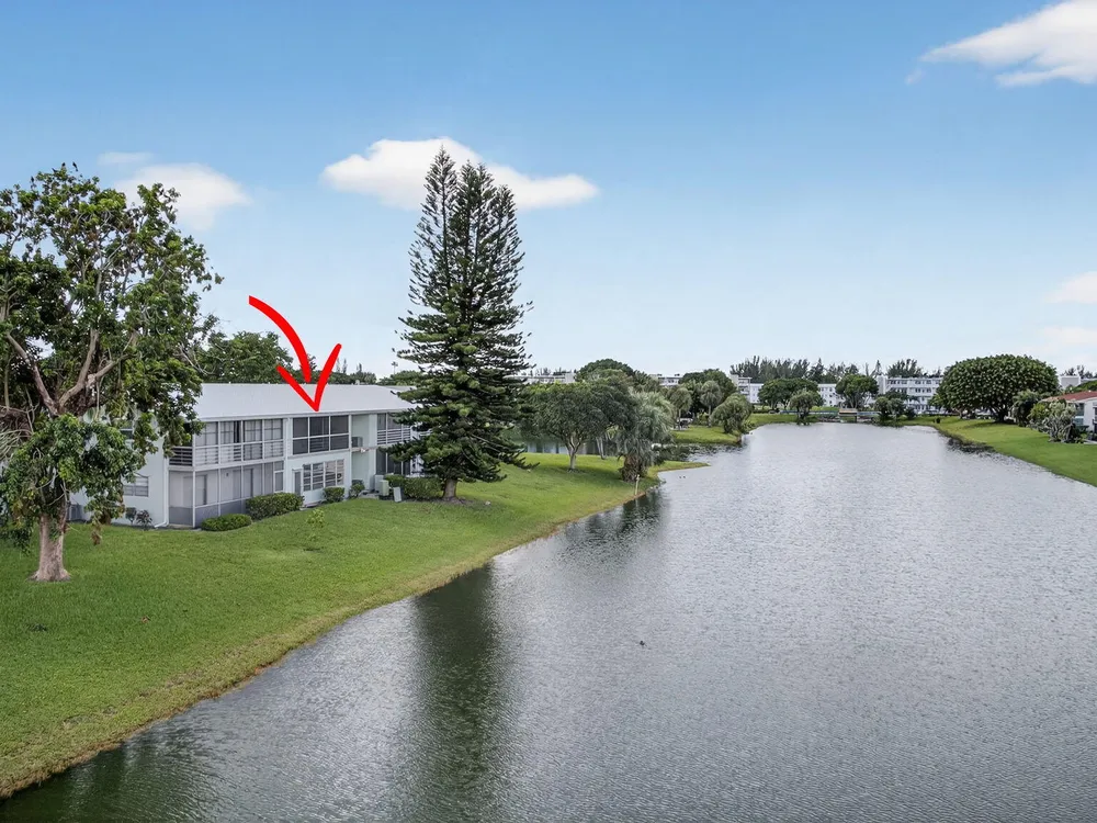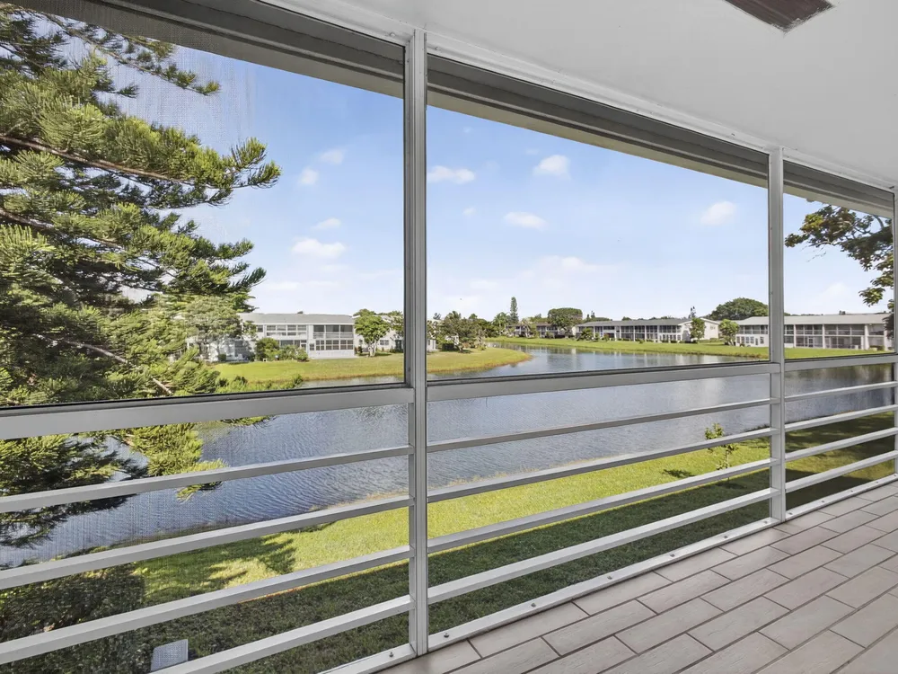 If you love the resort lifestyle, don't miss this light & bright 2 bed/2 bath 2nd-floor condo in Century Village(55+). Enjoy stunning water views from the large balcony off both bedrooms. Located in the desirable Somerset section near the pool & tennis courts, with a newer roof & strong reserves. Features include diagonal white tile throughout, white kitchen & bath cabinets, roomy closets, and laundry right outside your door. Assigned parking plus plenty of guest spots & community bus service. The main clubhouse offers a theater, indoor & outdoor pools, fitness center with classes, tennis, pickleball, bocce, clubs & more. Two guarded gates, 24-hr security patrol, and hurricane shutters add peace of mind. Centrally located near shops, dining, airport, beaches & downtown.