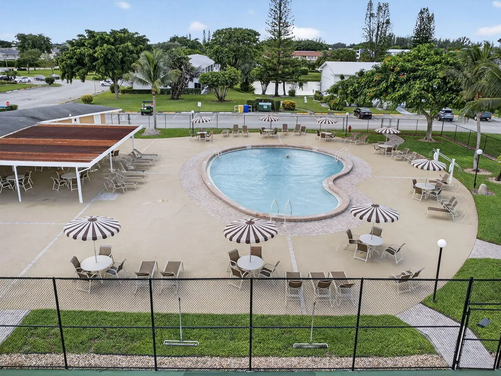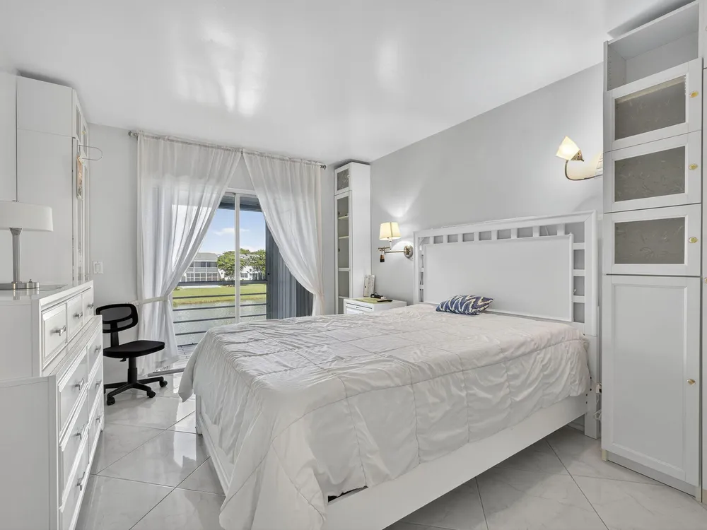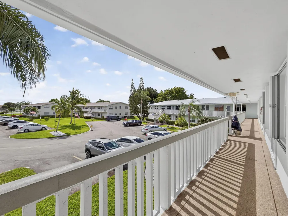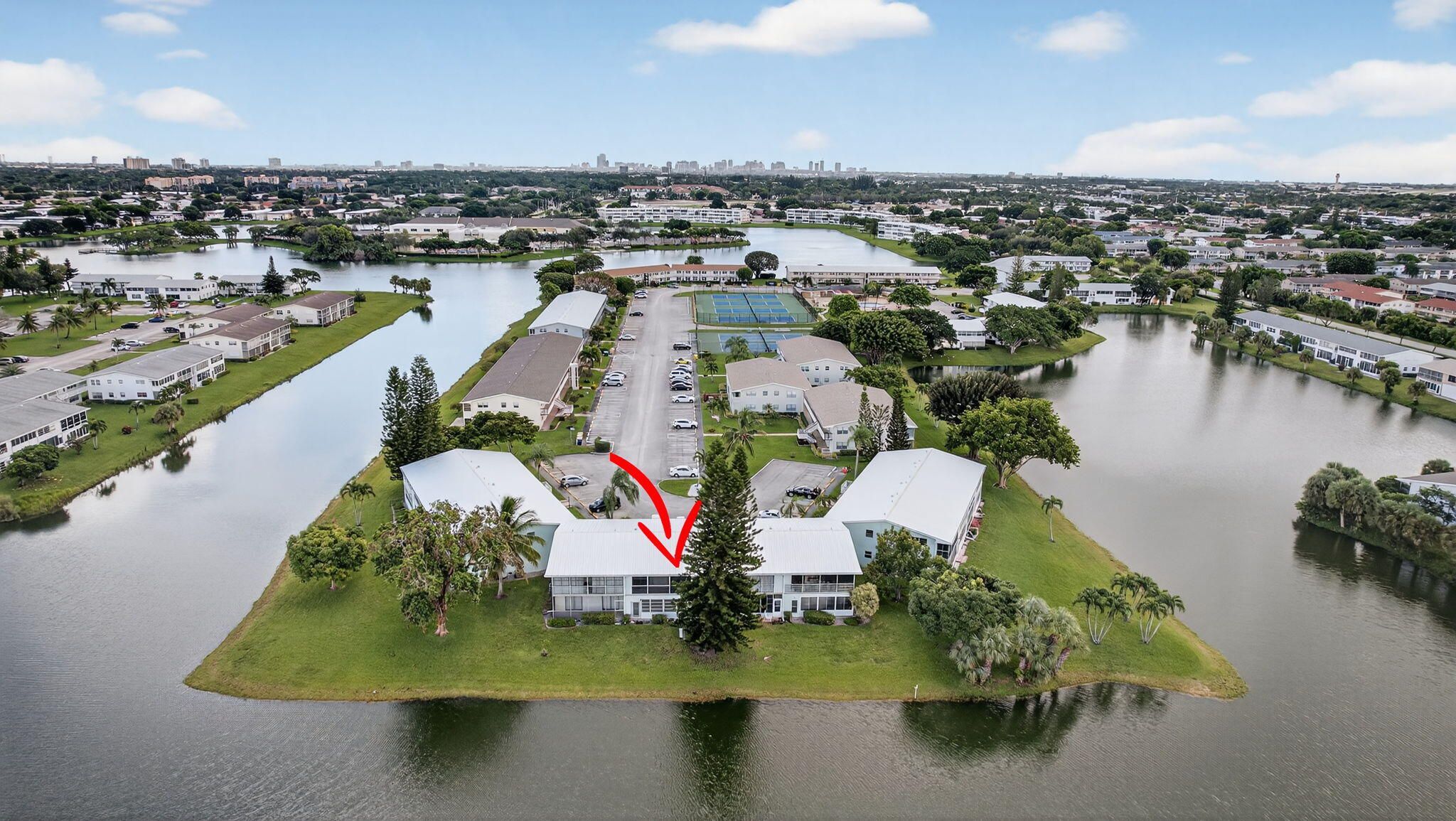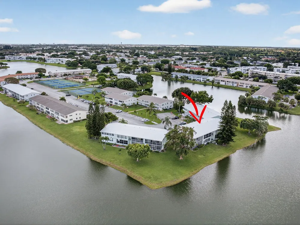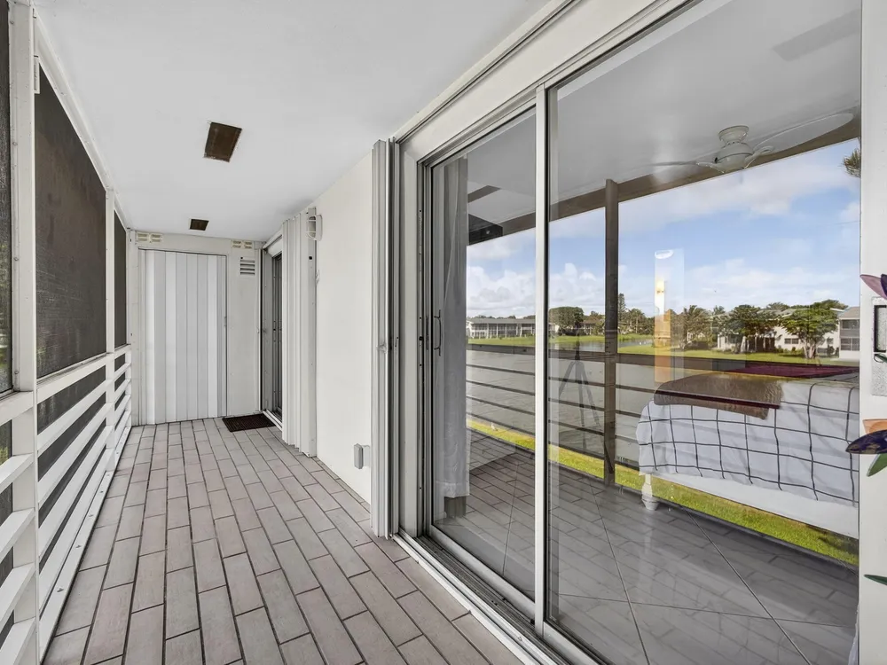 If you love the resort lifestyle, don't miss this light & bright 2 bed/2 bath 2nd-floor condo in Century Village(55+). Enjoy stunning water views from the large balcony off both bedrooms. Located in the desirable Somerset section near the pool & tennis courts, with a newer roof & strong reserves. Features include diagonal white tile throughout, white kitchen & bath cabinets, roomy closets, and laundry right outside your door. Assigned parking plus plenty of guest spots & community bus service. The main clubhouse offers a theater, indoor & outdoor pools, fitness center with classes, tennis, pickleball, bocce, clubs & more. Two guarded gates, 24-hr security patrol, and hurricane shutters add peace of mind. Centrally located near shops, dining, airport, beaches & downtown.