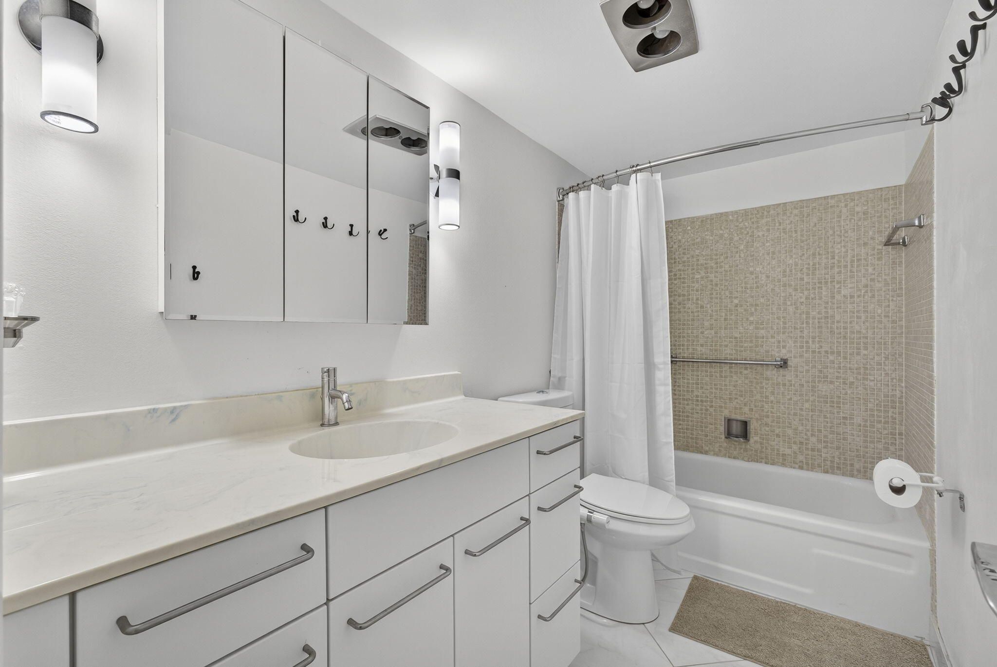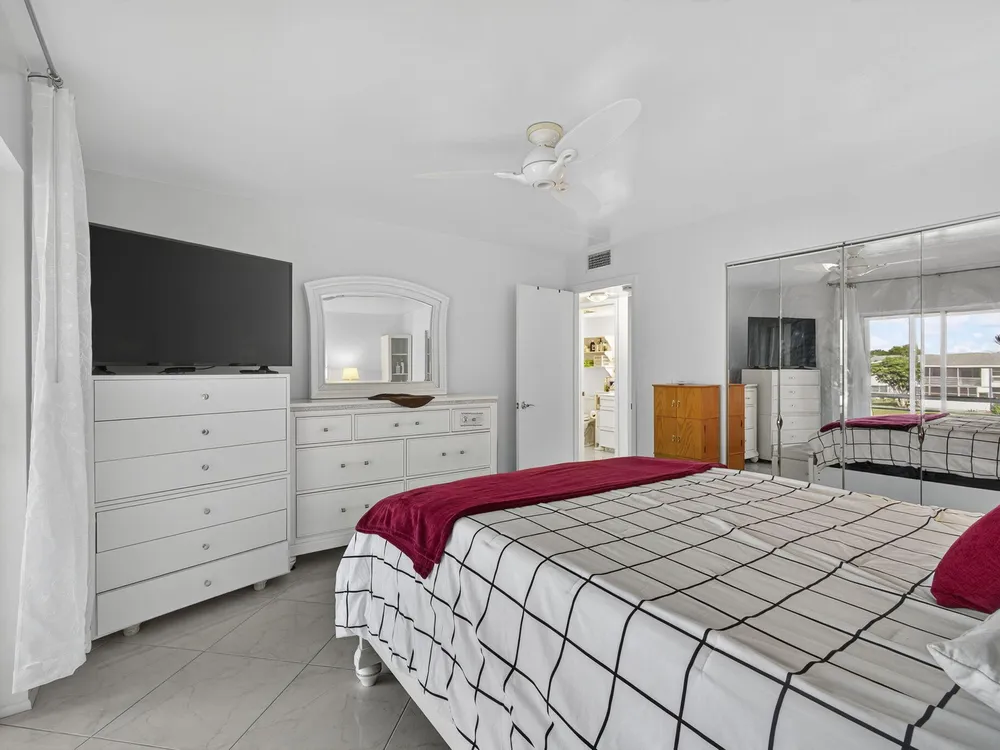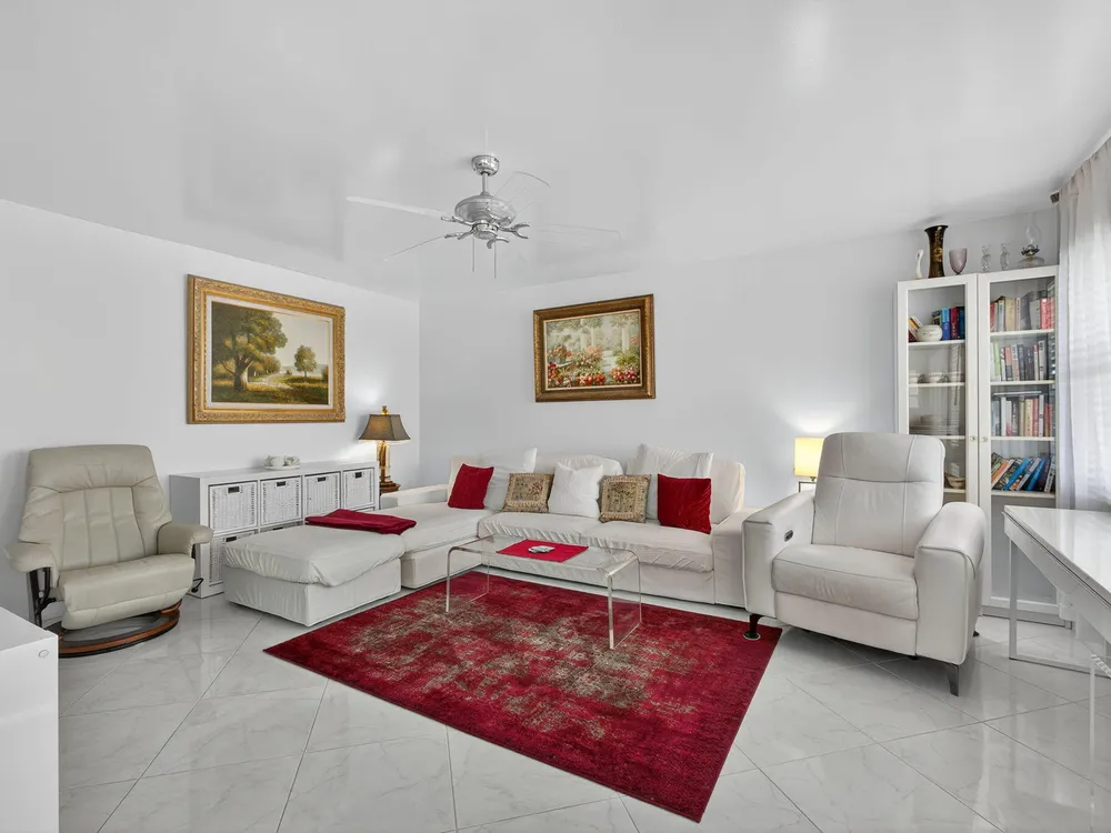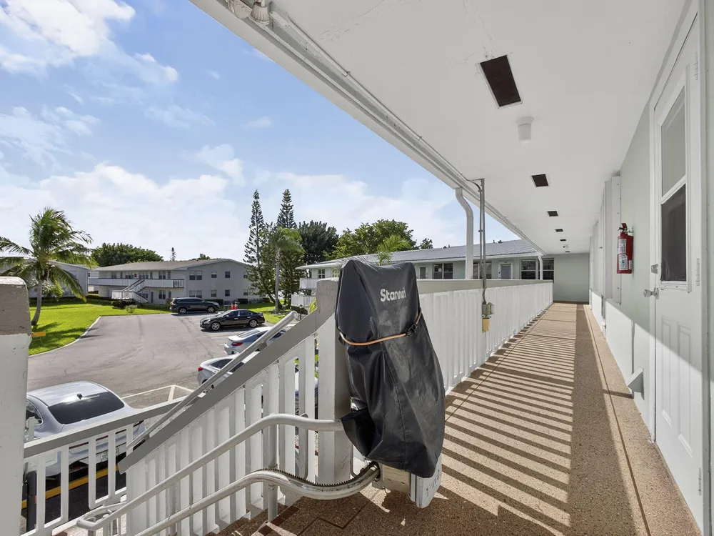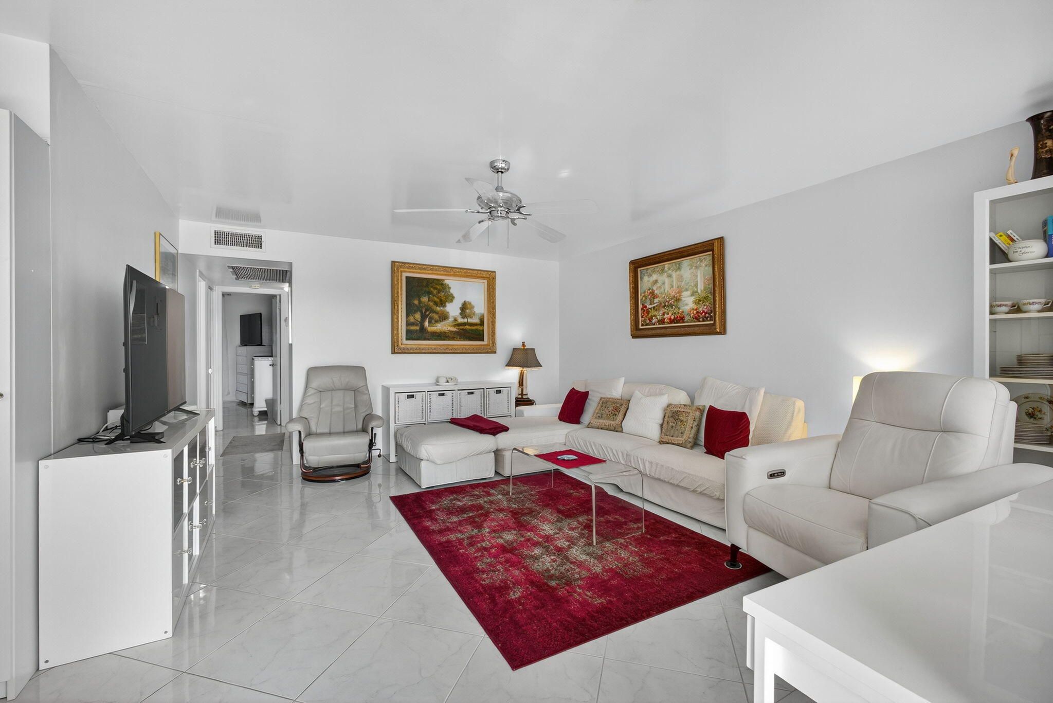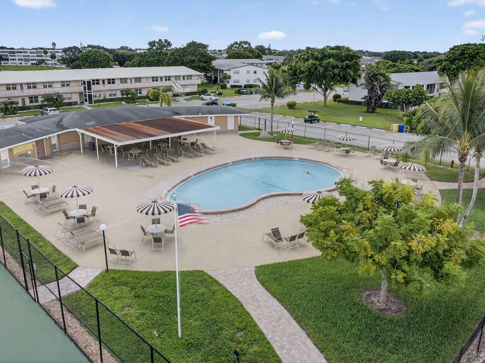 If you love the resort lifestyle, don't miss this light & bright 2 bed/2 bath 2nd-floor condo in Century Village(55+). Enjoy stunning water views from the large balcony off both bedrooms. Located in the desirable Somerset section near the pool & tennis courts, with a newer roof & strong reserves. Features include diagonal white tile throughout, white kitchen & bath cabinets, roomy closets, and laundry right outside your door. Assigned parking plus plenty of guest spots & community bus service. The main clubhouse offers a theater, indoor & outdoor pools, fitness center with classes, tennis, pickleball, bocce, clubs & more. Two guarded gates, 24-hr security patrol, and hurricane shutters add peace of mind. Centrally located near shops, dining, airport, beaches & downtown.