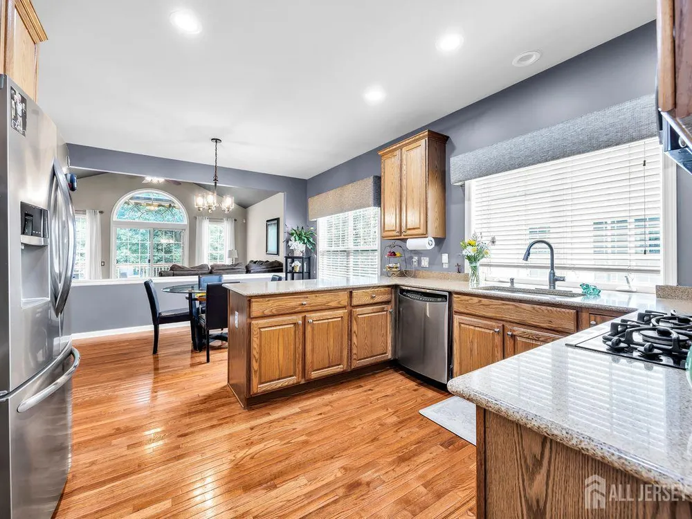 Step into luxury living with this Stunning Brighton model home, offering an inviting blend of comfort and style. Featuring 3 spacious bedrooms and 3 full baths with upgraded cabinets and a Freshly painted DECK, that overlooks your private wooded yard. This beautifully maintained Brighton model is designed to accommodate all your needs. This home impresses from the outset. As you enter, you'll be greeted by sparkling wood floors that flow seamlessly throughout the first floor. A spacious Primary Bedroom with a large Closet and Primary Bathroom with an oversized soaking tub. The bright and airy basement with Sliding Doors, is perfect for an additional living space or home office, with an abundance of closets as well as a Large storage room providing ample space for organization. Gas grill hook up outside. The upgraded kitchen, boasts 42 cabinets, elegant Corian countertops, Stainless Steel kitchen appliances, ensuring modern convenience & efficiency. Located in Somerset Run, a 55+ gated community. Residents enjoy unparalleled luxury amenities, including indoor/outdoor swimming pools, hot Jacuzzi tub, fitness center, hot sauna room, multi-purpose courts, bocce court, pickle ball, ballroom, & game room. Additionally, the community features a 25,000 SQFT clubhouse, offering ample spaces for recreation and socializing with neighbors in a vibrant environment.