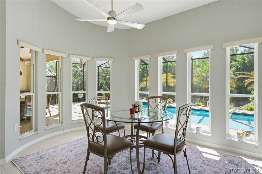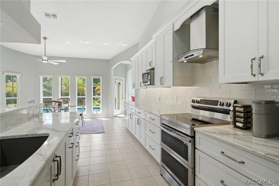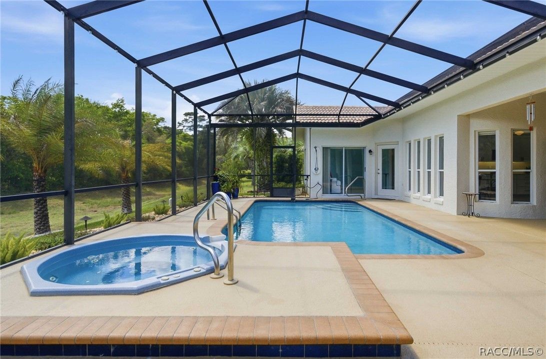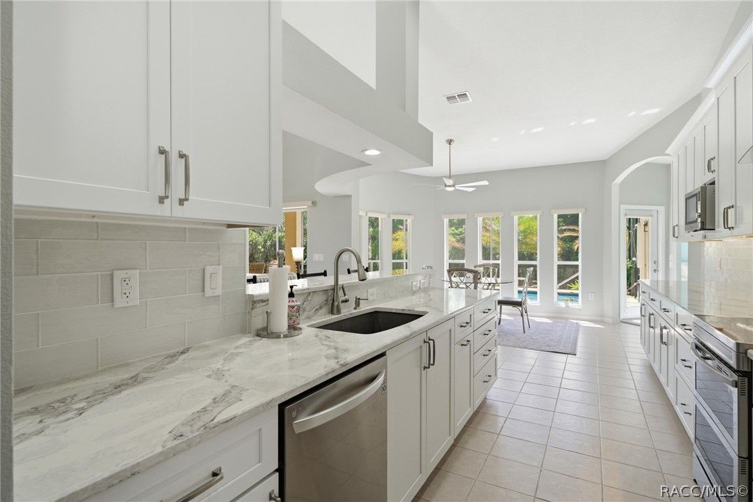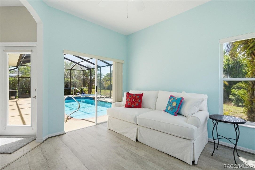 This Solar-Powered Energy efficient Pool-Home in Terra Vista is ready for you! 3 Bedrooms, Den, 3 Baths, 2 Oversize Car Garage, on private greenbelt & surrounded by beautiful homes within short distance to the Activity Center. Terra Vista is a Premier Golf resort Community. Designed for discerning buyers seeking year-round sunshine & vibrant lifestyle. Everyone will envy the incredible Savings of the FULLY PAID Whole House Solar System: owners currently ENJOY A $30 A MONTH ENERGY BILL! Several UPDATES done in the last 3 years, NEW Kitchen & Baths. NEW LVP Flooring. NEW Pool Equipment & NEW Screens to the Pool Cage. Painted inside-out, NEW Garage floor coated w/Epoxy finish, Updated Lighting & Newly cleaned Roof. This is such great Value as you truly can't build this home for this price! Designed w/Open Great Room, Dining Room & Kitchen is entertainer’s delight, and it doesn’t disappoint. The Gourmet Kitchen shines with White custom soft-close Cabinetry, ample storage, Quartz Counter, Stainless Appliances, & 2 Pantries. Tile flooring & LVP Flooring for easy maintenance. This Home is bright & cheerful, the POCKET GLASS DOORS bring the outside in! Step into your private backyard oasis, the Lanai & large screen enclosure, equipped w/Summer Kitchen & outside Shower. Picture yourself enjoying the inviting Salt-Water/Heated Pool & Spa while sipping your favorite drink to truly experience Paradise! This home is adjacent to a quiet/most desired greenbelt enjoyed by few homes in Terra Vista for a quiet-private backyard. Plus Wi-Fi control of some home systems, making it easy for you to manage from the comfort of your chair. The Master Suite, offers a spa-like retreat w/a newly renovated Bath w/walk-in shower, His & Her Vanities w/Granite Countertops, Make-up Counter, custom Lighting & updated finishes. 2 Guest Bedrooms & Den are in the opposite side of the home, Guest Bathrooms are beautifully renovated. The Den is used as Flex-Office/4th Bedroom for work or play. Den & 3rd Bath are in the back of the home for easy access to the Pool area. The Inside Laundry Room is ample w/nice storage. The Angled-Oversized garage w/storage for golf cart, or workshop. The Tile Roof was just soft washed, offering peace of mind. This home has been professionally landscaped w/floral plantings & enhanced by LED landscape lighting that beautifully illuminates both the front & back of the property, adding a welcoming warmth, and curb appeal day and night. Enjoy Terra Vista's resort-style living Amenities. Dancing at the Tiki-Bar, playing golf, pickleball, tennis, staying active at the fitness center, spa, sauna, restaurants, trails, & social activities. You can also, Explore Citrus County restaurants, shops & its Nature Playground w/biking, hiking, kayaking, boating, fishing, snorkeling, cave diving & swimming w/manatees. The new Suncoast Parkway extension makes commuting to Tampa & Orlando easier than ever! If you’re looking for the perfect blend of luxury, comfort & community, this beautiful home is waiting for you!