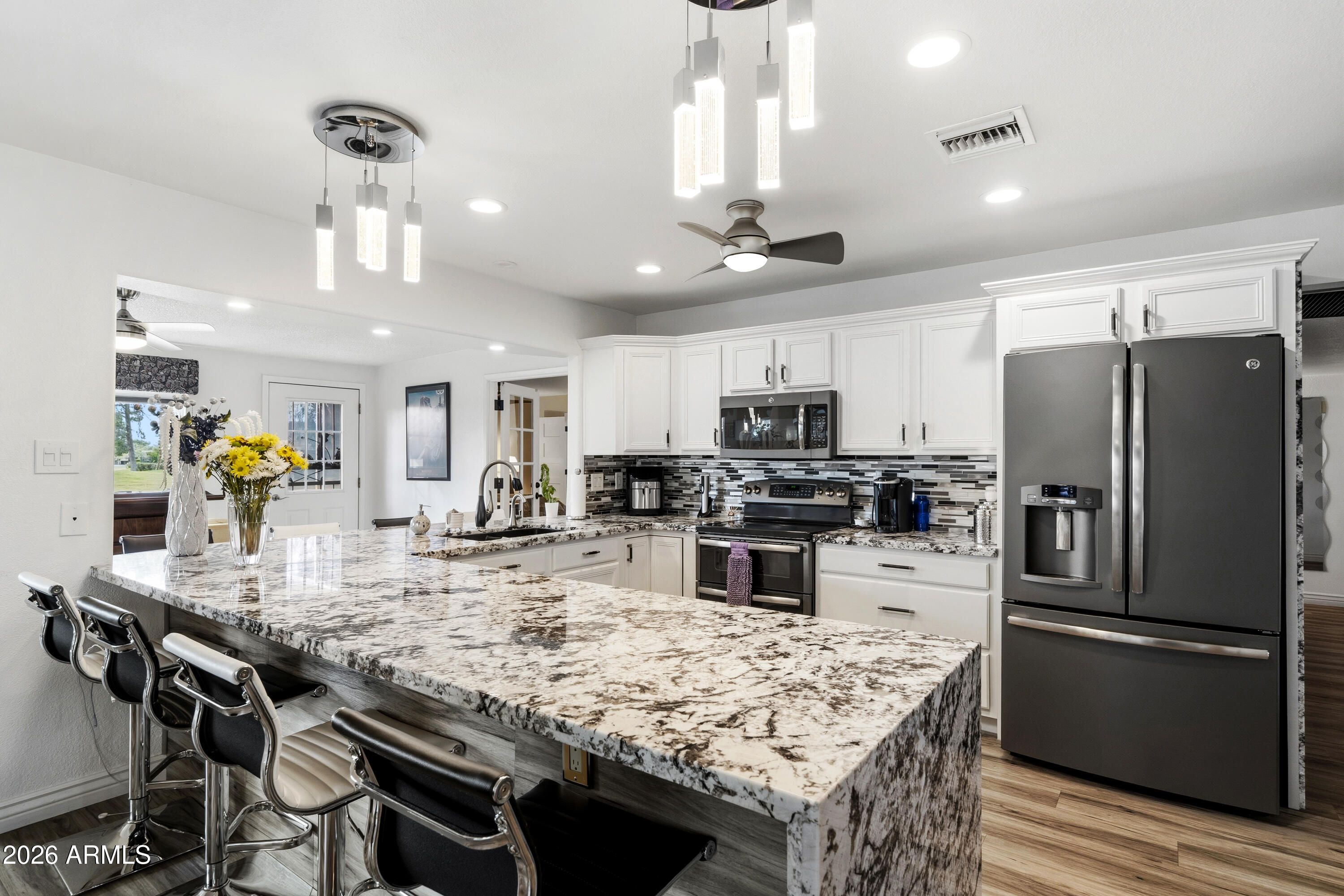- Walk-in Pantry, Granite Counters, Double Vanity, Eat-in Kitchen, Breakfast Bar, Furnished(See Rmrks), No Interior Steps, Kitchen Island, Pantry, 3/4 Bath Master Bdrm