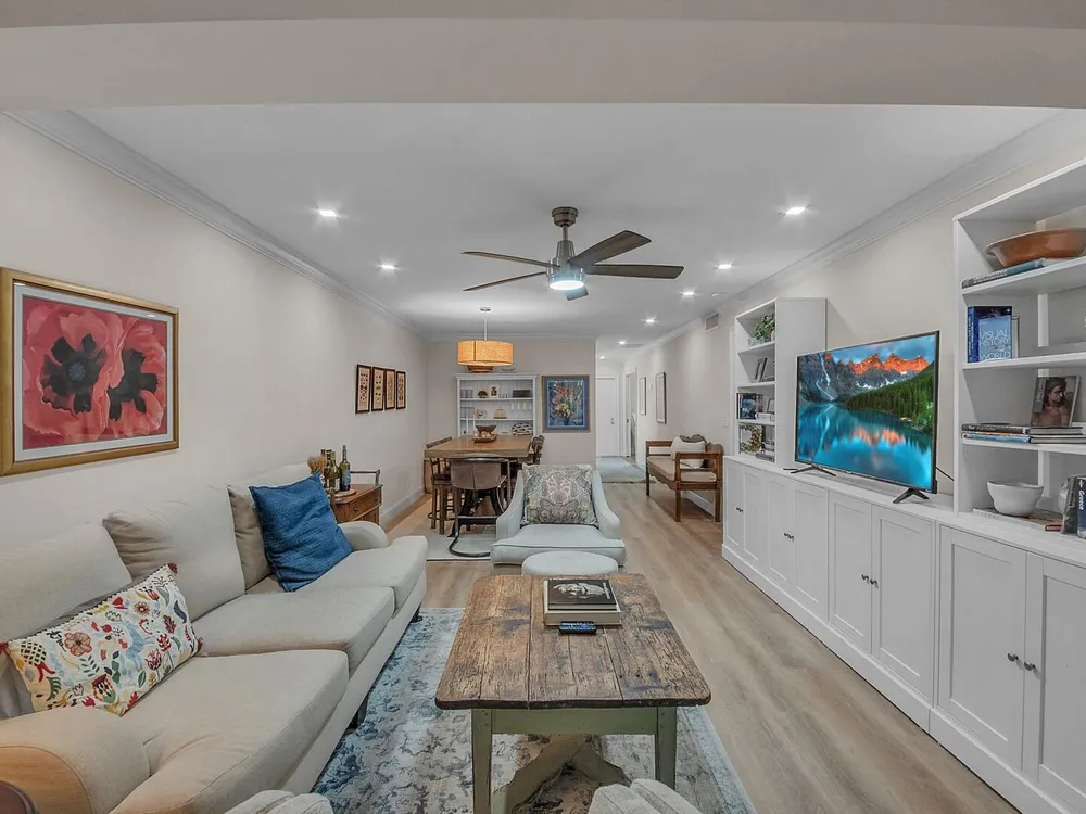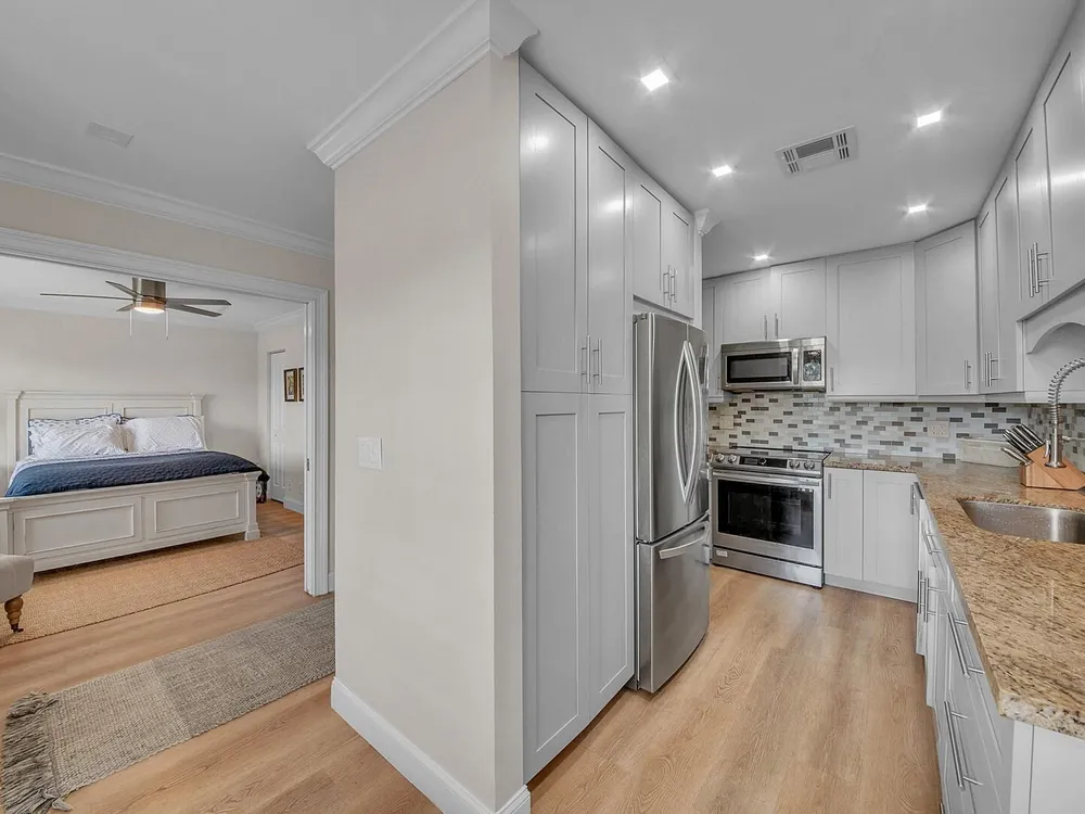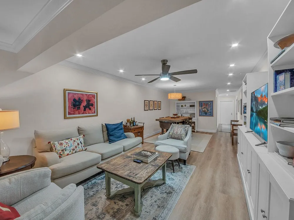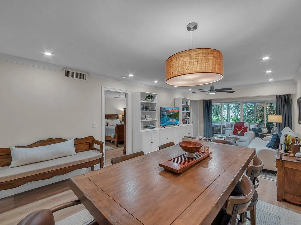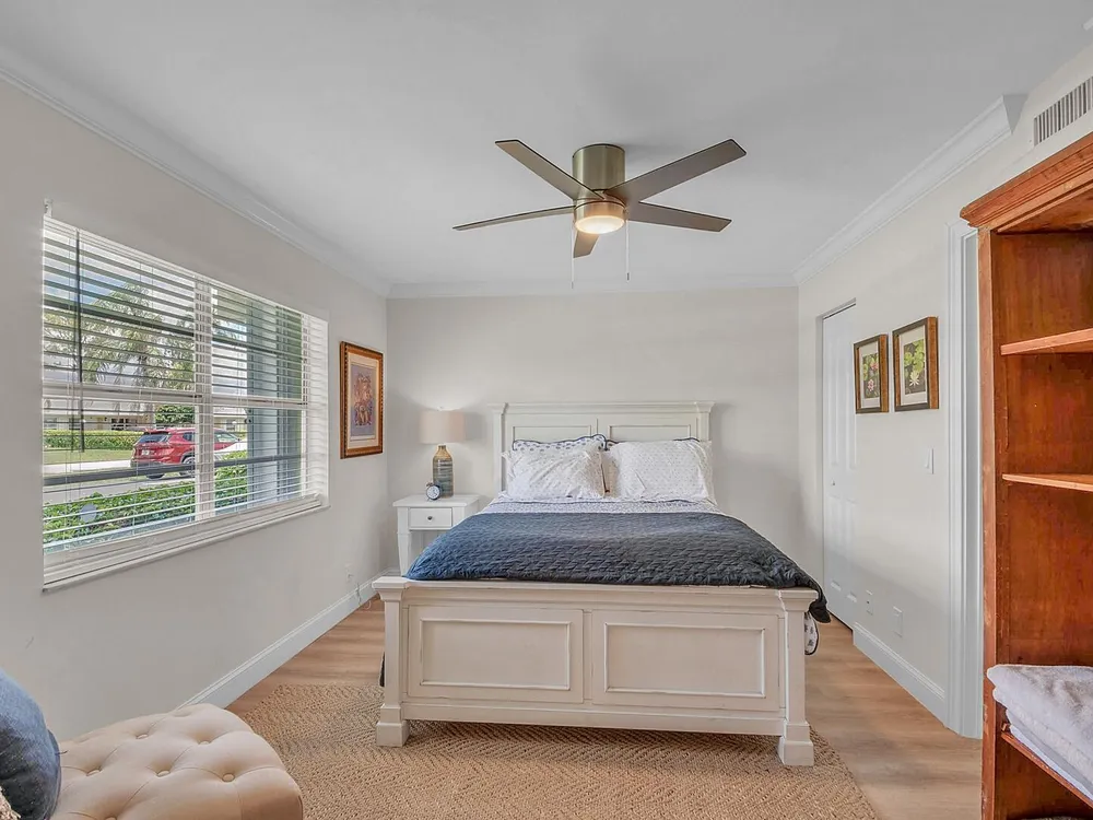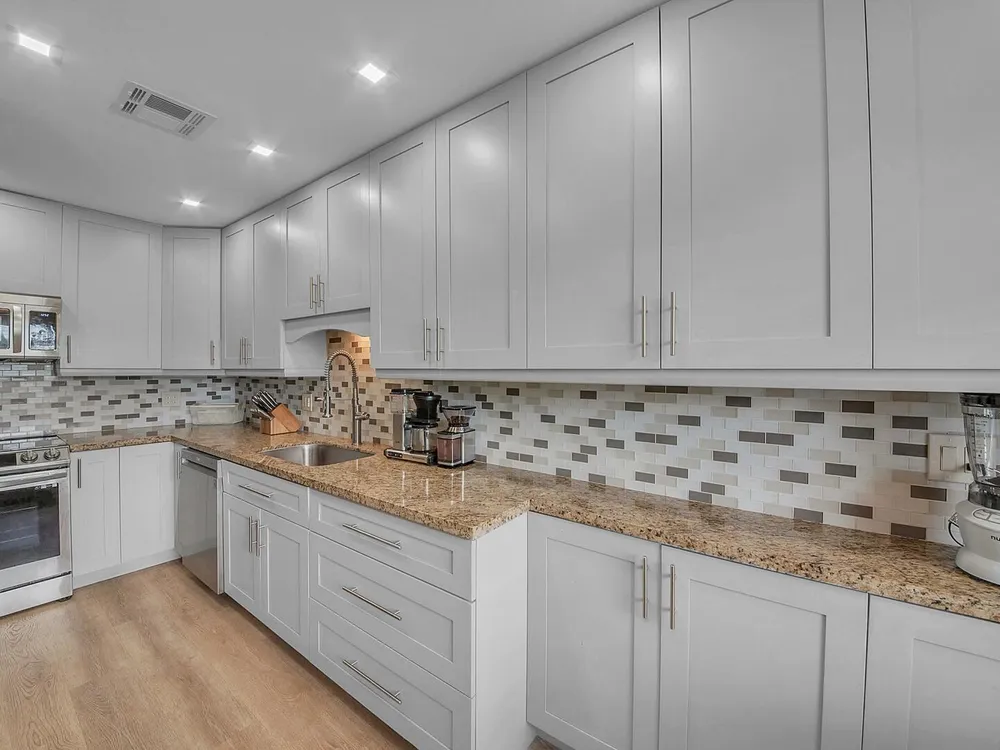 You're going to love this recently remodeled first floor 2BR/2BA condo in the meticulously-maintained 55+ community Pines Of Delray. Twice the amount of cabinet space you usually find in a condo of this size, the new kitchen boasts stainless appliances and lots of granite counter space with under cabinet lighting and self-closing cabinet doors. There is recessed lighting throughout the living spaces, crown molding in every room, and pergola wood floors. A beautiful built-in entertainment center with lots of storage space defines the living room, leading out to a large screened porch with mature tropical flora and fauna offering loads of privacy. Two walk-in closets in the large MBR, and a second en-suite bedroom offers a perfect place for guests, a home office or den.