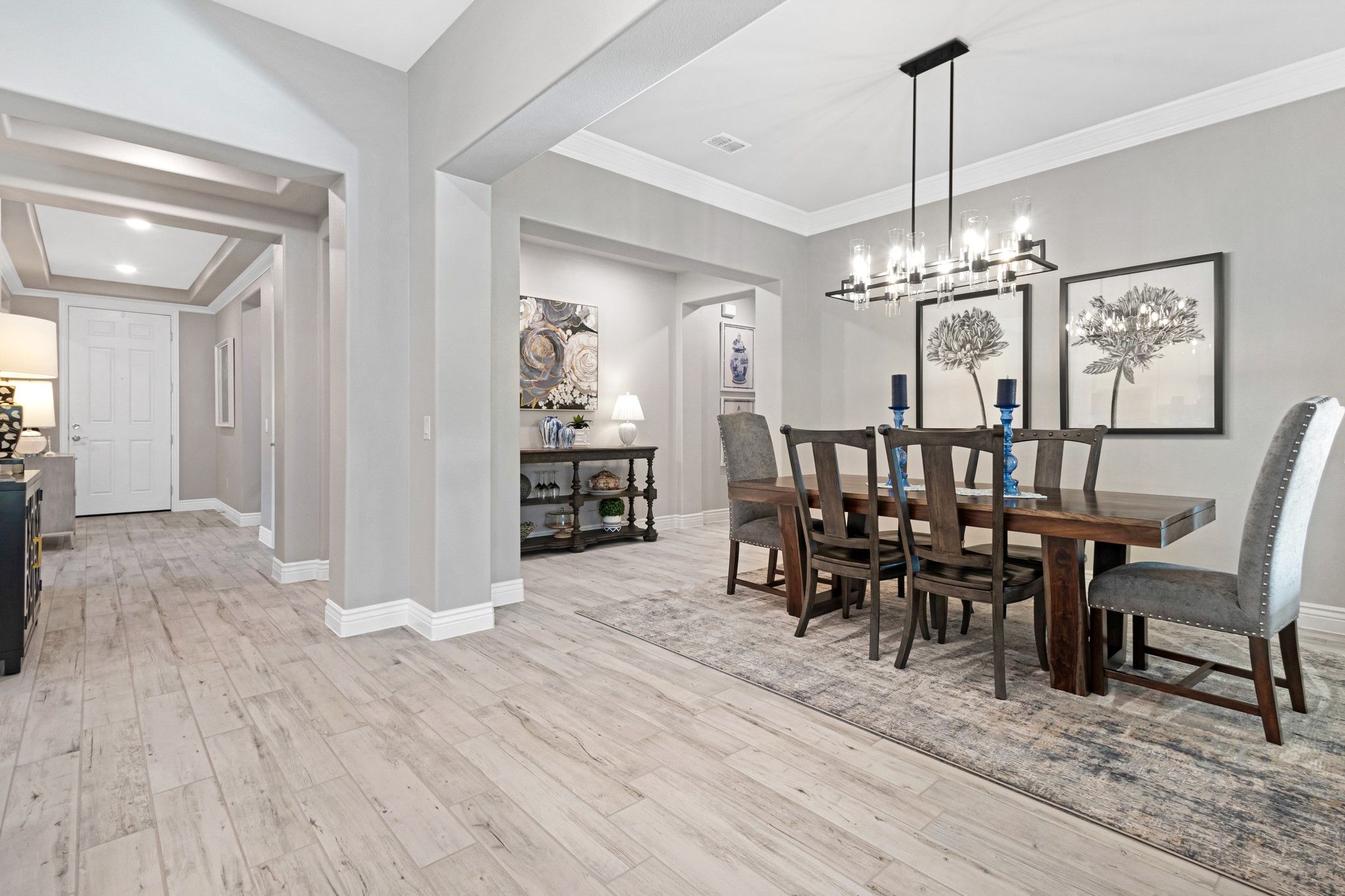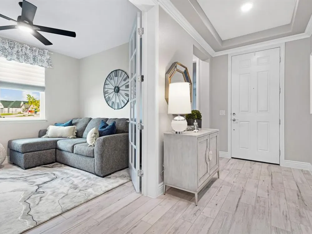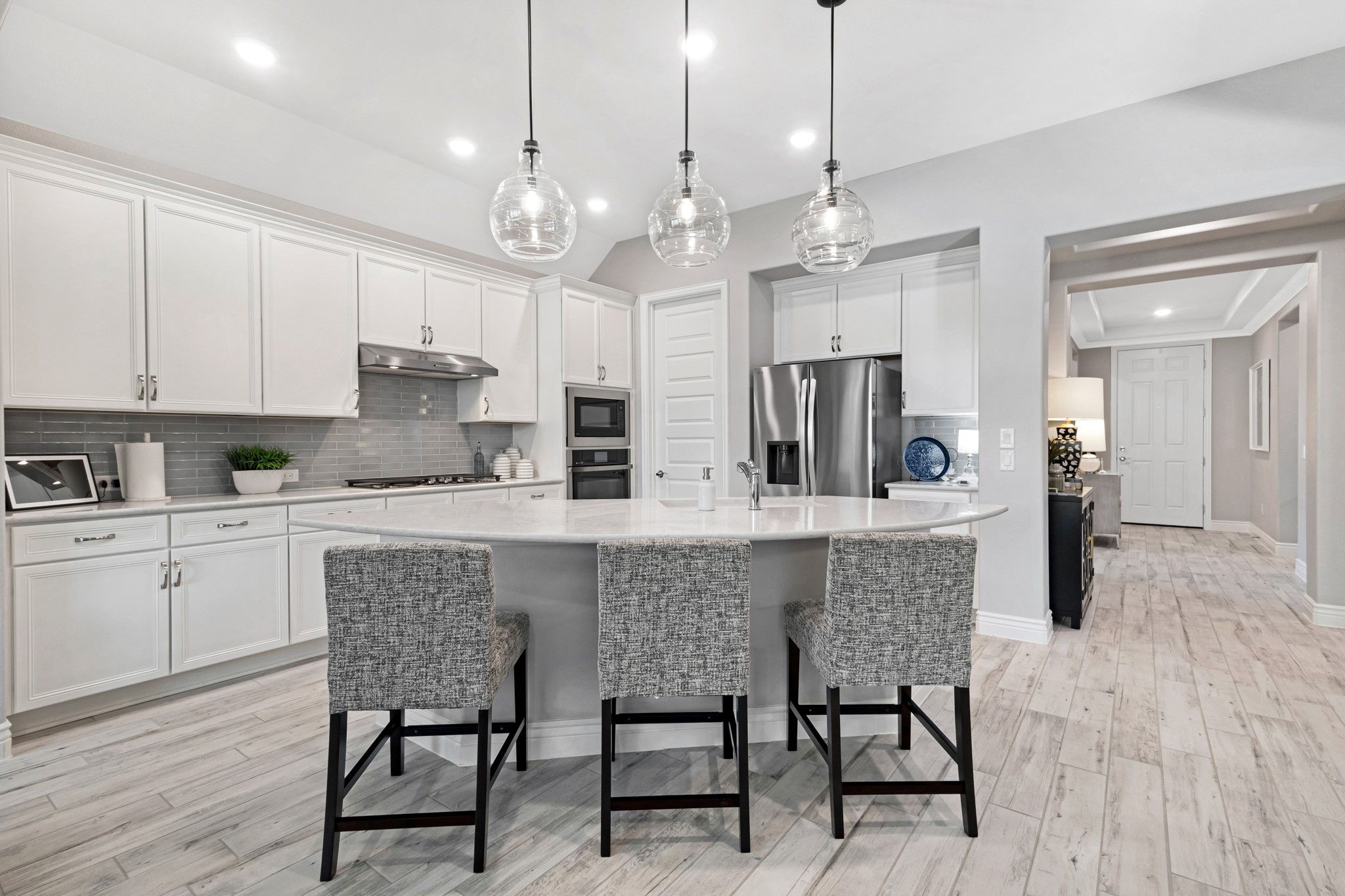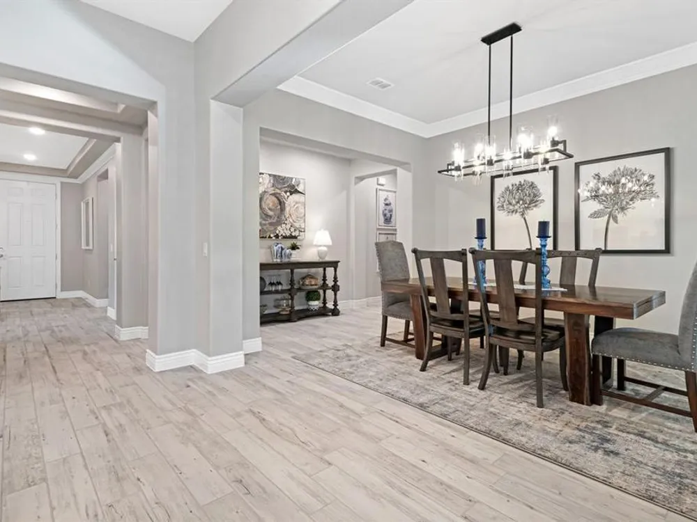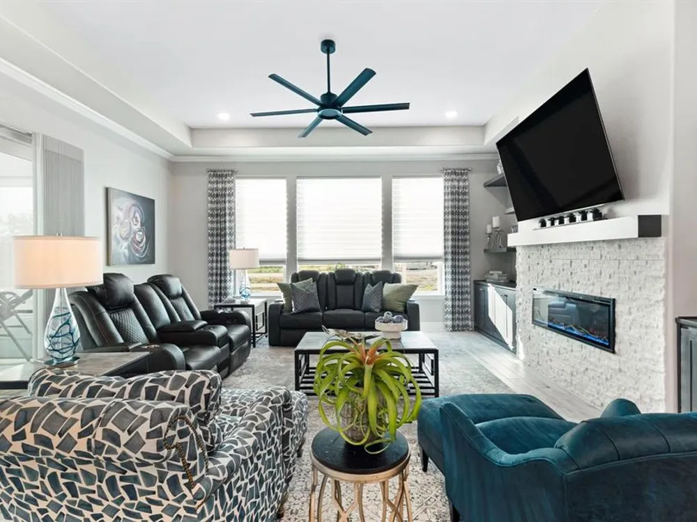 This stunning custom-built home, completed in 2025, showcases the sought-after Fresco Model Elevation B with an elegant white brick exterior. Situated in the heart of the gated and guard-monitored Robson Ranch community, this single-story residence features 2 spacious bedrooms, a versatile den, 2.5 bathrooms, and an oversized 2.5-car garage—perfect for two vehicles plus a golf cart or workshop space. Inside, the home boasts beautiful upgrades throughout, and the back patio is a standout feature, ideal for relaxing or entertaining. The hot tub stays with the house, adding to the home's appeal. Residents of Robson Ranch enjoy a vibrant, resort-style lifestyle with access to exceptional amenities, including 27 holes of championship golf, a clubhouse with a restaurant and bar, indoor and outdoor pools, 16 pickleball courts, tennis courts, bocce ball courts, a state-of-the-art fitness center, an indoor sports building, a beauty salon, saunas, greenbelts, sidewalks, fishing ponds, and scenic walking and biking trails. With engaging community events and activities for every interest, this home offers the perfect blend of comfort, luxury, and active living.