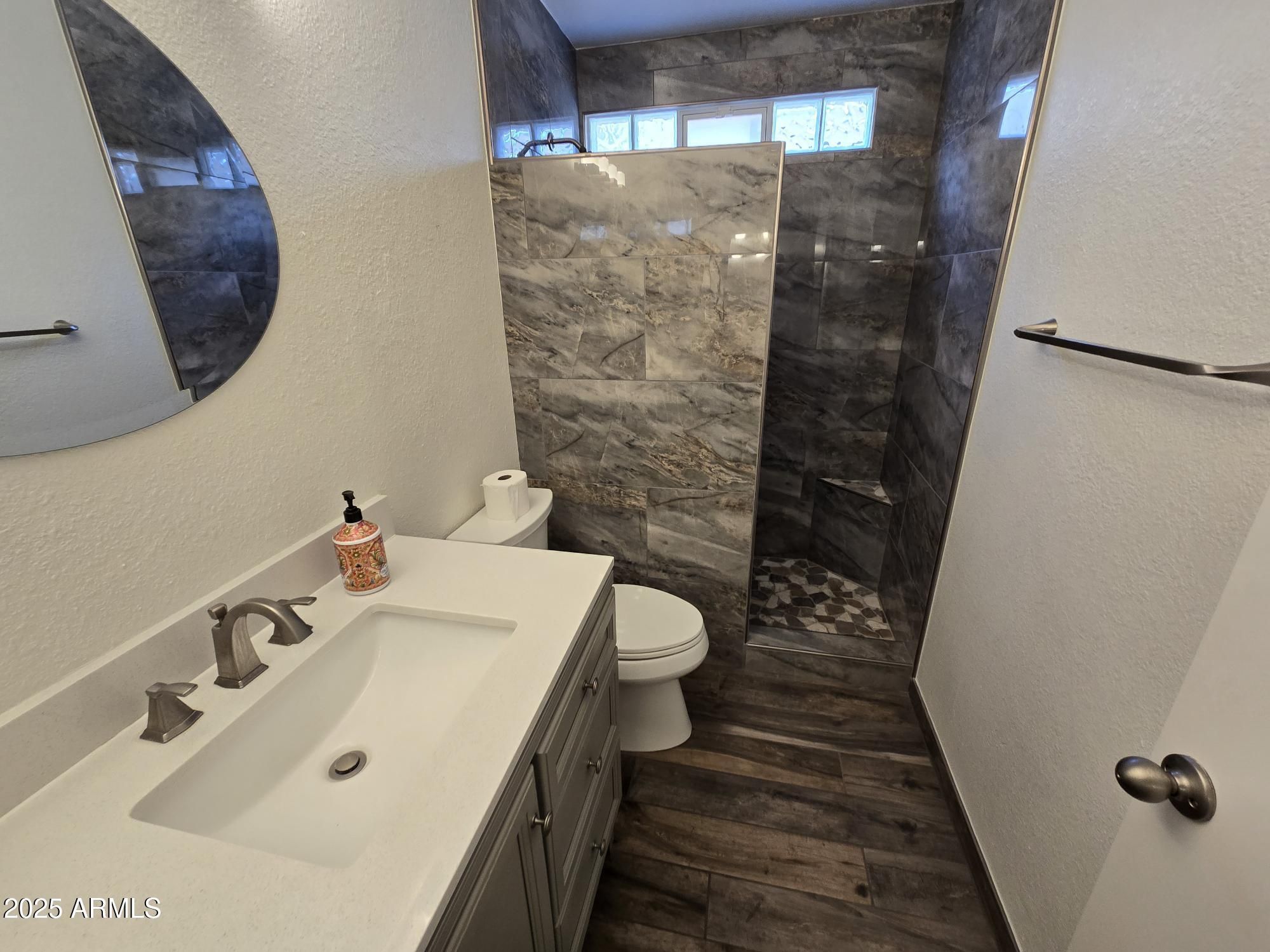 This is a fantastic property! They don't get much nicer and cleaner than this one. A wonderfully updated and upgraded home tucked well back into the Ahwatukee Community. Among too many upgrades to list. This home features new matching flooring throughout the entire property. The new shutters all through the home not only look fantastic. They work wonders in reducing the heat. The ceilings have been textured and well complimented with recessed lighting. Along with the expected new fixtures and fans as well. The newly fully renovated bathrooms are gorgeous with extensive tile work. Walk-in showers installed in both for easy and safe access. The spacious kitchen is adjacent to the family room with newer appliances, tons of cabinets, and a long sitting bar. Extended garage and huge backyard