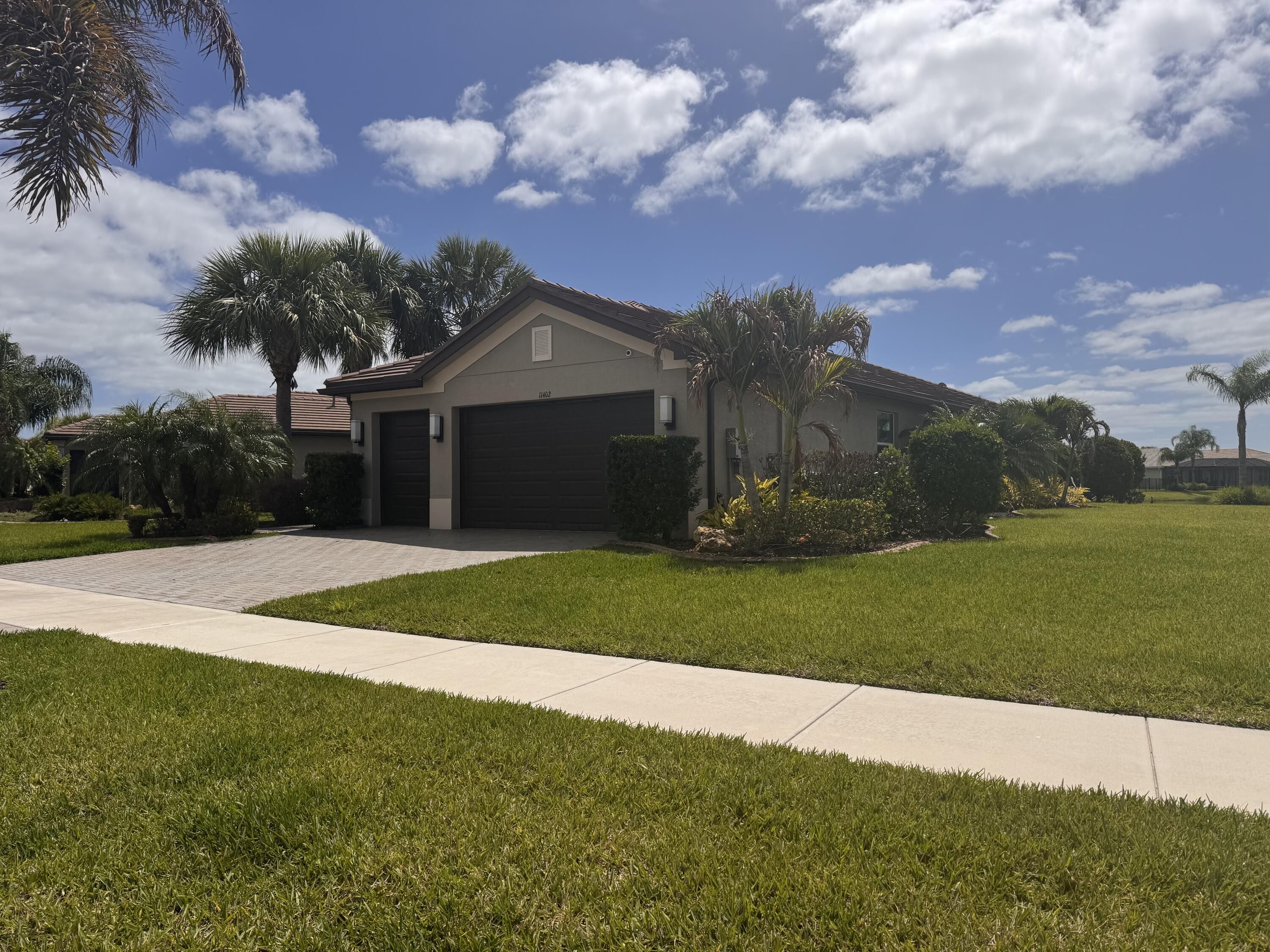 (Showing & Photos 4/25) Longview Lakefront Spacious 3bed/2.5bath/3car home. Oversized Screened patio with gas grill (optional). Gas Appliances inside. Generac! Welcome to this LAKE VIEW home in Valencia Cay (Riverland), a resort style 55+ community, near the heart of Tradition, offering an open layout with abundant natural light and tile flooring in the main living areas. The kitchen features ample cabinetry, solid surface counters, and a comfortable dining area. A split bedroom design provides added privacy, with a spacious primary suite offering a walk in closet and dual vanity bath. Enjoy a covered patio overlooking a peaceful backyard, plus a two car garage and indoor laundry. Close to Tradition Square, parks, lakes, trails, shopping, dining, and community events.