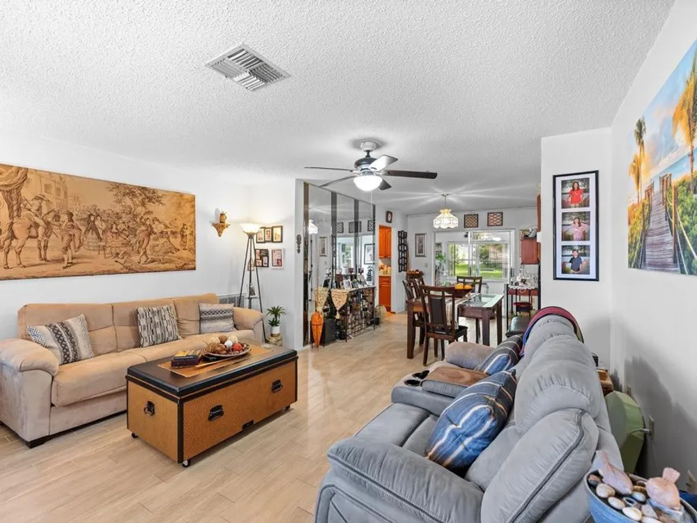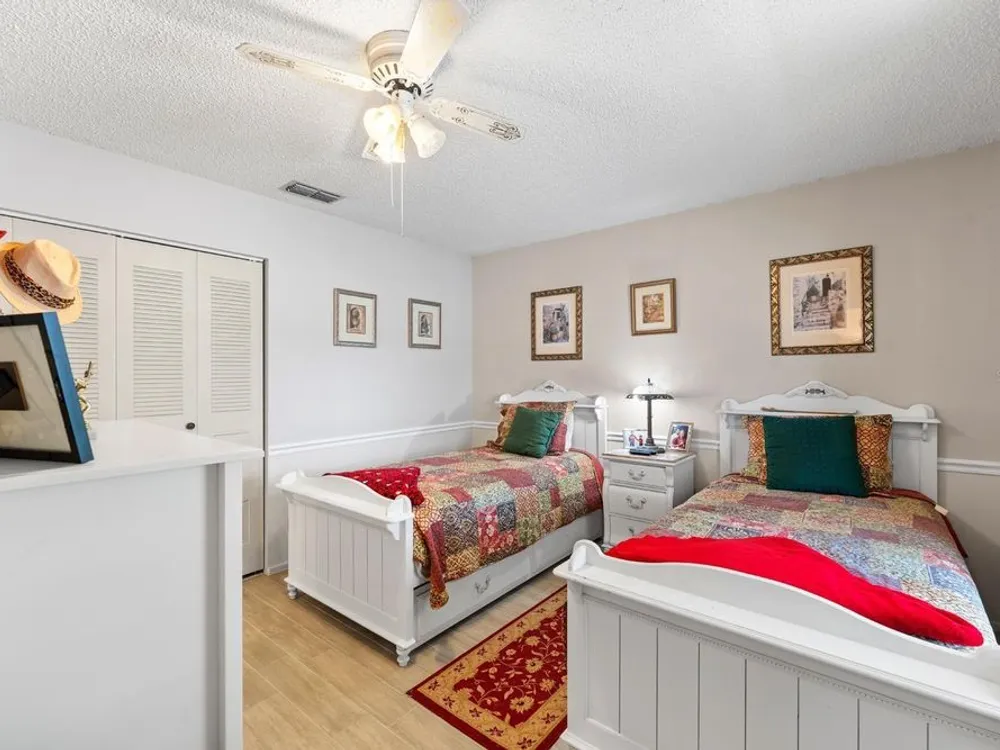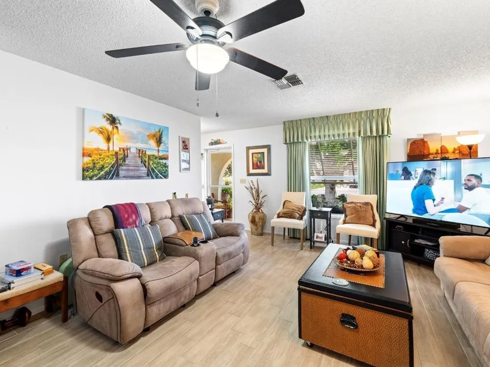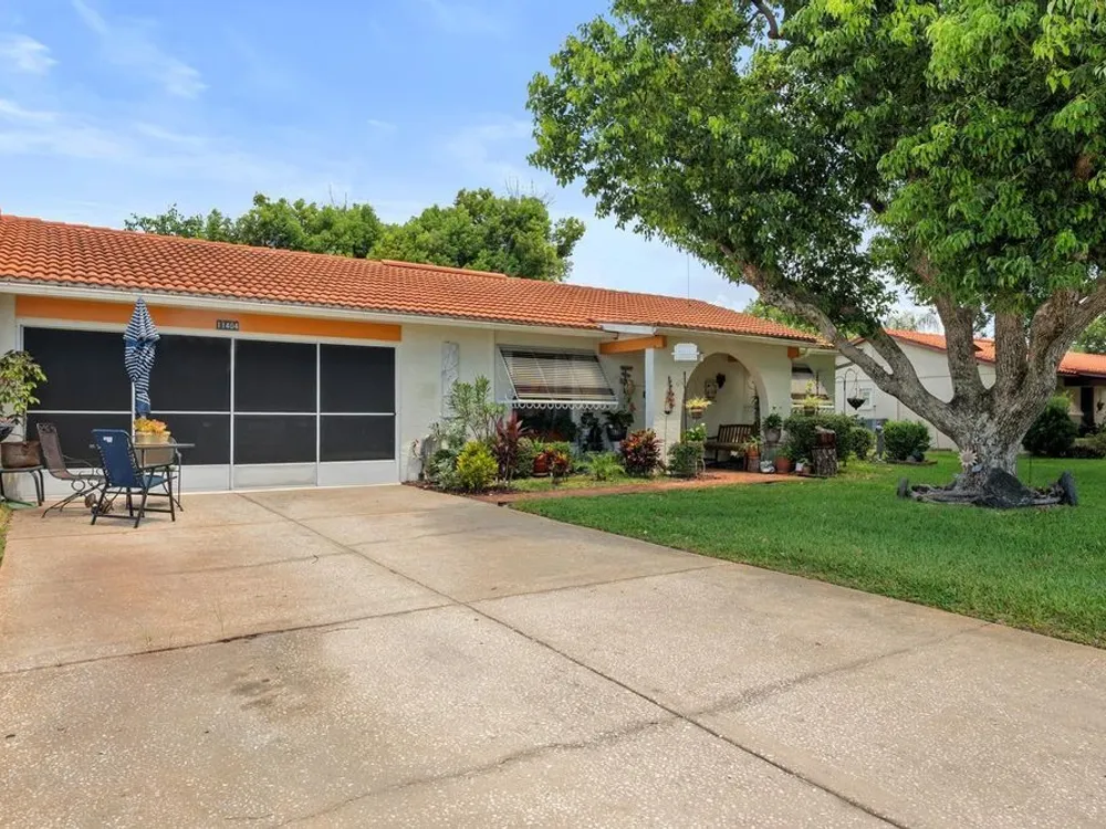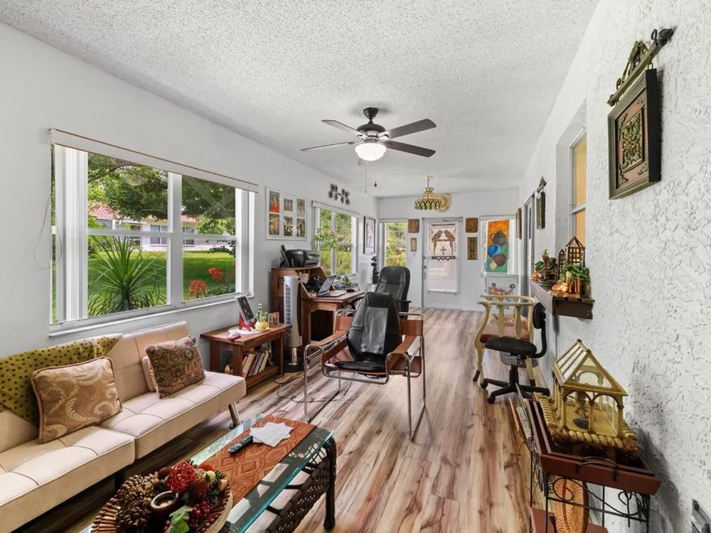 Don’t miss your chance to own this well-cared-for villa in the desirable 55+ community of Spanish Gates at Timber Oaks. Offering approximately 1,440 square feet of heated living space and 1,915 square feet under roof, this home features a split and semi-open floor plan with 2 bedrooms, 2 bathrooms, and a 2-car garage, plus a spacious extended sunroom—perfect for relaxing or entertaining. This villa is being offered fully furnished, including an impressive collection of solid wood and high-quality pieces. The primary bedroom features a queen solid wood frame and mattress, solid wood dresser with mirror, matching armoire, two solid wood twin beds, a coordinating chest, chair, and nightstand. In the living room, you'll find a three-seat sleeper sofa, a matching double-recliner loveseat, three accent chairs, a leather-wrapped solid wood trunk, two floor lamps, a brand new 75” smart TV with matching TV stand, and more. The dining area includes a rich solid wood table with six matching leather and wood chairs, plus a second high-top dining set with six stools—perfect for gatherings. Additional furnishings include a wood and metal pantry rack with glass-door compartments and drawers, a bar stand with wine rack, and a stunning three-piece solid wood wall unit (8’ wide x 6’ tall). Also included are two footstools, a solid oak computer desk (30”W x 42”H), a solid wood kitchen bistro table with two matching chairs, and a kitchen cart. The kitchen comes well-equipped with pots, pans, and china. You’ll also find many decorative wall pieces, framed artwork, flower vases, and more. The garage offers a selection of tools and storage cabinets—ideal for hobbyists or those who enjoy a tidy workspace. Residents of Timber Oaks enjoy a wide range of amenities, including a private community pool and a neighborhood pool, tennis courts, and a clubhouse with a game room, library/business center, sewing room, and event space for social gatherings. This home offers exceptional value, comfort, and lifestyle—schedule your private showing today!