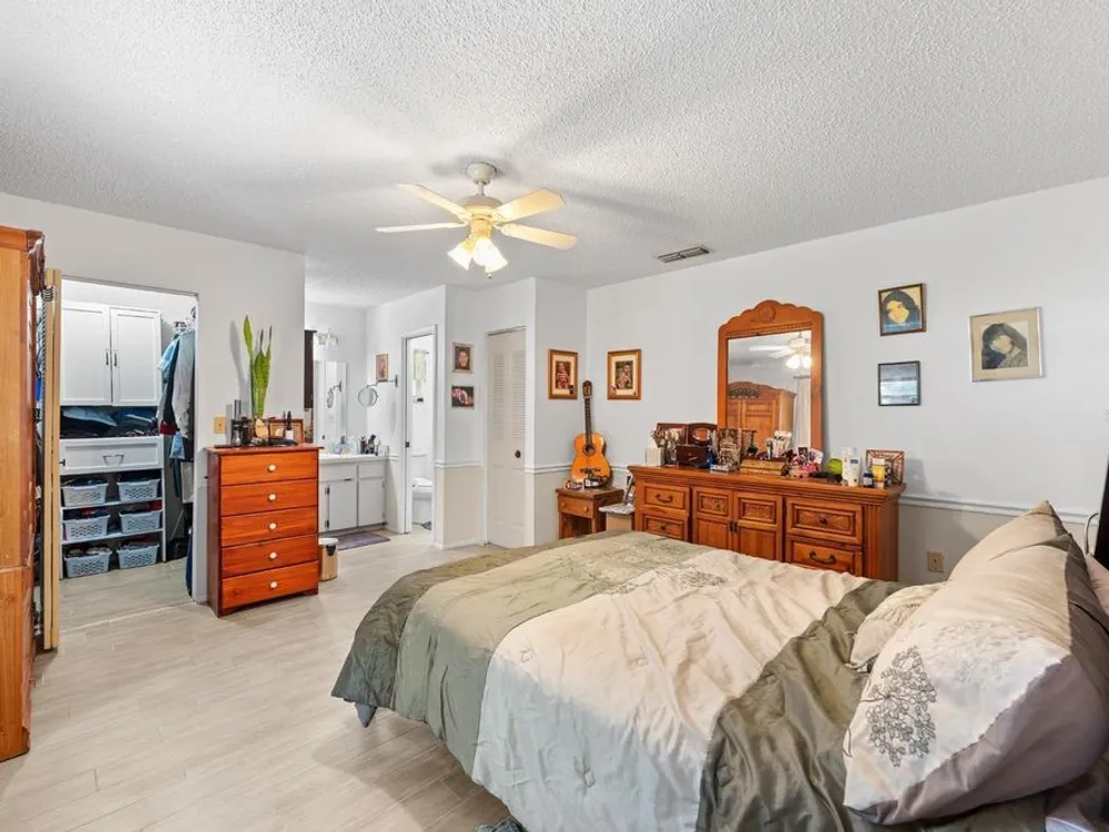 - Ceiling Fan(s), High Ceilings, Open Floorplan, Main Level Primary, Split Bedrooms, Vaulted Ceiling(s), Walk-In Closet(s)