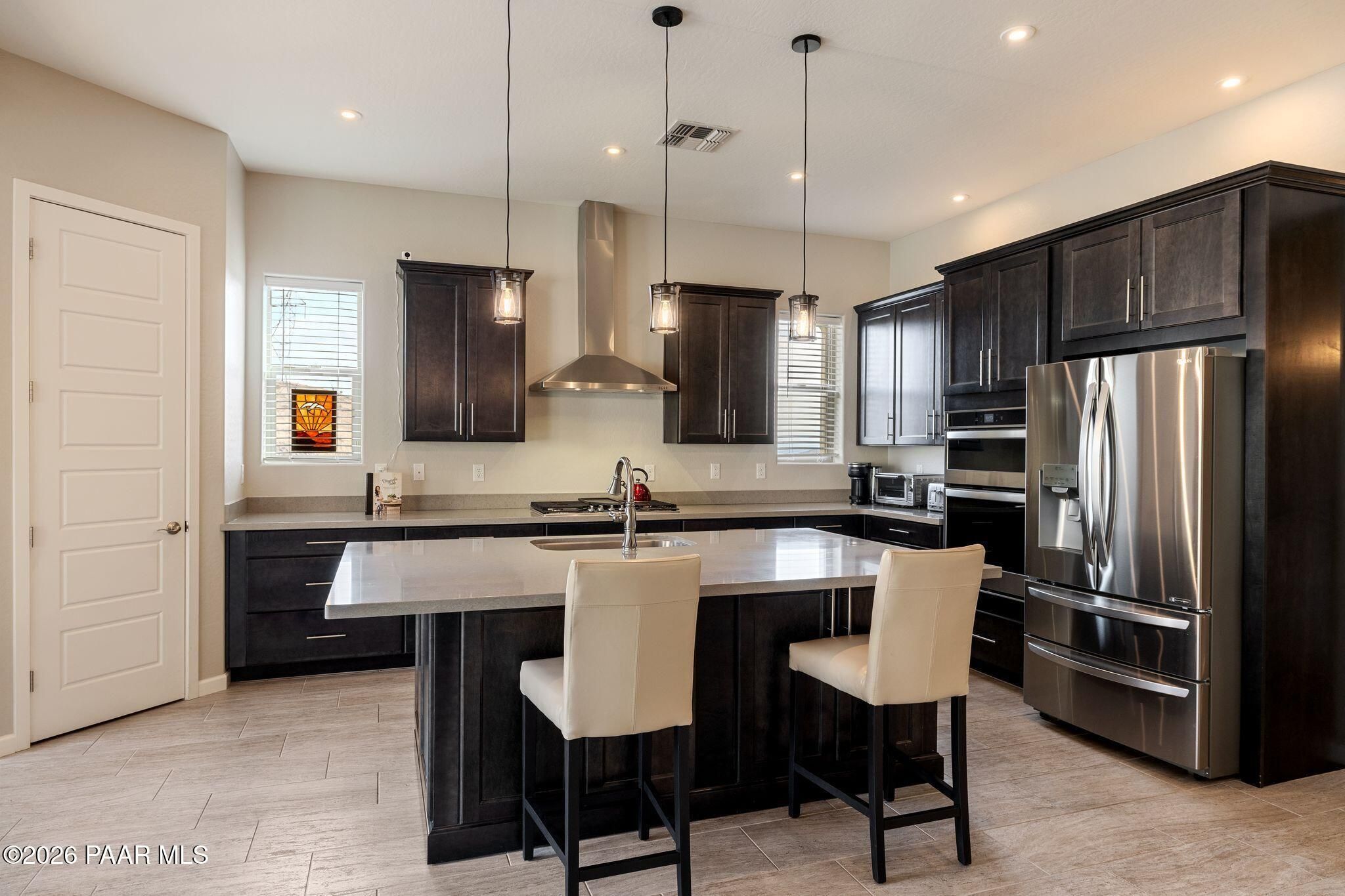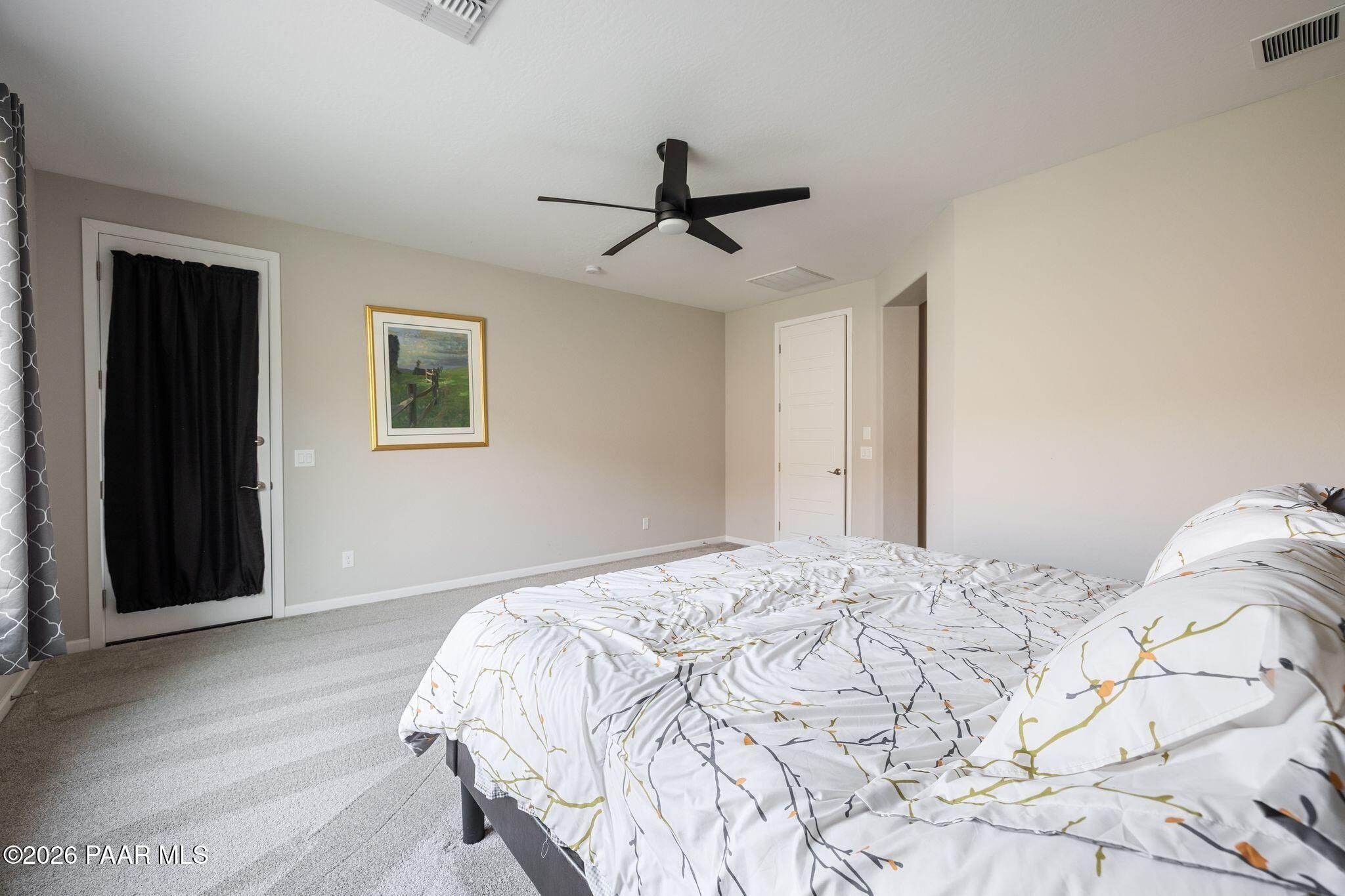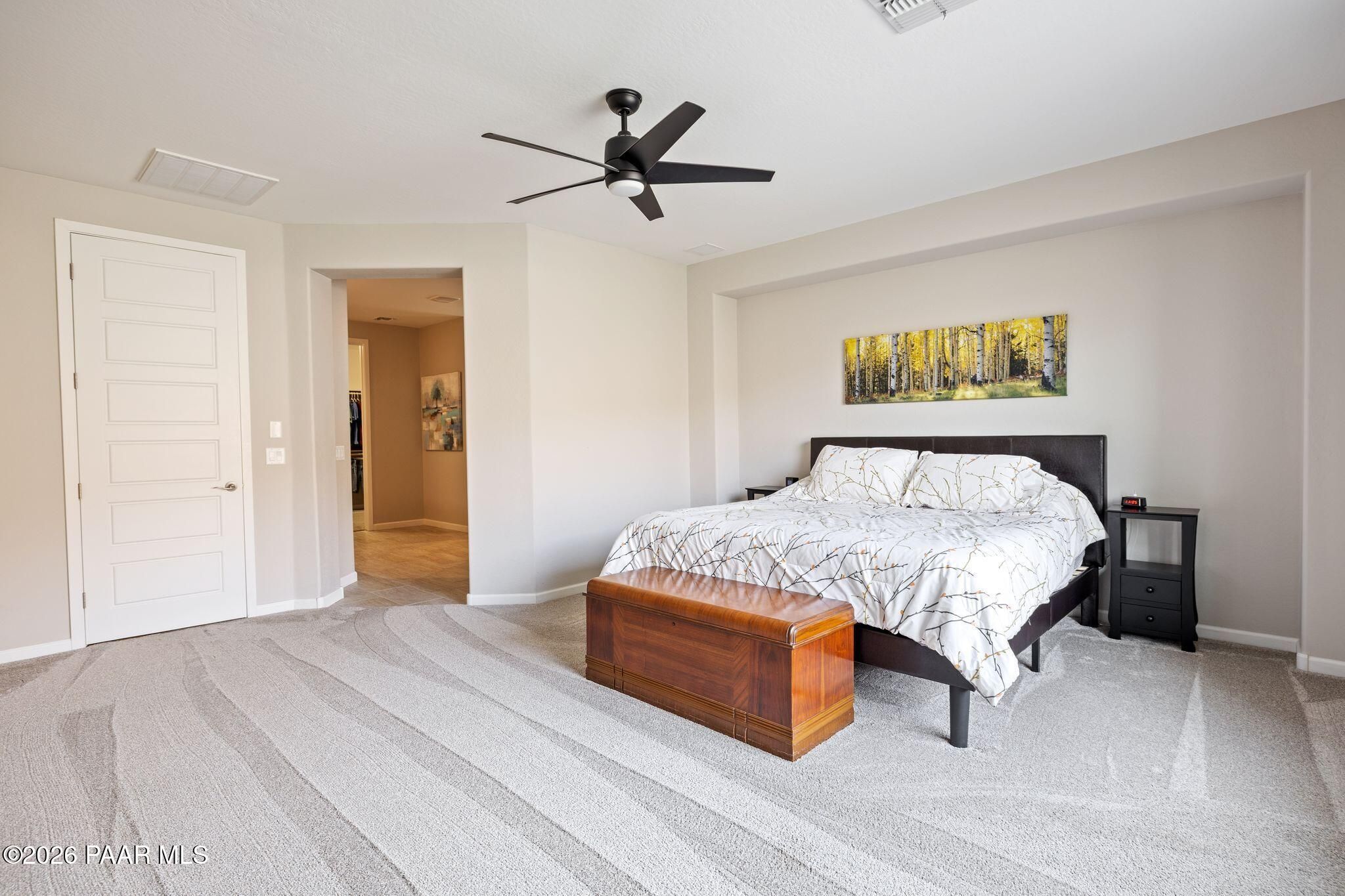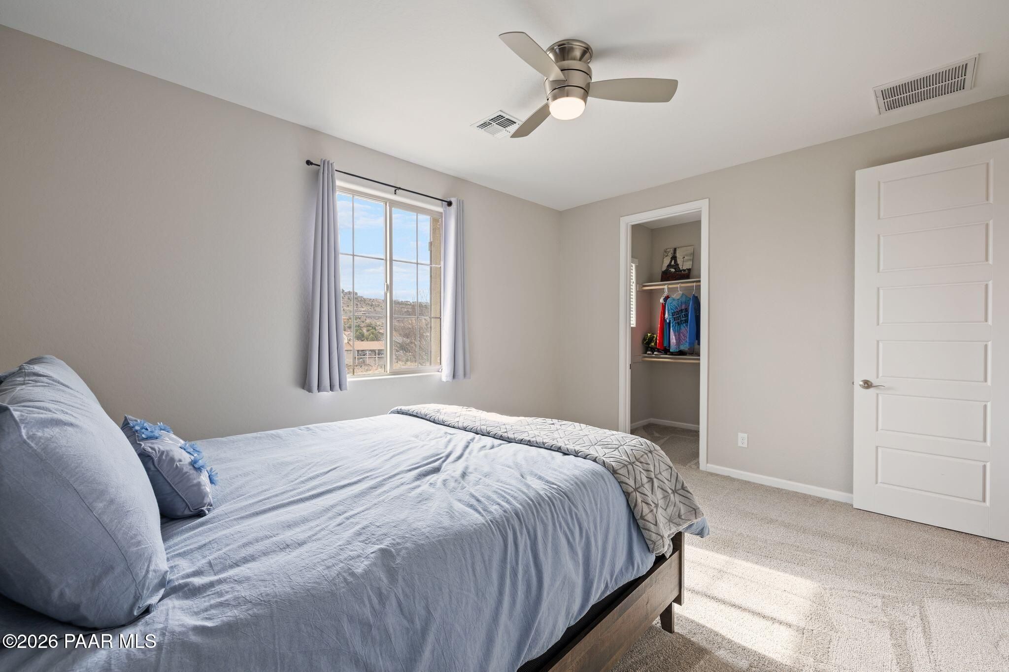 Beautifully maintained home in the newest phase of Yavapai Hills. Built by Manadlay-Pinnacle floor plan with great room design offering 3 bedrooms, 2.5 bathrooms, flex rm, and an oversized 3-car garage with EV car chargers and epoxy floor. Interior features include 10' ceilings, 8' doors, 16' sliding glass door, beamed ceiling, fireplace, spacious bedrooms, mud/laundry room, and excellent storage. Chef's kitchen boasts stainless steel gourmet appliances, a cooktop with a separate wall oven, walk-in pantry with floor-to-ceiling storage, crown-molded cabinetry, breakfast area, and separate dining space. Owner's suite with patio access, large walk-in shower, dual vanity, and oversized walk-in closet. Oversized covered patio overlooks a beautifully landscaped, flat, and private backyard--ideal for entertaining. Extremely energy efficient with spray foam insulation, insulated concrete slab, Hybrid water heater, 95% efficient gas heat, Low-E windows, WaterSense(r) fixtures, whole-house air exchanger, and energy-efficient lighting. Exceeds Energy Star 3 and EPA Indoor airPLUS Certified. Drip system w/ auto timers on all landscaping.