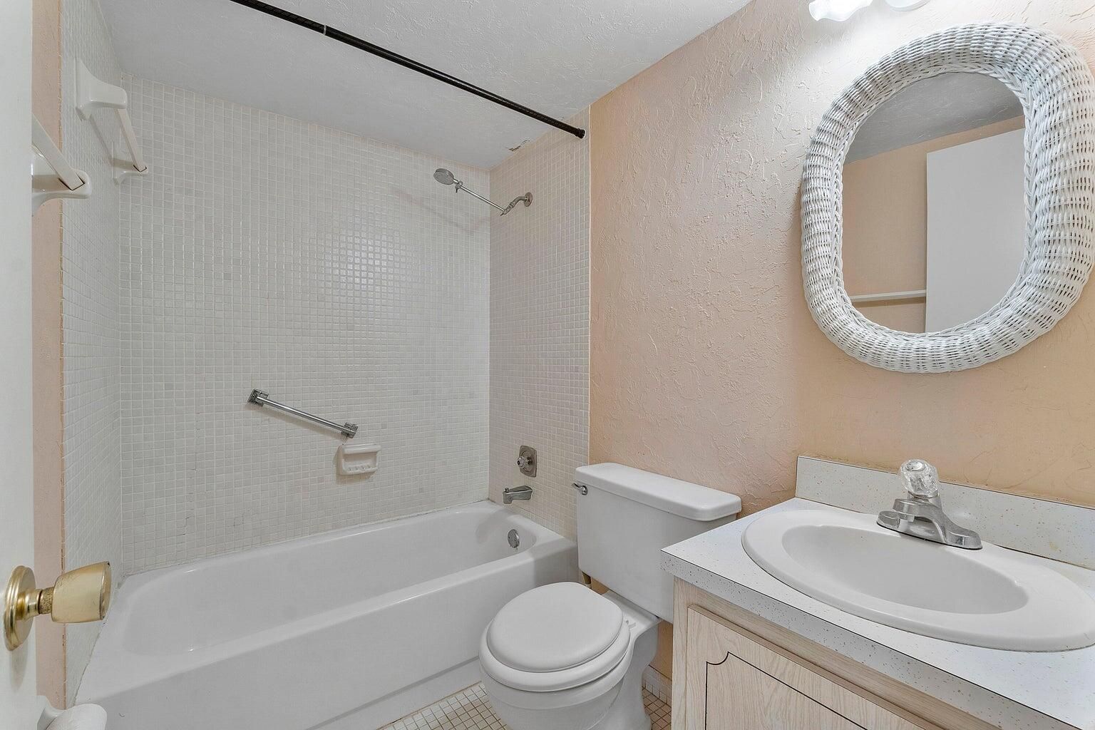 Pines of Delray: LOWEST price 1st floor corner in all the "Pines" communities. NOT a foreclosure, NOT a short sale and NOT backing to road! Spanning 1167 square feet this residence includes 2 bedrooms 2 full baths, a 17 foot long eat-in kitchen, a 29 foot long living room/dining area(Just needs your decorating and a few enhancements- kitchen countertop is already granite. And a 2nd sink was added to inside of master bathroom. Plus there's a roofed open patio in front with a breezy southeast exposure for your usage year round! And its conviently located just 2 buildings away from the main clubhouse & pool. The building has a 2025 new roof and the monthly maintenance fee ($623) includes fully funded reserves (15%), water, fiber optic cable (including HBO) and WIFI in each unit. At least one approved buyer must be 55+; approved co-buyers must be at least 18 years of age and can only be in residence if an 55+ approved buyer is in residence at the same time; Persons not on the deed and who plan to reside at the residence for more than 30 days per year must be approved as an "occupant". Up to 2 indoor cats, caged birds and tropical fish are welcome as pets; owner and guest overnight parking is limited to automobiles, SUVs, non-business passenger vans, motorcycles and small personal non-commercial open bedded pickup trucks (with no visible signage, tools or equipment); all vehicles must fit within the white stripes of parking spaces in both length and width; after 18 months of ownership unit owners can be eligible to lease out their unit (approved leases must be for a 4 month minimum and only one lease is allowed per 12 month period); title to a property cannot be taken by an LLC, a corporation, business trust, business partnership or business co-ownership; however title can be in a personal or family trust, a non-business partnership/co-ownership, a life estate or a Lady Bird Deed; a minimum credit score of 650 is required of all buyers on the purchase contract; no business can be run out of a unit whereby customers or clients come to the unit or onto the common grounds; no smoking is permitted within 50 feet of a building including catwalks, stairwells or on open patio areas; seller financing or private financing is not permitted; you can have guests stay in the unit without the owner being present(with association approval) for a maximum of 30-days per calendar year; wind-chimes/noise-makers cannot be hung outside. The open patio area in front of #101 and #104 units is a limited common element and is customarily only used by those units.