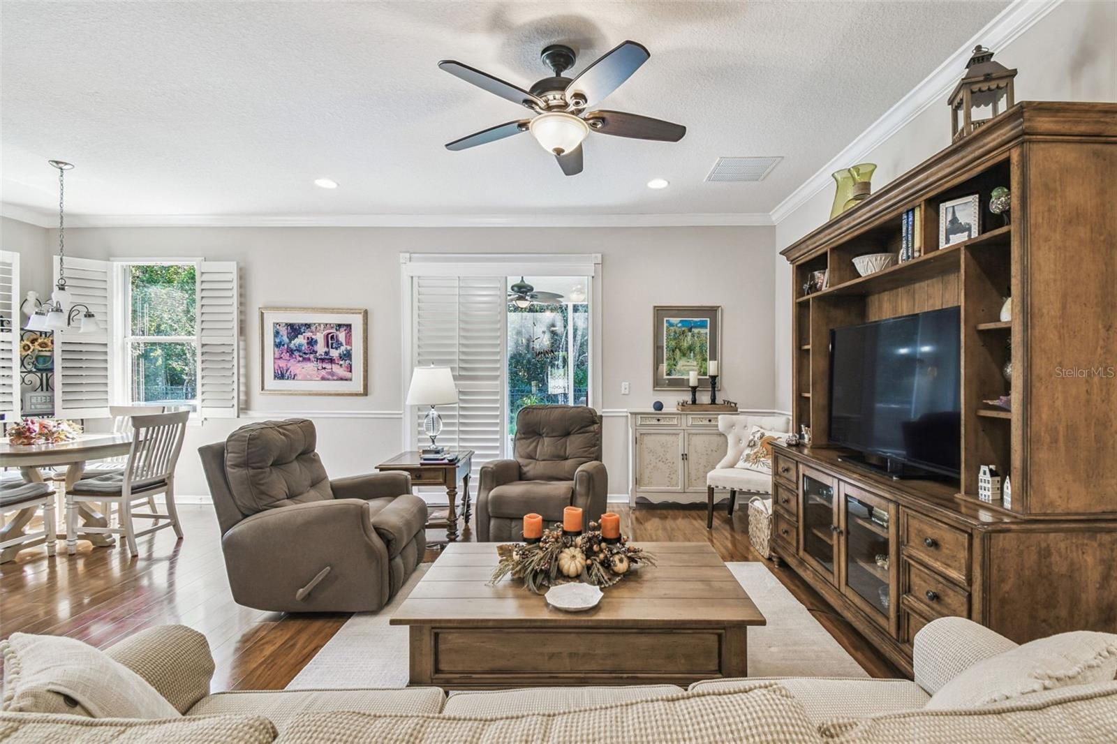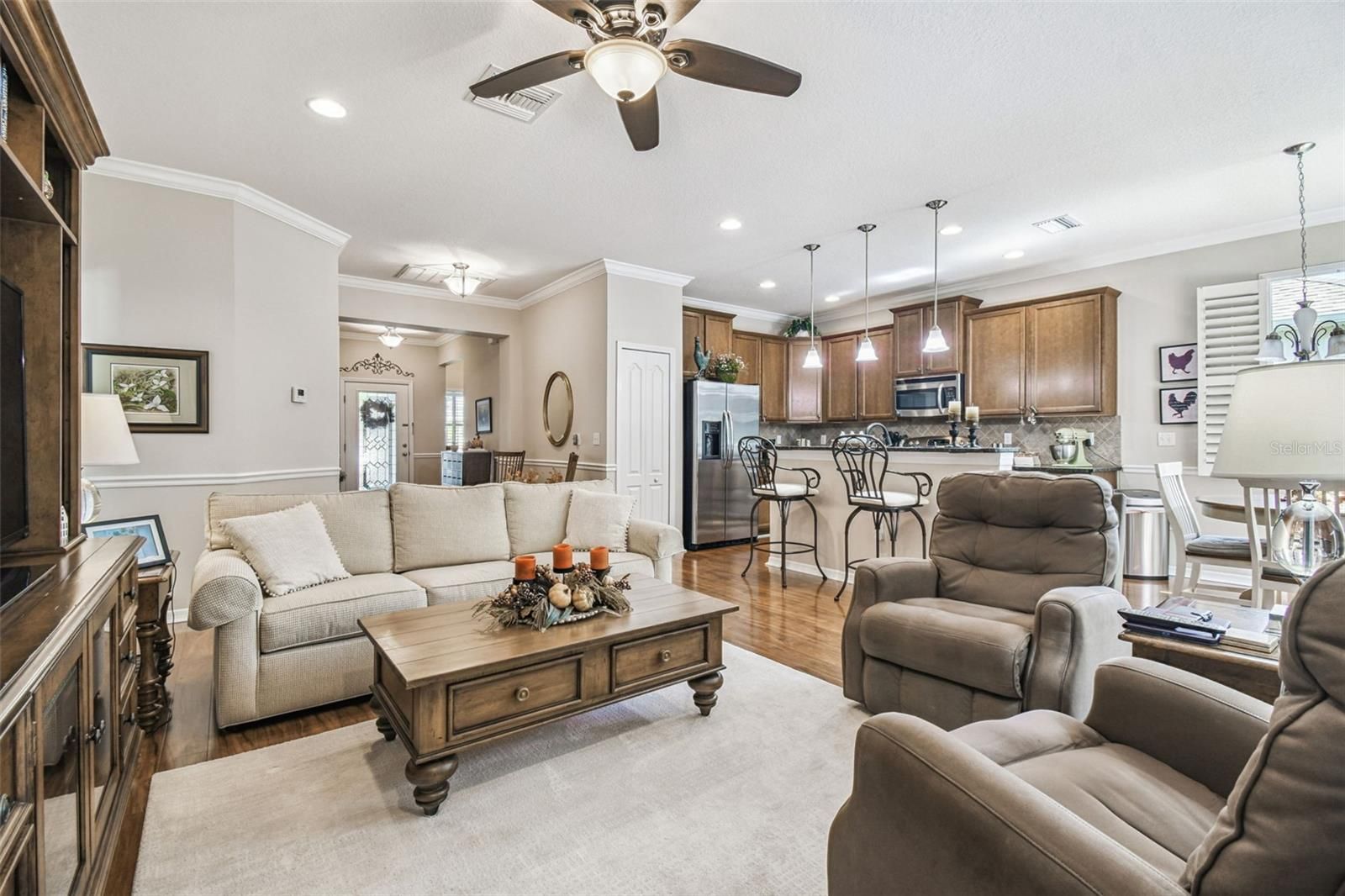 - Ceiling Fan(s), Chair Rail, Crown Molding, Open Floorplan, Walk-In Closet(s)
