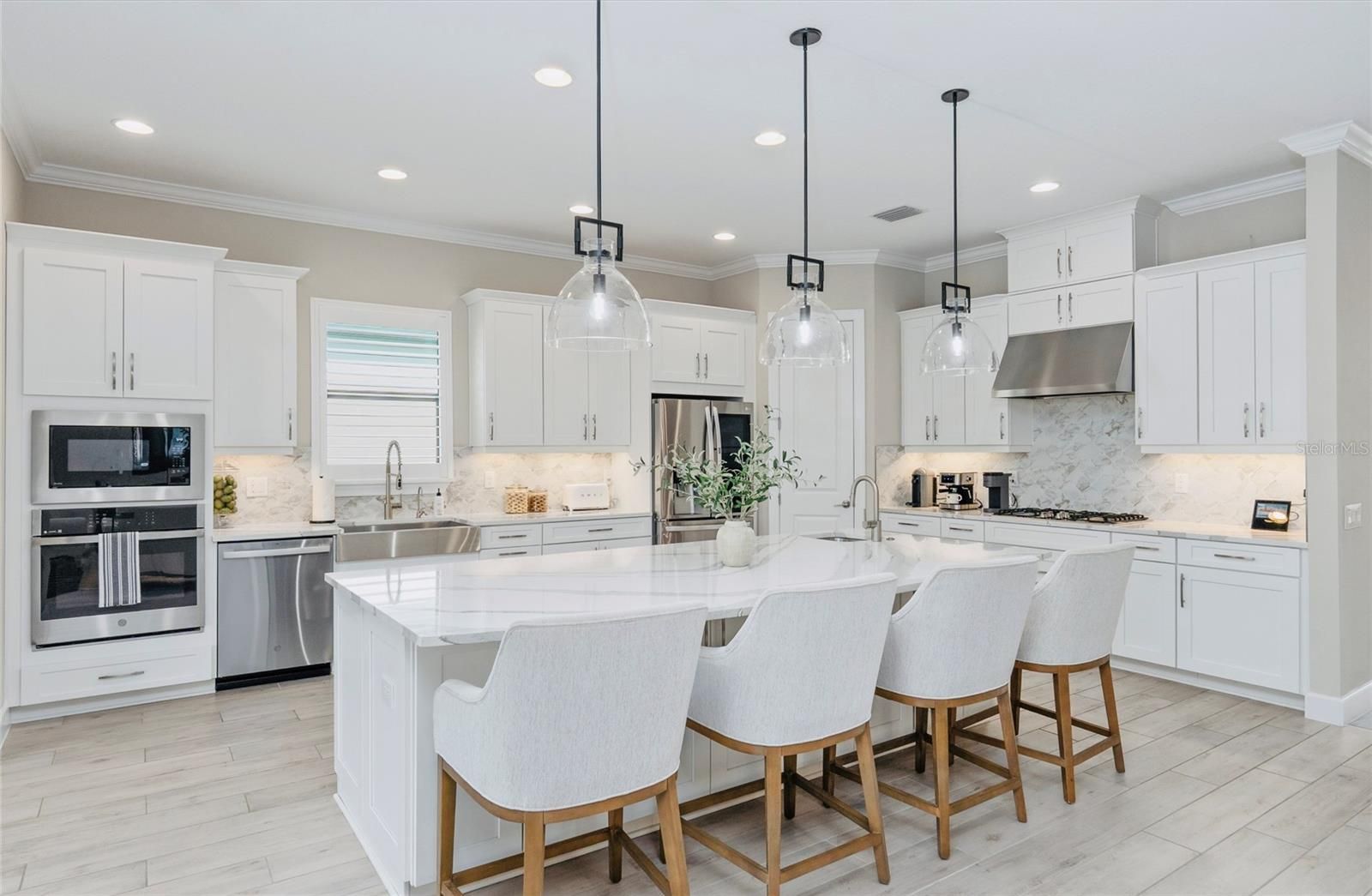 Luxury Living at Esplanade at Starkey Ranch | Pallazio by Taylor Morrison. Welcome to refined, resort-style living in the heart of Esplanade at Starkey Ranch. This beautifully upgraded Pallazio by Taylor Morrison offers an exceptional blend of luxury, comfort, and privacy, perfectly positioned on a tranquil water view with no rear neighbors. This thoughtfully designed residence features 3 bedrooms, 3 bathrooms, a spacious study/den, and a 2-car garage, spanning 3,000+ square feet of elegant living space. From the moment you enter, soaring ceilings, upscale finishes, and a bright open-concept layout create an inviting atmosphere ideal for both entertaining and everyday living. The gourmet kitchen is the heart of the home, showcasing a large center island with prep sink and beverage refrigerator, 42” cabinetry, quartz countertops, and premium stainless-steel appliances—perfectly suited for hosting or casual gatherings. The kitchen flows seamlessly into the great room and dining area, enhancing the home’s effortless indoor-outdoor lifestyle. The private primary suite is a true retreat, offering a spa-inspired bath with an oversized walk-in shower, dual vanities, and a generous walk-in closet. Guests will enjoy exceptional privacy with a junior suite featuring its own full bath, while the additional bedroom is conveniently located near a third full bathroom. The showpiece of the home is the expansive covered lanai, overlooking a peaceful pond with no rear neighbors—an ideal setting for morning coffee or sunset wine in total privacy. Residents of Esplanade at Starkey Ranch enjoy exclusive, resort-style amenities, including a grand clubhouse with lifestyle director, pickleball, tennis, and bocce courts, a heated resort-style pool with private cabanas, outdoor fire pit, grilling areas, and a vibrant social calendar—all within a gated, maintenance-free community. Whether you’re seeking an elegant year-round residence or a refined winter retreat, this exceptional home delivers lock-and-leave convenience, luxury finishes, and an active Florida lifestyle just minutes from Starkey Market, shopping, dining, and major conveniences.