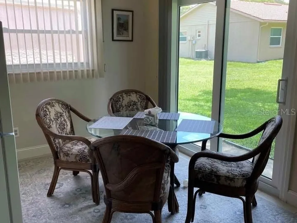 Spacious 2 bedroom/2 bathroom Villa in Spanish Oaks. Active dual 55+ communities. Seller is very meticulous, home shines. New Granite Countertops in Kitchen and adjacent Kitchenette. Both bathrooms updated with Granite, sinks and fixtures. Sunroom was incorporated into living space with air, and brand new sliders for views of the well kept common area. Lovely home to relax in if you want to leave the cold northern winters, or better yet retirement at its maximum. 2 HOAs...Main is Timber Oaks with a clubhouse, pool, tennis courts, and large community rooms for activities. Spanish Gates has it's own pool with shelter and facilities for a more private location. Come visit for a private showing, and you'll want to stay. NOTE!!! Select furniture may be available for purchase privately.