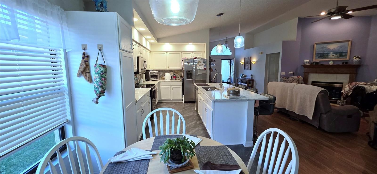 - Eat-in Kitchen, Kitchen/Family Room Combo, Living/Dining Room, Main Level Primary, Solid Surface Counters