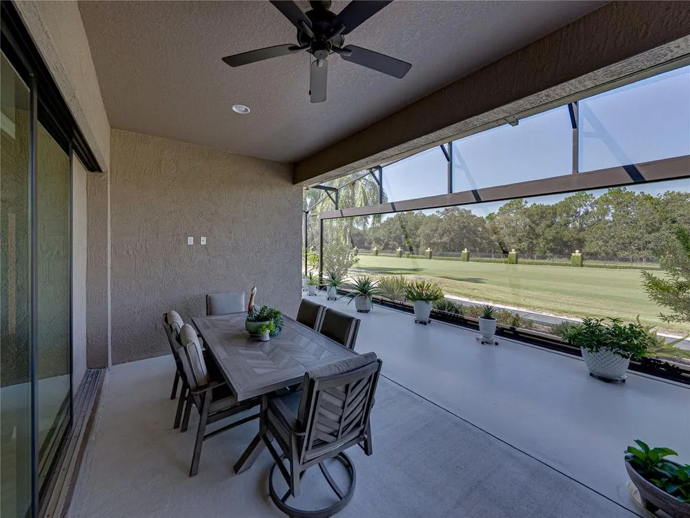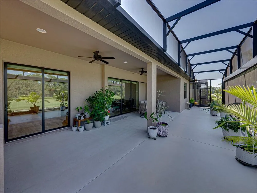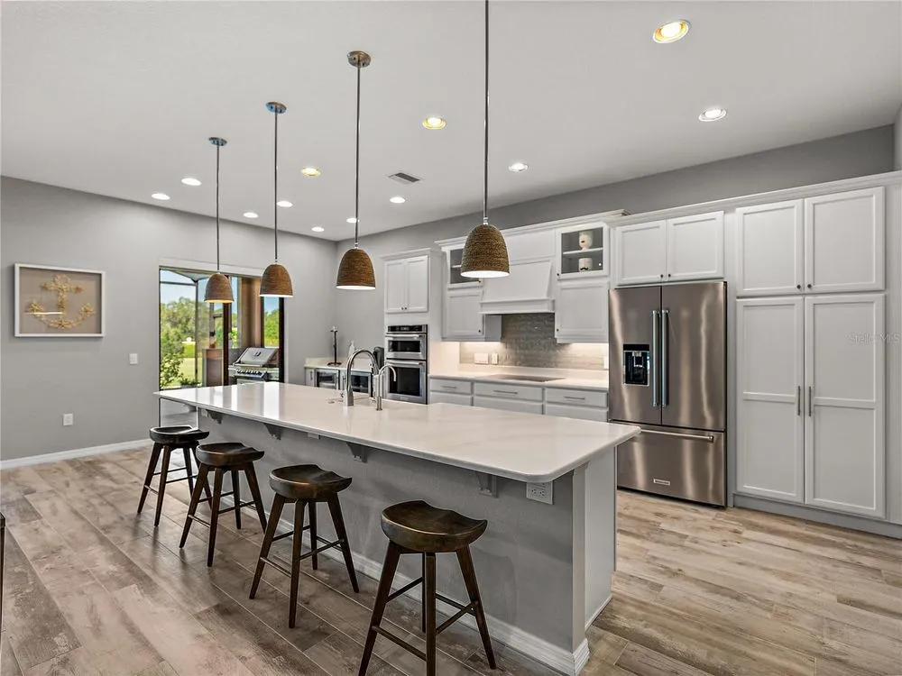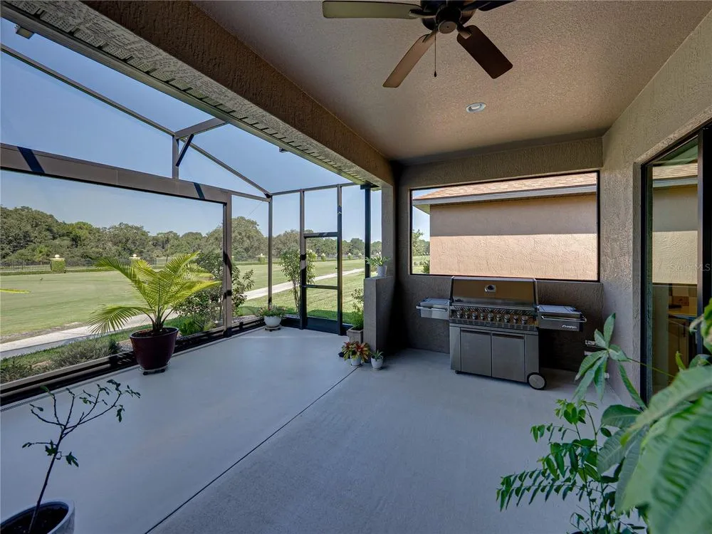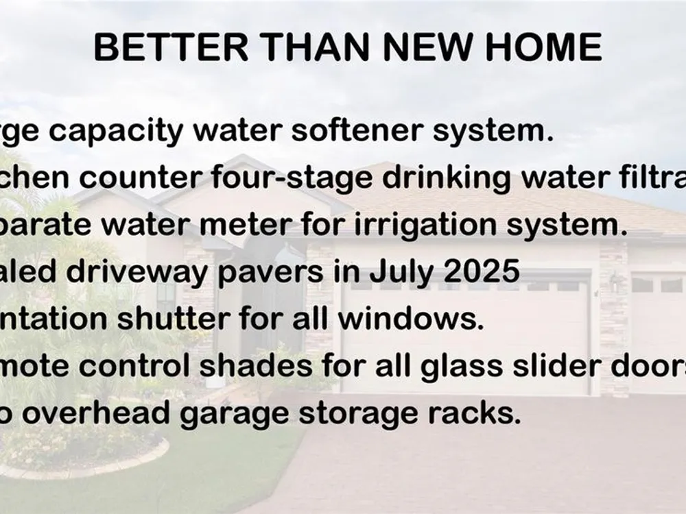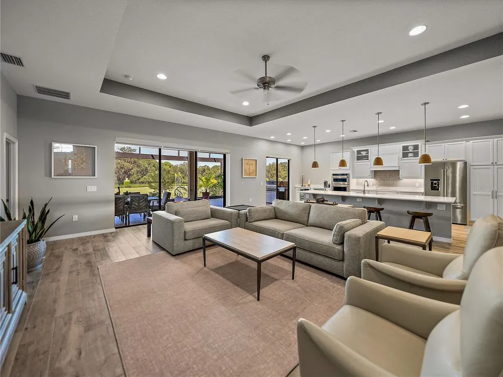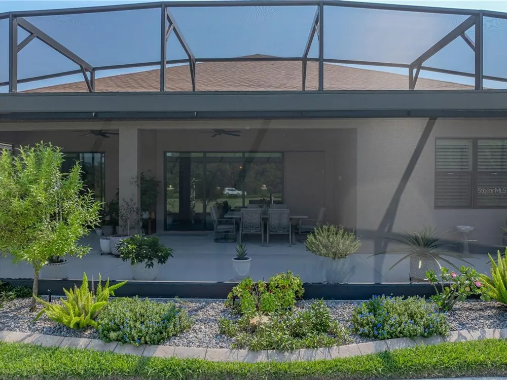 Welcome to your next chapter in beautiful Lake Ashton—Central Florida’s premier 55+ active-adult community. This immaculate, nearly new home (just 3 years young) offers a perfect blend of tasteful style, elegance, and Florida charm. With 3 spacious bedrooms and 2 full baths, this open-concept floor plan, with 10’ ceilings and 8’ doors, feels spacious, yet warm and comfortable. It is ideal for both relaxed living and gracious entertaining. Upon approaching the home, you will immediately be impressed by the exterior stone facing, beautiful landscaping with concrete curbing and small river rock, the full-width paver driveway, bronze trim and gutters, and front screened entry. The spacious living area is highlighted by an amazing chef’s kitchen with stunning white cabinets, and a one-level island providing additional kitchen workspace. The kitchen alone features over $30,000 in upgrades, including the outstanding chef’s KitchenAid stainless steel appliance package with PrintShield Finish, a 36” induction cooktop and separate, built-in oven and microwave. The base kitchen cabinets were extended to the west exterior wall. The kitchen and flex room feature abundant cabinets, shelving, and storage areas. The living room and primary bedroom have elegant coffered ceilings, and the primary bedroom has a spacious, custom walk-in closet. The home is accented by custom tile flooring throughout. The sliding glass doors are pocketed to allow fully opening to the expanded, screened veranda. With its panoramic view overlooking the golf course, the veranda is splendid for both entertaining and relaxing in your delightful residence. The home features custom fans, hardware, and lighting throughout, as well as five pocket doors. In total, the home has over $198,000 of custom upgrades, making it truly a signature residence! More than a neighborhood, Lake Ashton is a lifestyle. Residents enjoy two 18-hole championship golf courses, a 26,000 sq ft clubhouse, a state-of-the-art Health & Fitness Center, both indoor and outdoor swimming pools, pickleball courts, bowling alley, theater, on-site restaurant, and a vibrant calendar of social events and clubs. Don’t miss this exceptional opportunity to own a home that truly has it all. Call today to schedule your private showing—your Florida dream awaits!