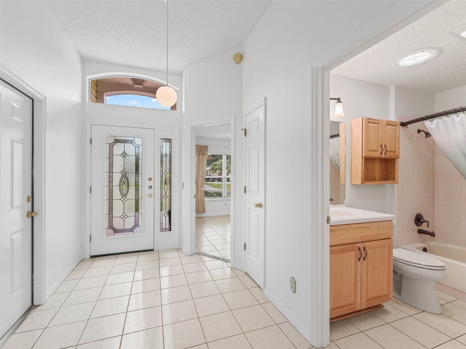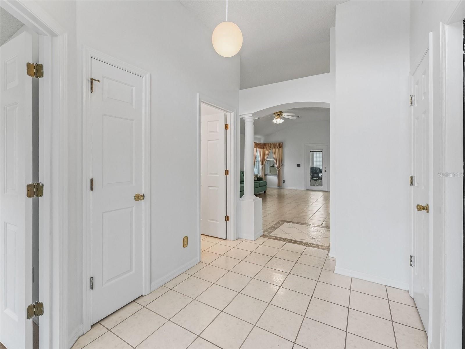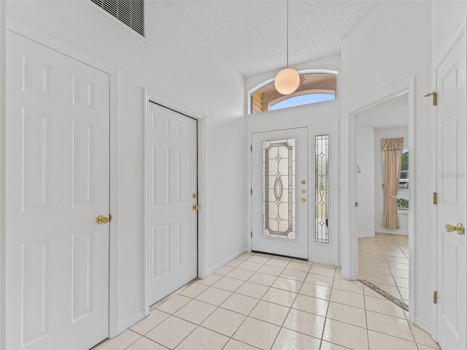 Immaculate & Charming 2-Bedroom, 2-Bath Home with Modern Upgrades and NO Bond! Welcome to this beautifully maintained home featuring a leaded glass front entry, painted & sealed walkway & driveway, a full one-car garage with painted flooring, PLUS an additional golf cart garage. Step inside to a freshly painted interior that boasts an inviting foyer with a convenient hall closet and all-tile flooring throughout — no carpet anywhere! The kitchen is a chef’s dream with stunning Hickory cabinets, newer appliances, gooseneck faucet, granite countertops, recessed lighting, a cozy eating area, and pull-outs in both the pantry and cabinets for added convenience. Enjoy the open and airy feel of the great room with the high ceilings and stylish architectural ledges. The master suite is a true retreat with high ceilings, a spacious walk-in closet, and a luxurious ensuite bath featuring Jetta Stone finishes, a seamless sink, extra cabinetry and counter space, and dual showerheads. The second bedroom offers versatility with a full-size Murphy bed and a spacious closet — perfect for guests or a home office. The guest bath includes corian countertops with seamless sink, tiled shower and a solar tube for natural light! Relax year-round in the enclosed and climate controlled lanai, complete with glass windows and elongated tile flooring. Major updates include the roof, A/C, hot water heater, and appliances, giving you peace of mind for years to come. Modern upgrades and energy-efficient features include: Low-E Double-Pane Windows, Solar Attic Fan, Lights on Overhead Fans, Updated Irrigation System, Security Film on Windows, Ring Doorbell, Carriage Lights and Motion-Sensor Lighting, Landscaping Barrier System, New Garage Door Opener, and Painted & Sealed Driveway. This move-in ready home combines comfort, functionality, and peace of mind in one perfect package. Don’t miss the chance to make it yours! The location can't be beat! Within minutes of all shopping, restaurants, banking, activities and more! Schedule your private showing now.