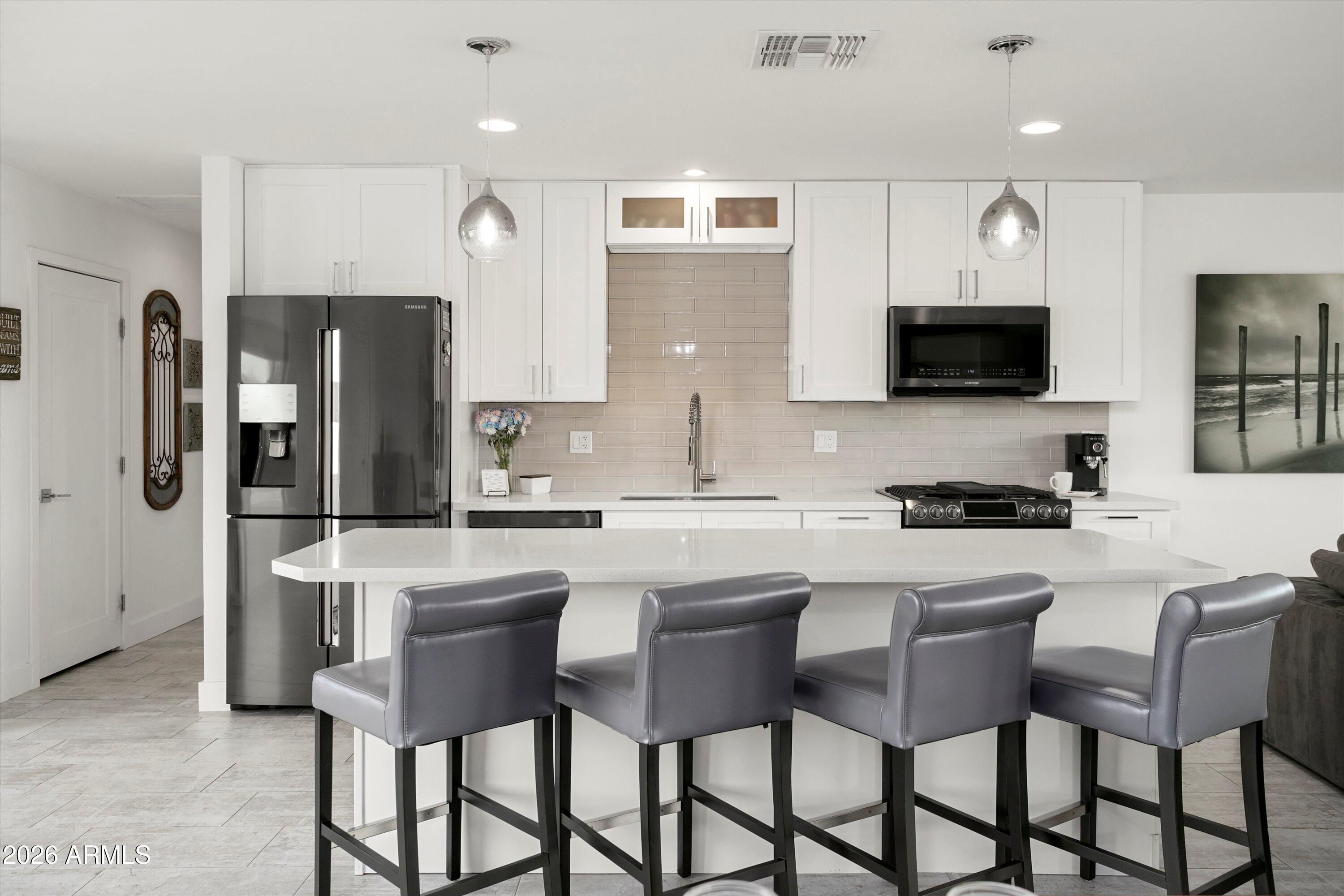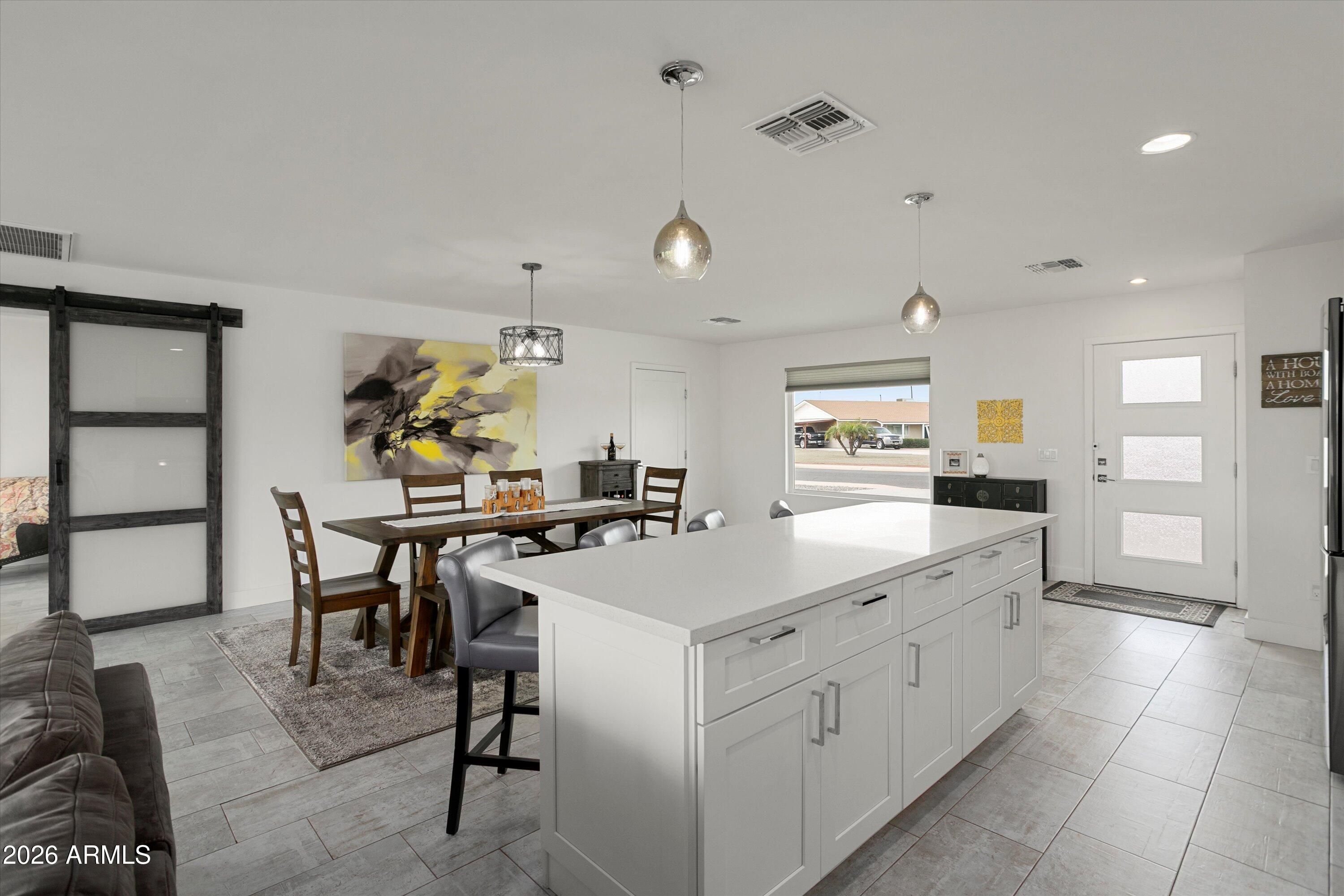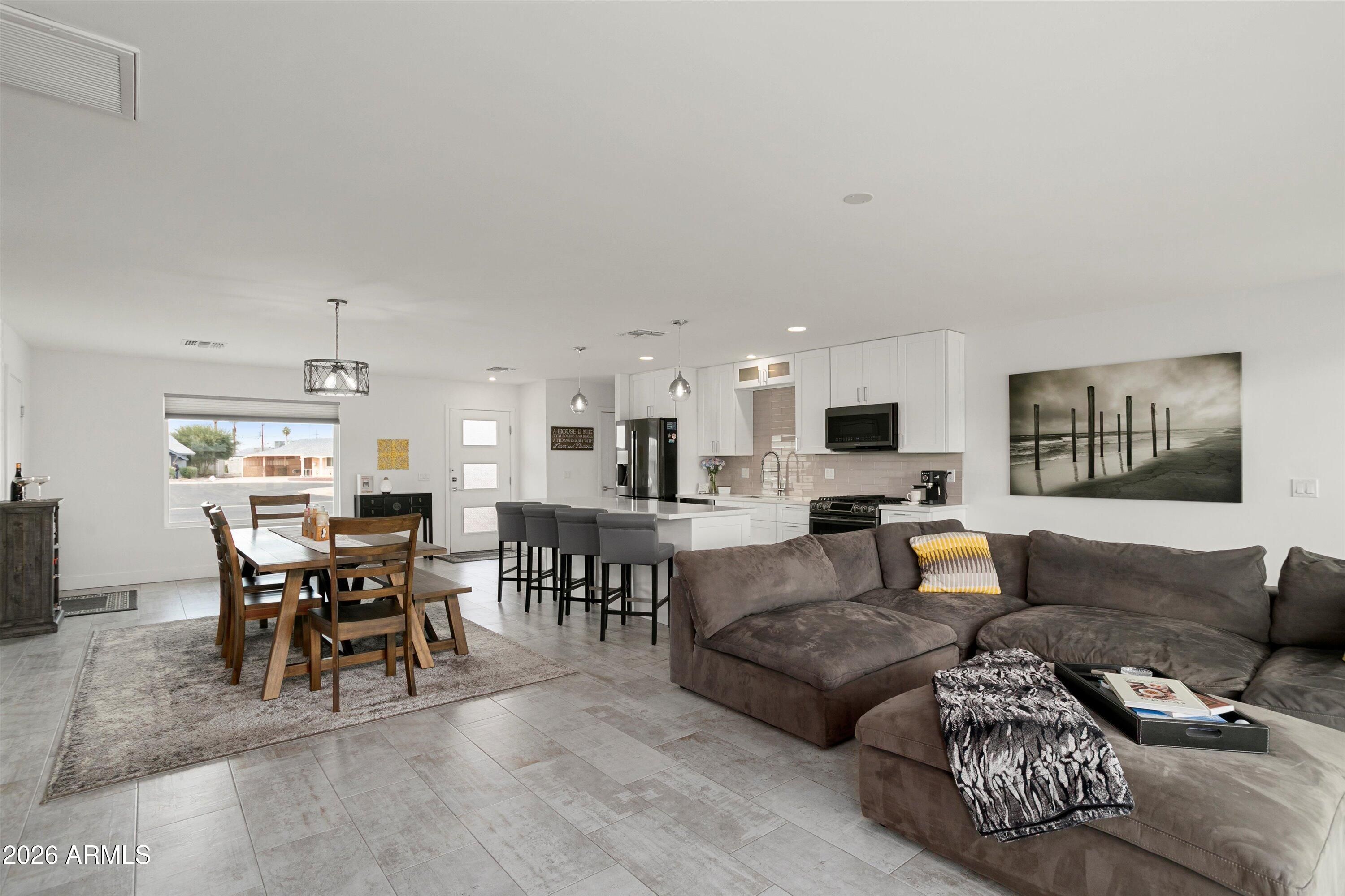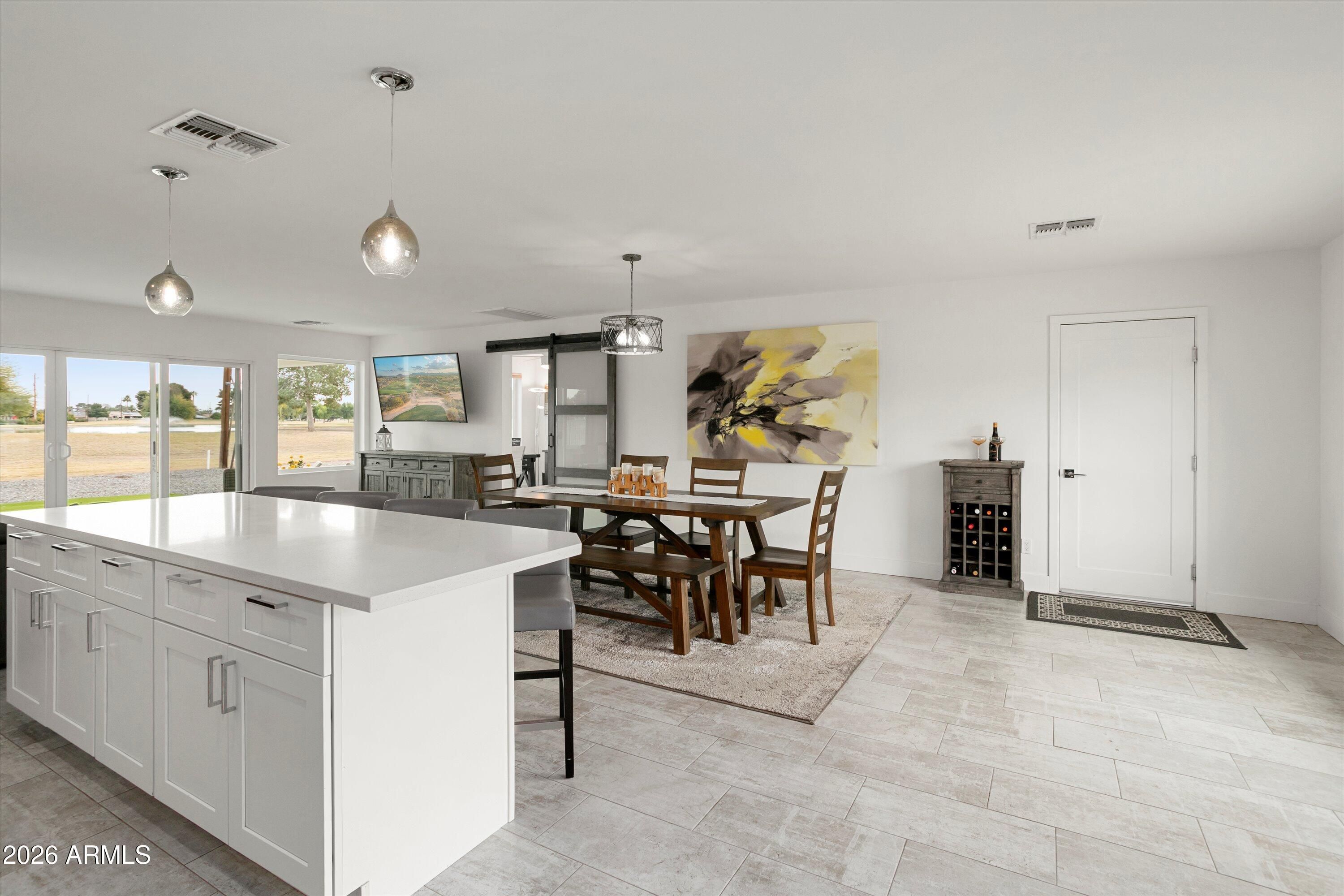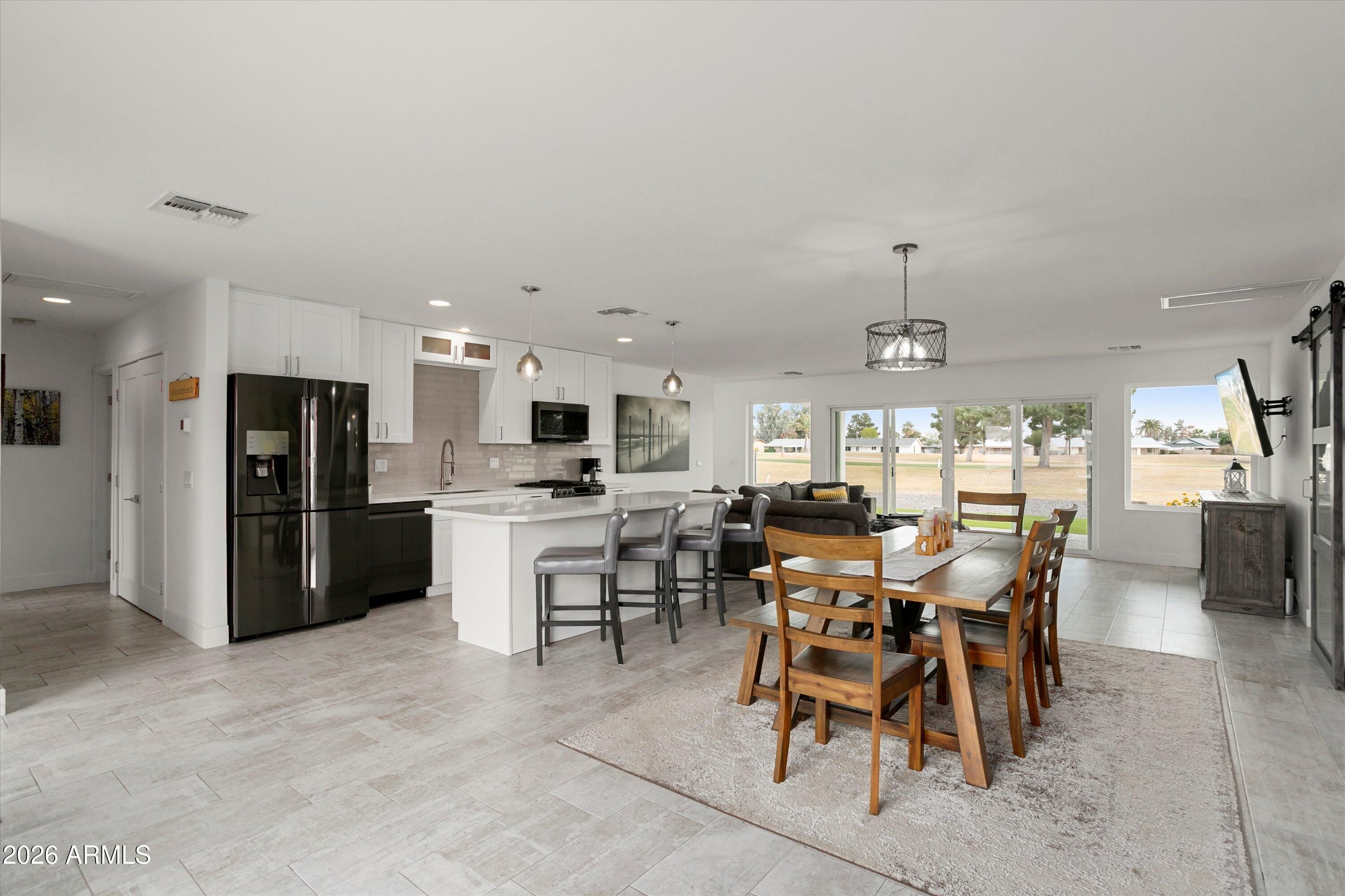 Welcome to your fully remodeled, move-in ready Sun City golf course retreat, perfectly positioned on Hole #6 of the South Course with stunning fairway and lake views. Step inside to an open, light-filled floorplan featuring modern finishes, a show-stopping kitchen with oversized island, and seamless indoor-outdoor living. Enjoy the spacious primary suite and relax on the covered patio overlooking the water feature and fairway. Highlights include owned solar that contributes to electricity costs, a tankless water heater, 220V hot tub-ready outlet, and split bedroom layout. Close to shopping, dining, healthcare, and Sun City amenities.