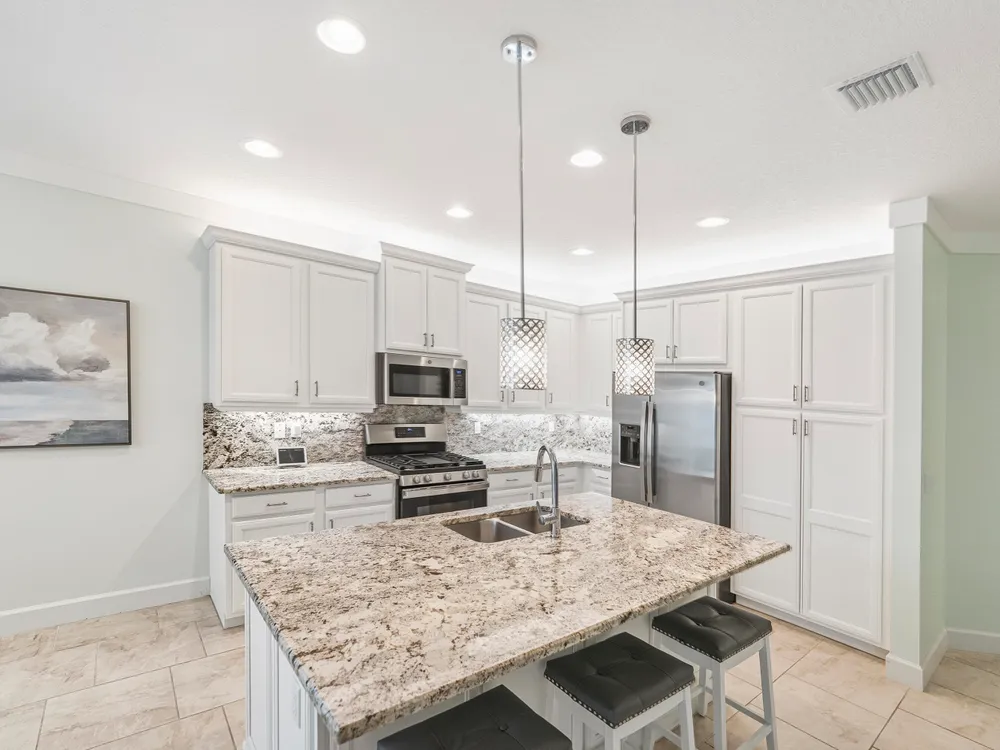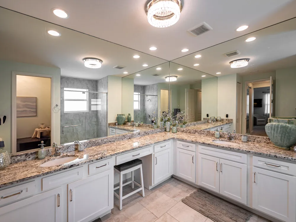 - Closet Cabinetry, Entrance Foyer, Kitchen Island, Pantry, Split Bedrooms, Walk-In Closet(s), Home Office, Family Room, Breakfast Area, Florida/Dining Room, Snack Bar, Impact Glass, Dual Sinks