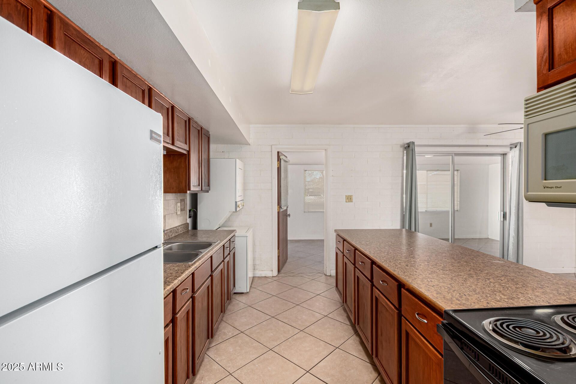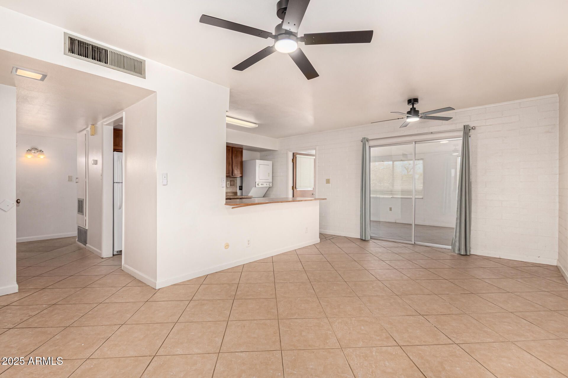 Charming one-level home move-in ready and thoughtfully designed! Enjoy comfort and convenience with a carport space, extended driveway, and welcoming front porch. Discover open common areas with neutral paint, tile flooring, and plenty of natural light. The galley kitchen features wood cabinetry, a stylish tile backsplash, built-in appliances, ample counter space, and a breakfast bar, with an adjacent stacked laundry area for added functionality. A bright Arizona room provides extra living space, perfect for relaxing or entertaining! You'll love the two carpeted bedrooms with walk-in closets and a full bathroom with a tub/shower combination. Out back, you'll find an easy-care yard with endless possibilities. All of this in the 55+ Sun City Community! Don't wait!