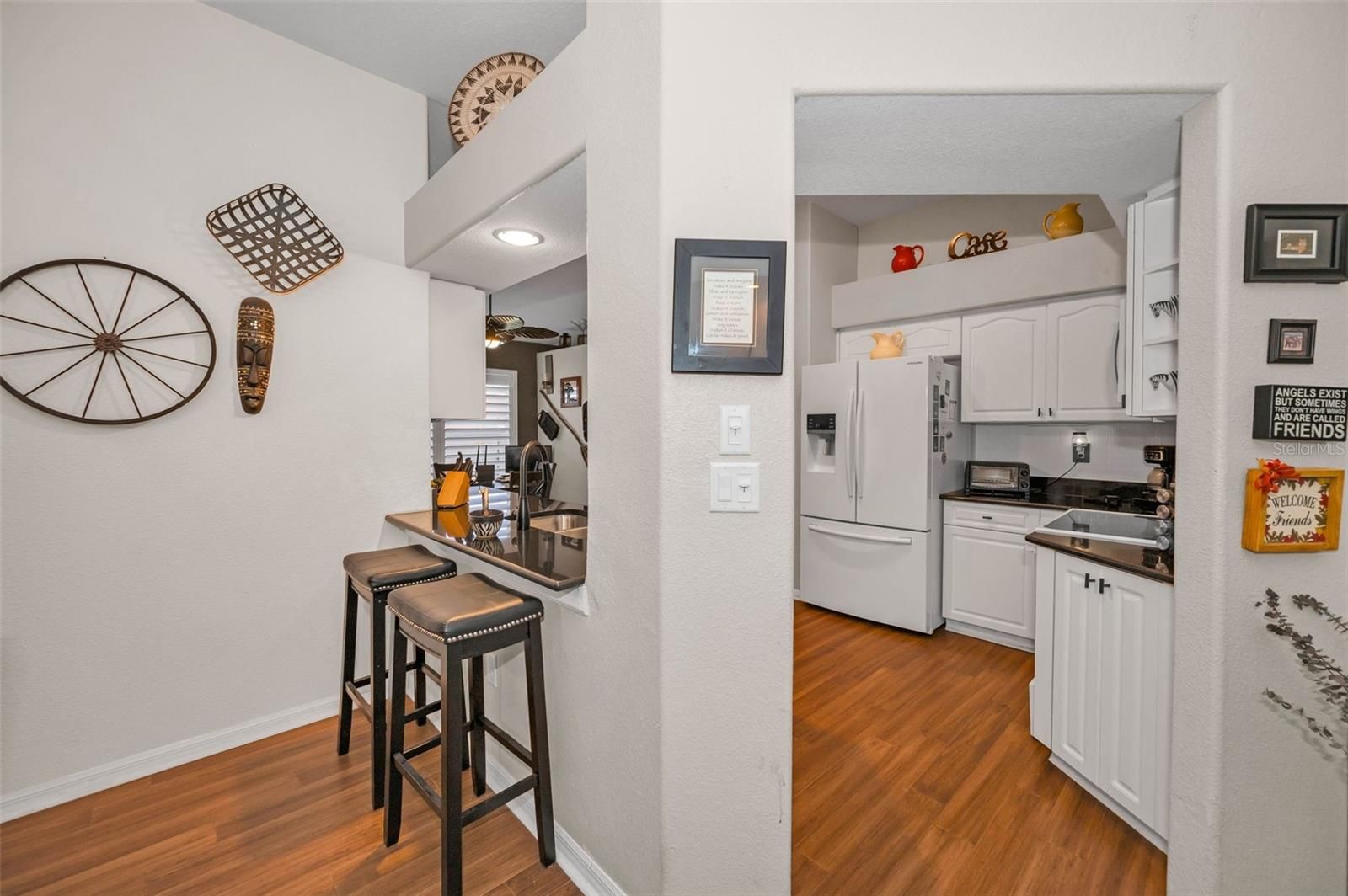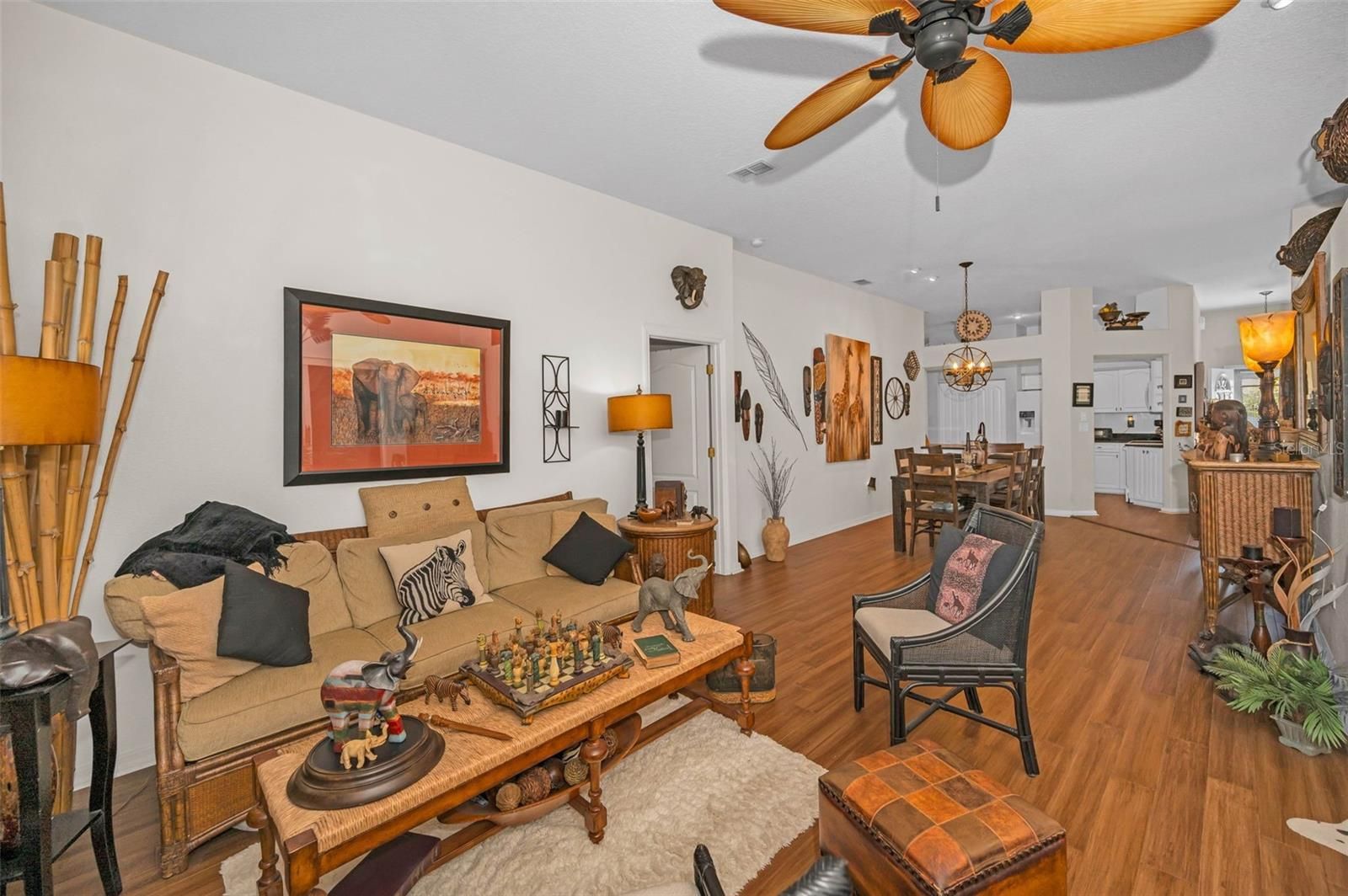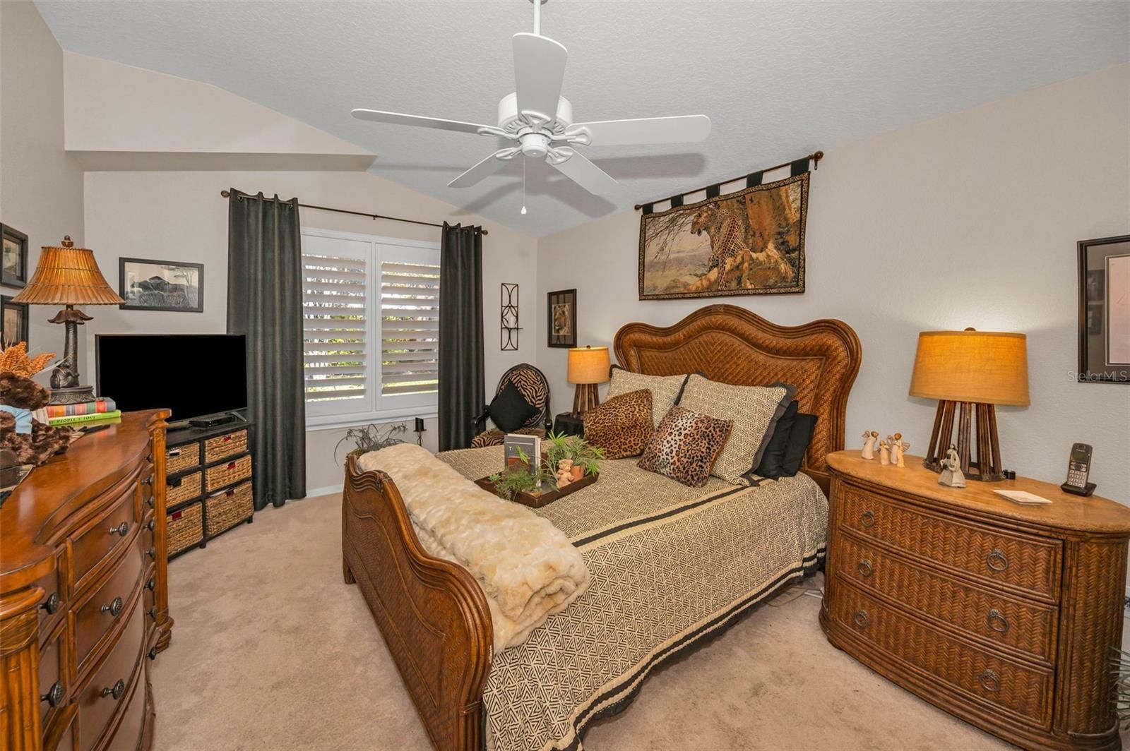 - Cathedral Ceiling(s), Ceiling Fan(s), Eat-in Kitchen, Living/Dining Room, Open Floorplan, Main Level Primary, Solid Surface Counters, Window Treatments