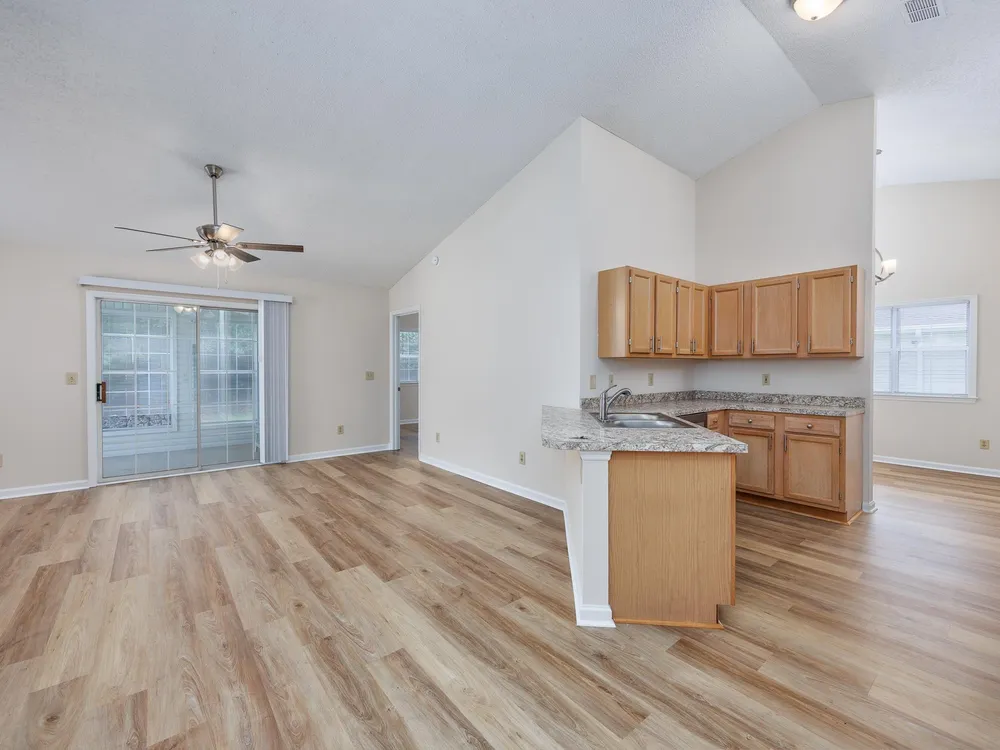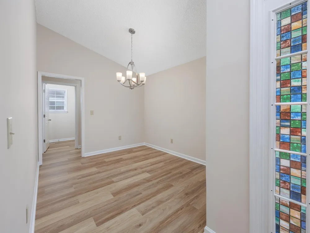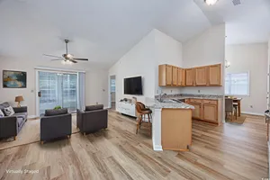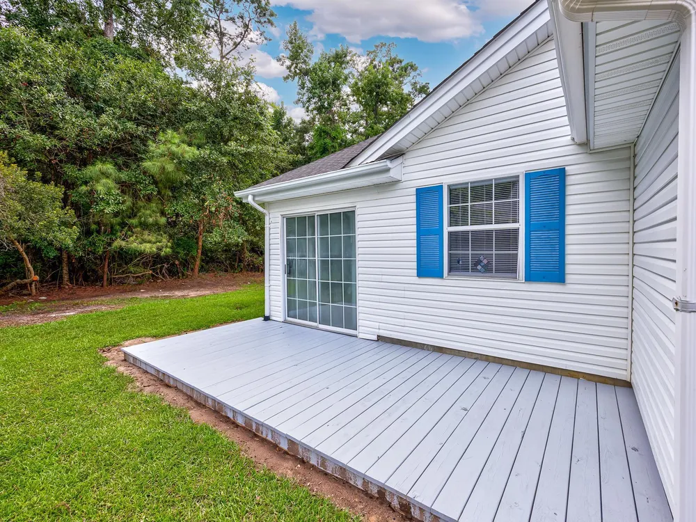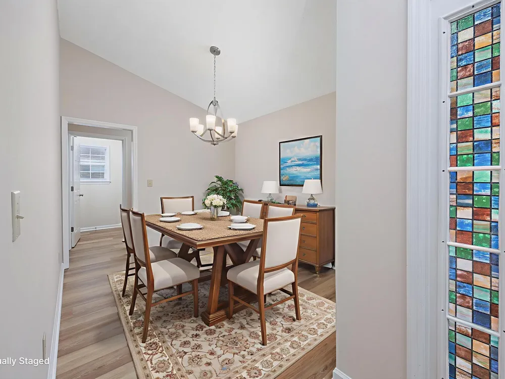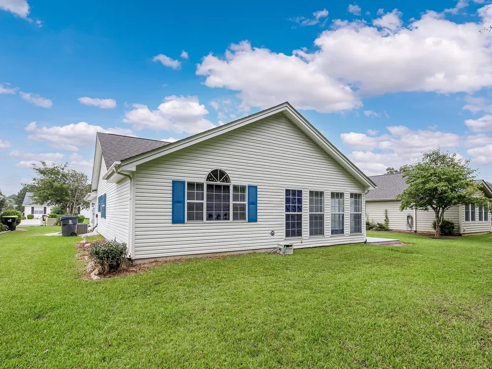 Welcome home to this charming single-level, two-bedroom, two-bath home offers both comfort and style in the desirable Island Green community of Myrtle Beach. Featuring luxury vinyl plank flooring & fresh paint throughout, the home boasts a spacious, open-concept design. The large family room is highlighted by vaulted ceilings and a ceiling fan, seamlessly flowing into the modern kitchen with new countertops and stainless steel appliances. The home includes a formal dining room as well as a versatile breakfast nook, perfect for casual dining, a home office, or a cozy den. The expansive owner's suite also features vaulted ceilings, a ceiling fan, a generous walk-in closet, and a luxurious en suite bathroom complete with a large soaking tub, walk-in shower, and double sinks. At the rear of the home, a bright Carolina room opens onto a sizable patio, ideal for outdoor entertaining. The property backs up to a wooded area, offering privacy and a serene backdrop. Conveniently located just a short drive from Myrtle Beach attractions, shopping, dining, and beaches, this home perfectly combines peaceful living with easy access to coastal amenities. *Owner is a licensed SC realtor. *Some photos have been virtually staged.