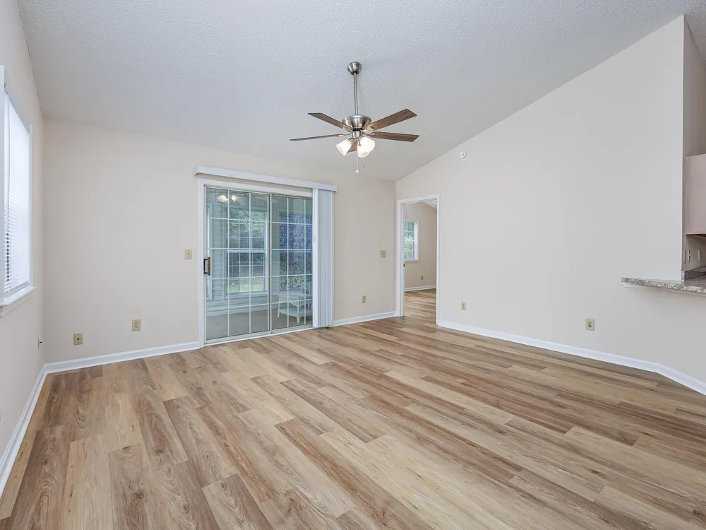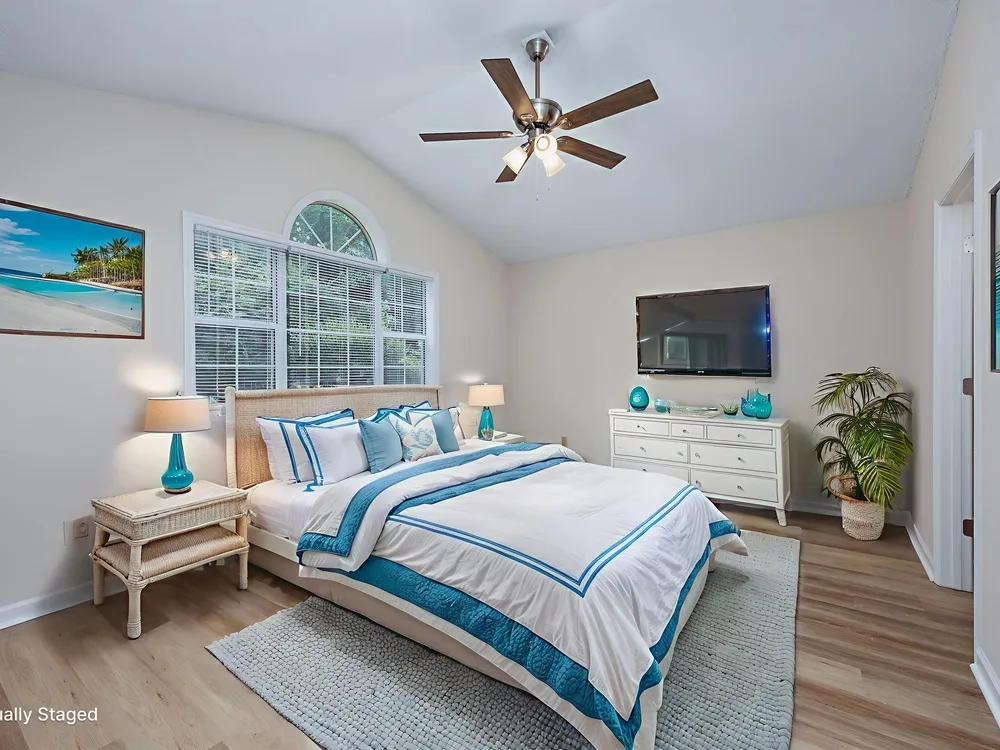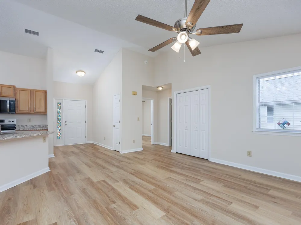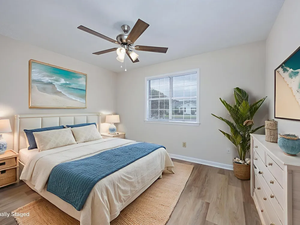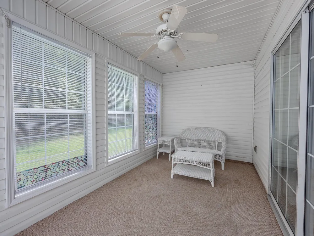 Welcome home to this charming single-level, two-bedroom, two-bath home offers both comfort and style in the desirable Island Green community of Myrtle Beach. Featuring luxury vinyl plank flooring & fresh paint throughout, the home boasts a spacious, open-concept design. The large family room is highlighted by vaulted ceilings and a ceiling fan, seamlessly flowing into the modern kitchen with new countertops and stainless steel appliances. The home includes a formal dining room as well as a versatile breakfast nook, perfect for casual dining, a home office, or a cozy den. The expansive owner's suite also features vaulted ceilings, a ceiling fan, a generous walk-in closet, and a luxurious en suite bathroom complete with a large soaking tub, walk-in shower, and double sinks. At the rear of the home, a bright Carolina room opens onto a sizable patio, ideal for outdoor entertaining. The property backs up to a wooded area, offering privacy and a serene backdrop. Conveniently located just a short drive from Myrtle Beach attractions, shopping, dining, and beaches, this home perfectly combines peaceful living with easy access to coastal amenities. *Owner is a licensed SC realtor. *Some photos have been virtually staged.