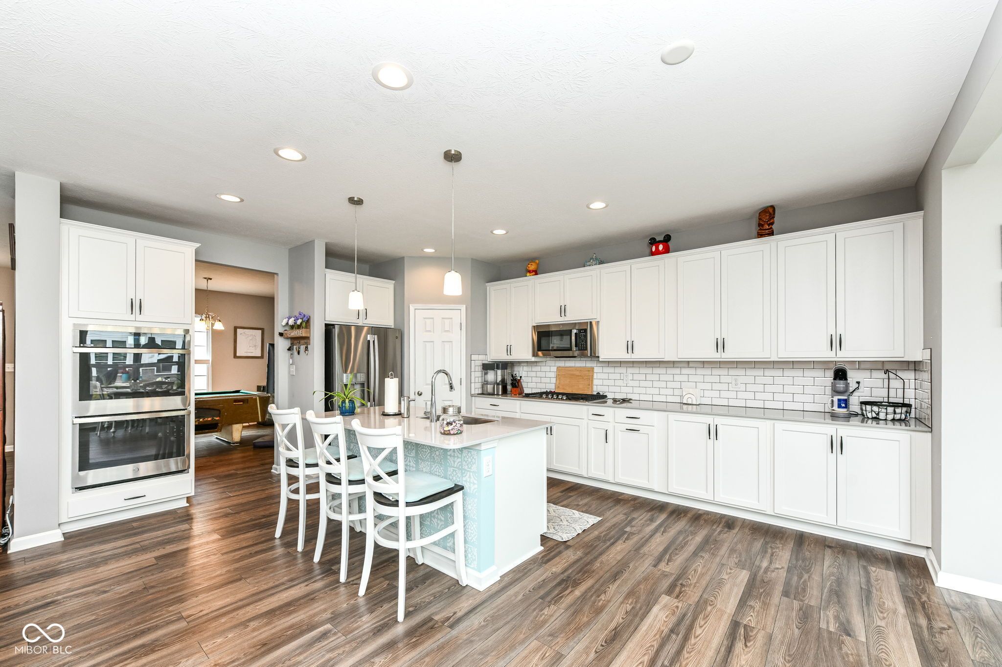Charming 3BR/2BA Home in Merion Subdivision! This beautifully maintained 1.5-story home features stylish LVP flooring throughout the main living areas & spacious, open-concept layout. Gourmet kitchen boasts quartz c-tops, tile backsplash, gas cooktop, double ovens, center island w/ breakfast bar, walk-in pantry, & sunlit breakfast/sun rm. Family rm offers cozy gas-log FP, perfect for relaxing evenings. Main-lvl primary suite includes double vanities, full shower stall, & large WIC. Upstairs, you'll find a versatile bonus room-ideal for an office, playroom, or guest space. Enjoy outdoor living on the extended patio in the private backyard. Additional features include whole-house water filtration system, water softener, Nest thermostat, & Nest doorbell. For an additional monthly fee, HOA offers low-maintenance option for maintaining yard/landscaping. Move-in ready-just unpack and feel at home!