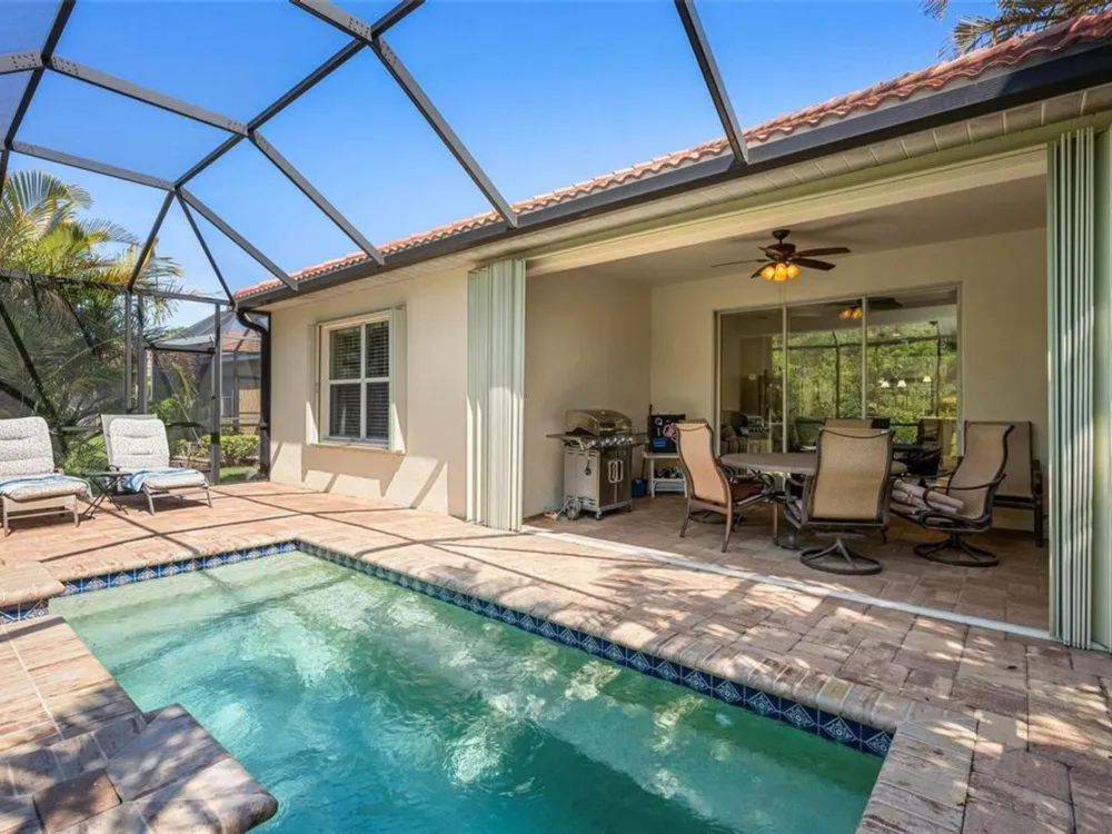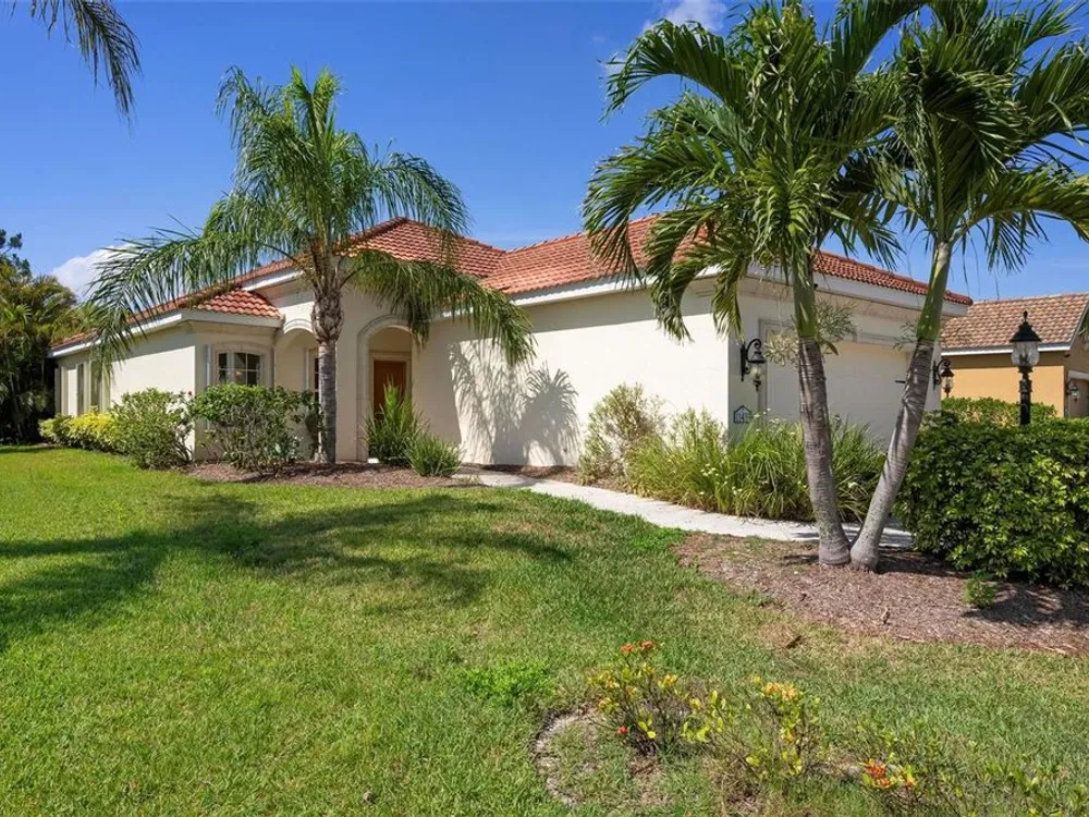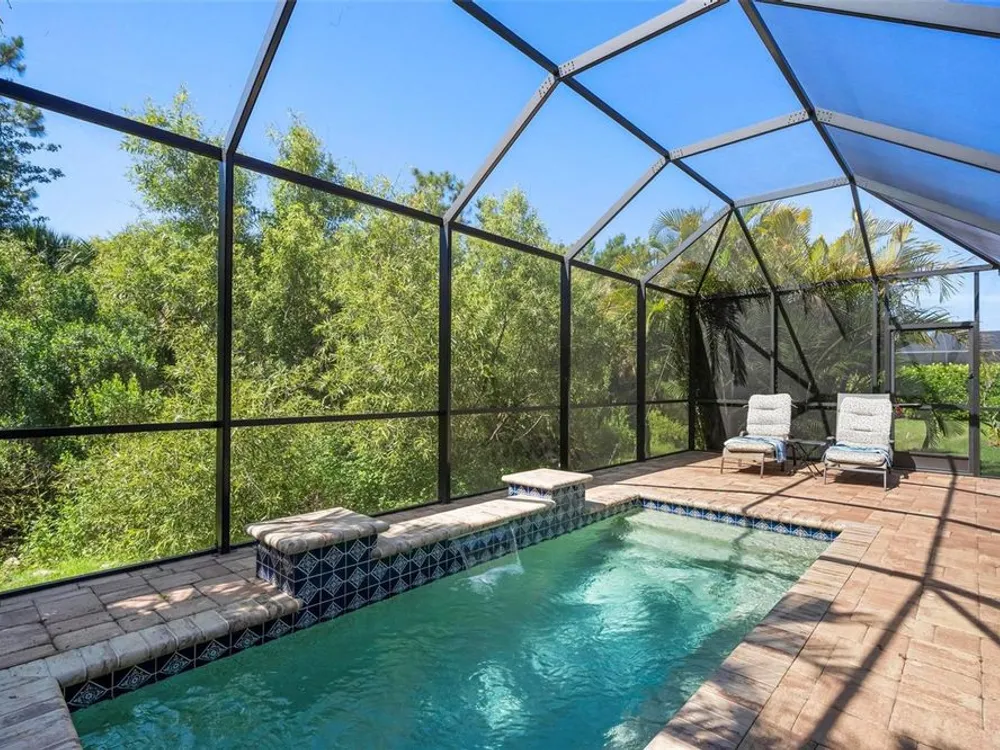 Come and see this delightful home in the vibrant Grand Palm community! This home features a bright, open floor plan with three spacious bedrooms and a versatile den that’s perfect for an office, guest room, or whatever sparks your imagination. It’s packed with upgrades like premium flooring, custom lighting, elegant coffered ceilings, and an irrigation system to keep your yard lush and green. The spa/hot tub offers a perfect blend of style and function, featuring built-in jets and a gentle waterfall which spills into the warm water, enhancing the soothing ambiance. Surrounded by serene preserve views, it creates a secluded retreat and personal oasis. Take leisurely strolls through the gorgeous neighborhood whenever the mood strikes! Step inside, and you’ll be charmed by the breezy Florida vibe. The gourmet kitchen is a chef’s dream, boasting Corian countertops, stainless steel appliances, a large center island, a closet pantry, and the joy of cooking with natural gas for precise, efficient meal prep. The kitchen flows effortlessly into the dinette and Great Room, and when you slide open the doors, you’ll love the seamless indoor/outdoor Florida lifestyle. The coffered ceilings in the kitchen and family room add a touch of sophistication! The primary bedroom is your cozy haven, featuring a generous walk-in closet and a luxurious en-suite with dual sinks and a spacious walk-in shower. Two additional bedrooms, tucked away in their own wing with a full bathroom and extra closet space, are perfect for guests or family. The den, with stylish French doors off the great room, is ideal for working from home or unwinding. This home is loaded with practical perks that add to the WOW factor! Enjoy a newer HVAC, metal hurricane shutters, low-cost flood insurance, and no flooding during major storms for worry-free living. Grand Palm’s resort-style amenities make every day feel like a vacation. Dive into multiple pools (including a fitness pool and waterslide!), have fun at the splash pad, or stay active with tennis, pickleball, bocce, or volleyball. Explore 28 miles of biking and walking trails, visit the two dog parks, or try fishing and kayaking at Adventure Lake’s island. The state-of-the-art fitness center and Social Club, with a full-time lifestyle director, keep the community buzzing with excitement. Plus, you’re just minutes from Venice’s beautiful beaches and charming downtown! This home radiates charm with its lush, meticulously maintained landscaping that welcomes you at every turn. A coastal-inspired design brings a sense of tranquility and relaxed elegance, making every space feel like a serene retreat. Priced to impress, this home is a steal in such a lively, amenity-rich community. Don’t miss out on this coastal gem! Reach out today to schedule a tour and start living the Florida lifestyle you’ve always dreamed of!