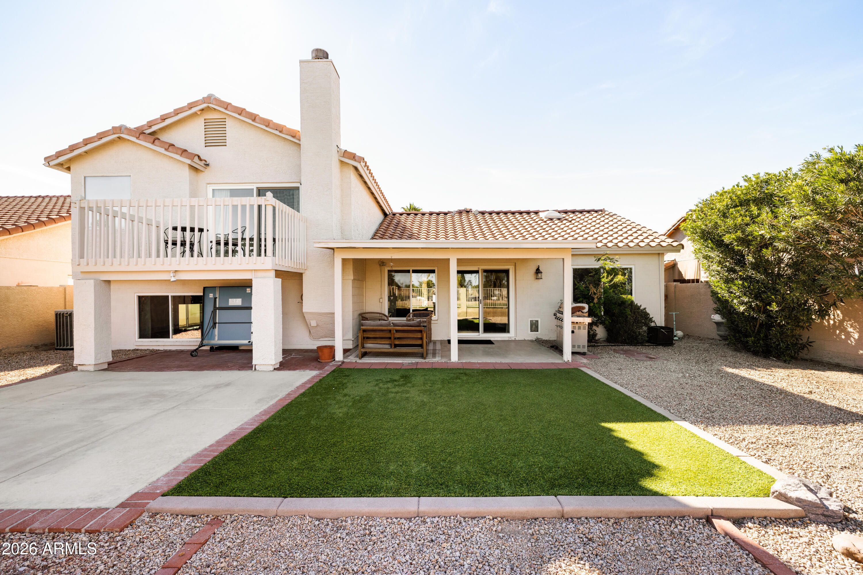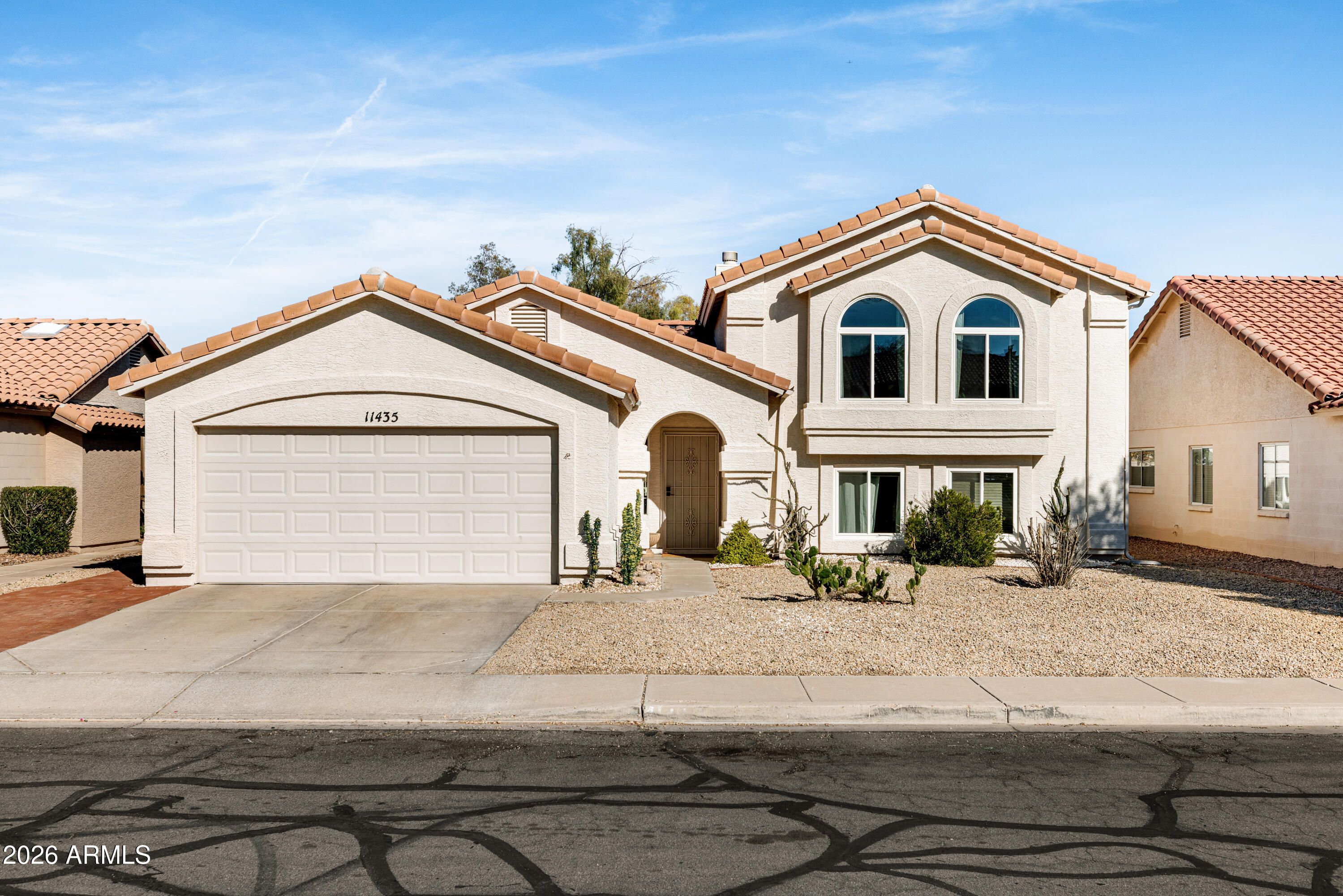 Spacious tri-level in the heart of Ahwatukee with 5 bedrooms, 3 bathrooms, and a 2-car garage across 2,372 sqft. Thoughtfully updated with newer flooring, kitchen, bathrooms, windows, and roof. The bright, open kitchen flows seamlessly into the main living and dining areas. The lower level offers a huge family room, two bedrooms, and a bath--ideal for guests or flexible living. Upstairs features the primary suite with a walkout balcony, plus two additional bedrooms and a bath. Enjoy golf course views, two covered patios, and low-maintenance turf in the backyard.