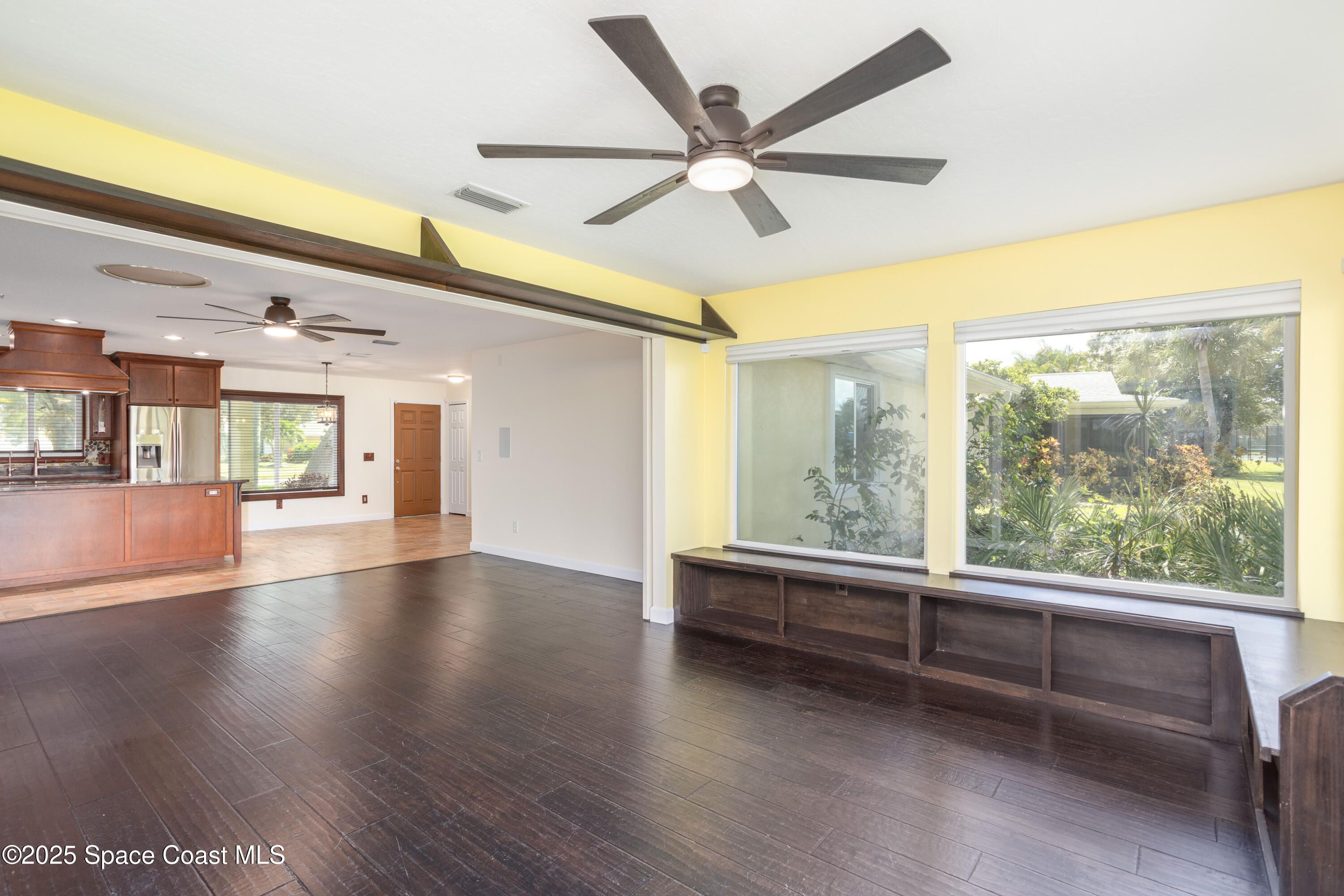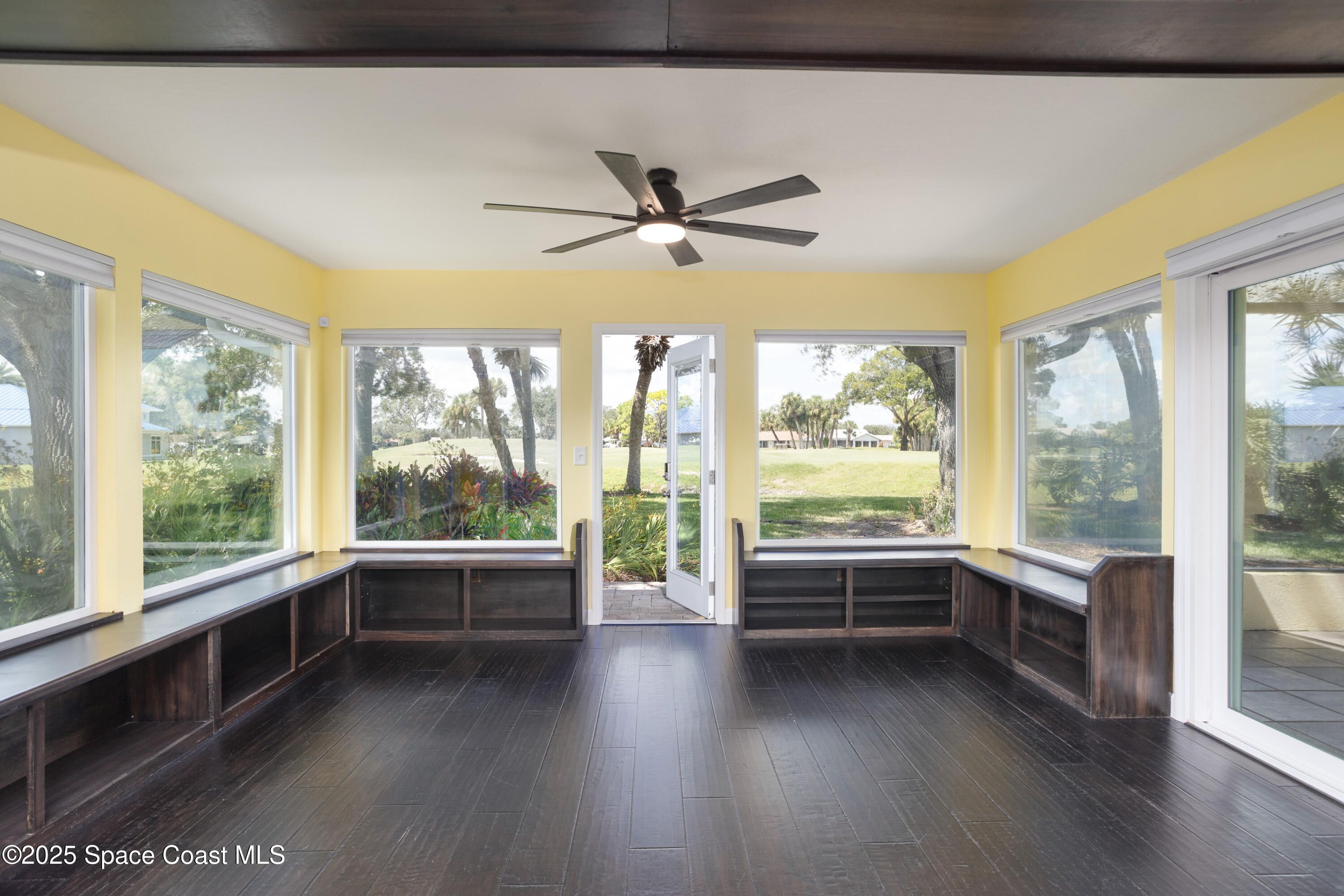 Nestled in a resort-style country club community, this one-of-a-kind remodeled Annapolis model is a golfer's dream. With panoramic views of the Gordon Lewis-designed golf course and a prime location close to the clubhouse, this home captures the very best of Florida living. Inside, the open layout showcases a beautifully updated kitchen with Quartzite countertops, renovated bathrooms, and impact windows for peace of mind. Wide-plank solid walnut wood flooring and elegant tile run throughout, complementing the spacious Florida room and screened lanai where you can relax and take in the views. Thoughtful upgrades continue with epoxy flooring in the garage, newer cordless blinds, stylish light fixtures, and countless modern details. Completely move-in ready, this exceptional home blends comfort, style, and lifestyle in a community offering top-notch amenities designed to be enjoyed every day. Home to over 600 Military Veterans, Indian River Colony Club is a Private 55+ Country Club community with an extensive maintenance program for each home. It includes an18-hole golf course, fine dining restaurant with an executive chef & the 19th Hole restaurant and bar, fitness center, heated swimming pool, tennis courts, croquet, bocce ball, shuffleboard, and more. Pet-friendly, gated community with over 60 activities groups that have you feeling like you are on vacation.
