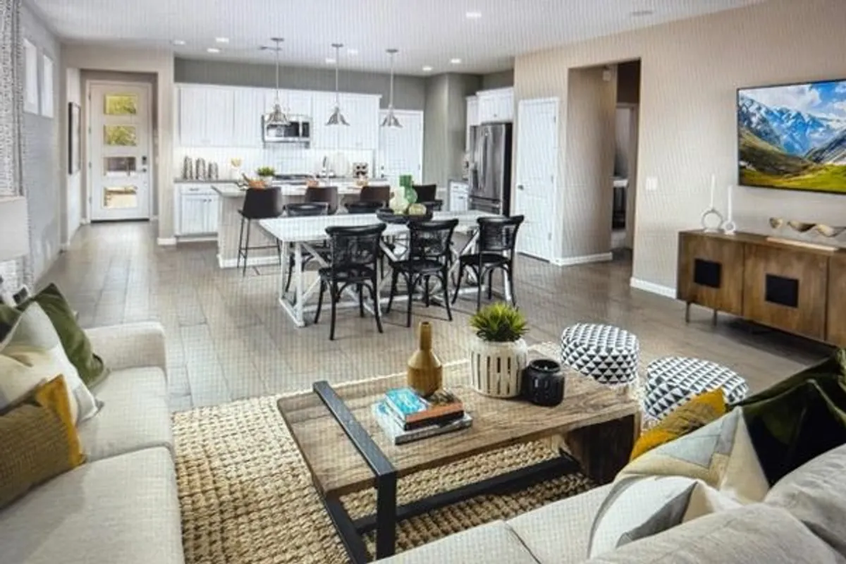Welcome to a beautifully designed single-story home created for comfort, connection, and ease of living in a vibrant 55+ community. Thoughtfully laid out, this 1,507 sq. ft. residence blends open-concept living with private retreats, all under soaring 9’ ceilings that enhance the sense of space and light. At the heart of the home, the spacious great room invites gathering and relaxation, flowing seamlessly into a large kitchen featuring built-in appliances and generous workspace—ideal for everyday living or entertaining guests. An optional fireplace adds warmth and ambiance, while the optional 15’ multi-slide door opens the great room to the outdoors, creating an effortless indoor-outdoor lifestyle. The large primary bedroom offers a peaceful escape with a walk-in closet and private bath, while a secondary bedroom and full bath provide comfort for guests or hobbies. A pocket office adds flexible space for work, reading, or creative pursuits. Step outside to a covered patio perfect for morning coffee or evening sunsets, with an optional extended covered patio for even more outdoor enjoyment. Complete with a two-car garage and single-level convenience, this home—modeled at San Juan Oaks—offers refined, low-maintenance living designed to enjoy every moment.