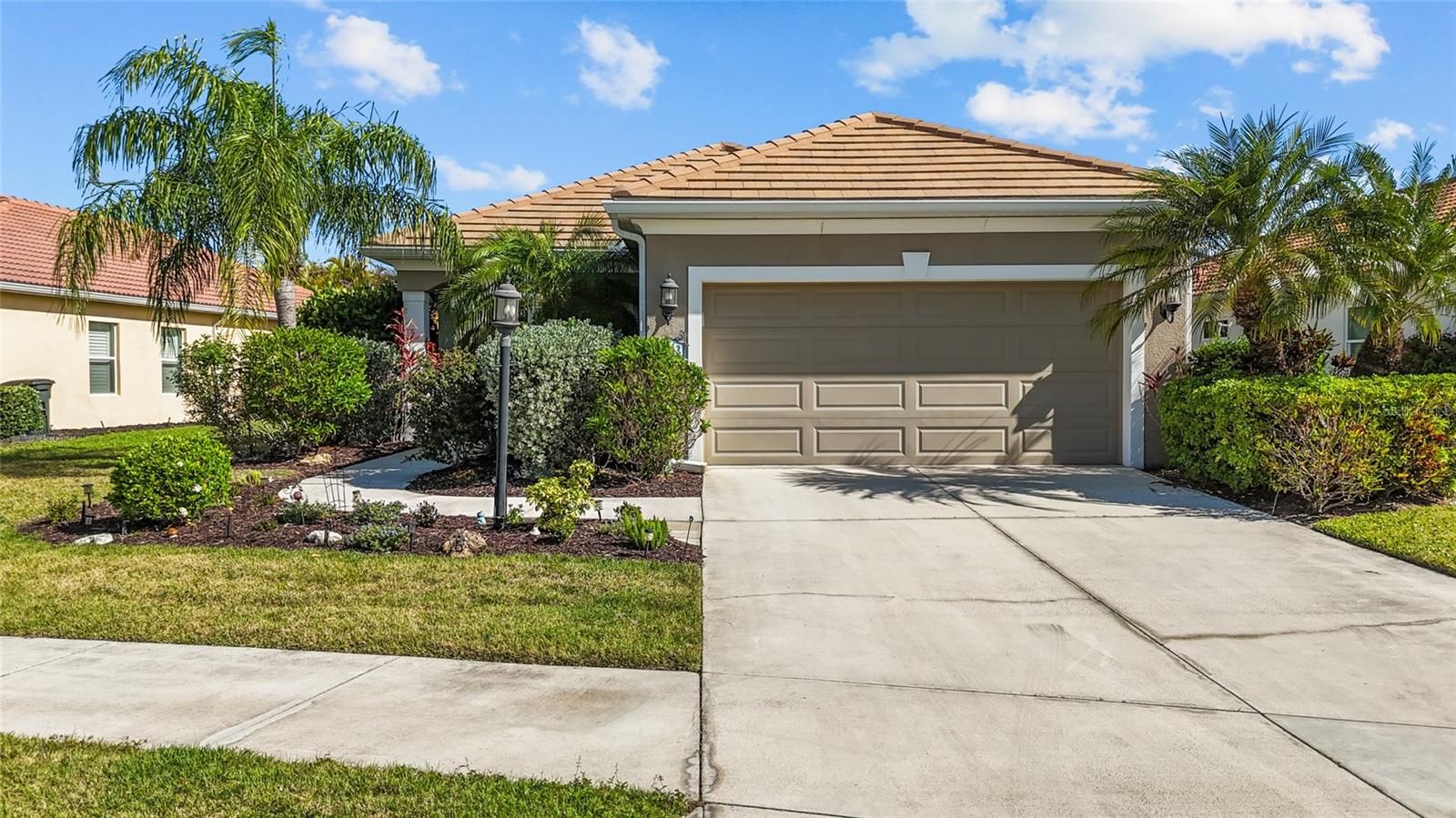 A lakefront pool home that delivers the Florida lifestyle—private, scenic, and built for effortless indoor-outdoor living. This three-bedroom home features a heated saltwater pool with spa and an open floor plan enhanced by crown molding, plantation shutters, and tray ceilings. The great room flows seamlessly into the kitchen and out to the lanai, where you can dine or unwind while overlooking the water and surrounding nature. The kitchen is both stylish and functional with custom wood cabinetry, granite countertops, a natural gas range, and a spacious pantry. A split-bedroom layout provides privacy, while the primary suite enjoys pool views, two walk-in closets, dual sinks, and a walk-in shower. The outdoor space is designed for entertaining with an open pool deck and natural gas connection for a grill, making it easy to enjoy gatherings year-round. Storm-ready features include hurricane shutters for the windows, roll-down shutters for the lanai, and a whole-house generator for added peace of mind. A two-car garage completes the home. Located in Grand Palm, this amenity-rich, nature-focused community offers resort-style pools, fitness facilities, pickleball and tennis courts, dog parks, and miles of walking and biking trails, all just a short drive to downtown Venice and the Gulf beaches.