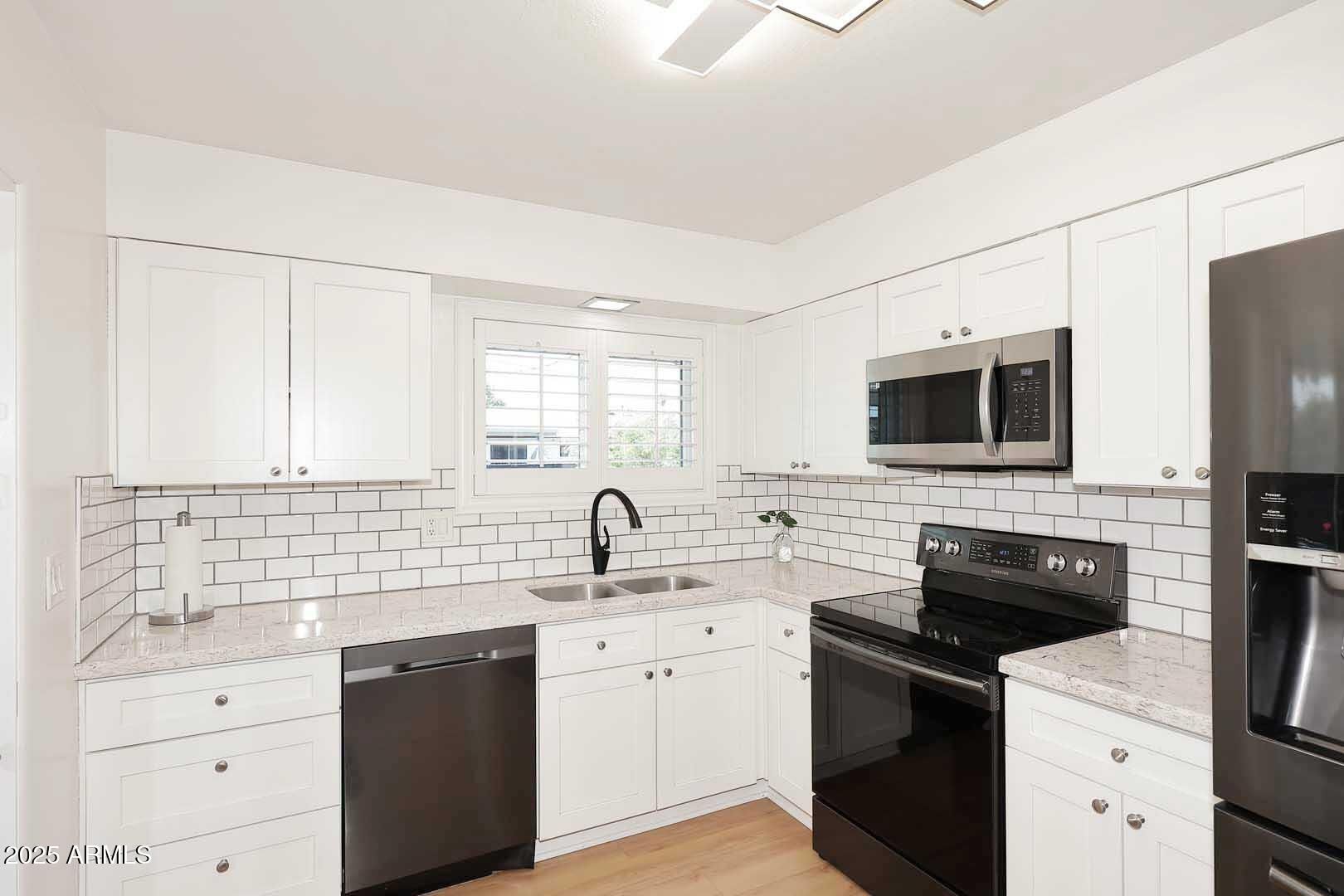 Beautifully remodeled in Sun City south! This charming & well-maintained single-family home features stylish flooring, a modern kitchen w/ newer appliances, plantation shutters, and an open layout perfect for easy living. An enclosed and finished 14' x 8' Arizona room w/ included A/C unit is perfect for a studio, office or more if you need extra space. 1-Car garage and separate laundry room with W/D included. Enjoy year-round comfort w/ owned solar that cranks out the power—say goodbye to high electric bills forever! Located in a quiet, no-HOA neighborhood of larger lots, you'll love the low-maintenance lifestyle and all the incredible Sun City amenities: golf, pools, fitness centers, clubs, and more. Perfect for full-time or seasonal living—don't miss this move-in ready gem!